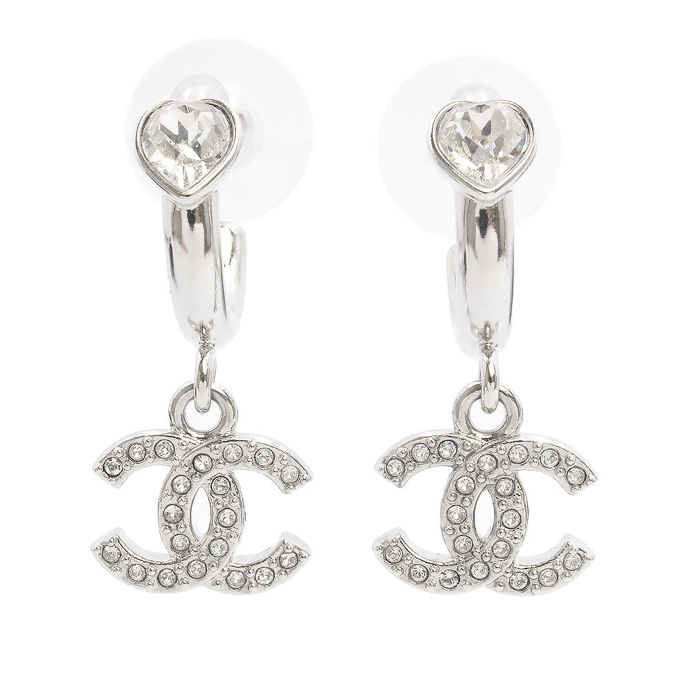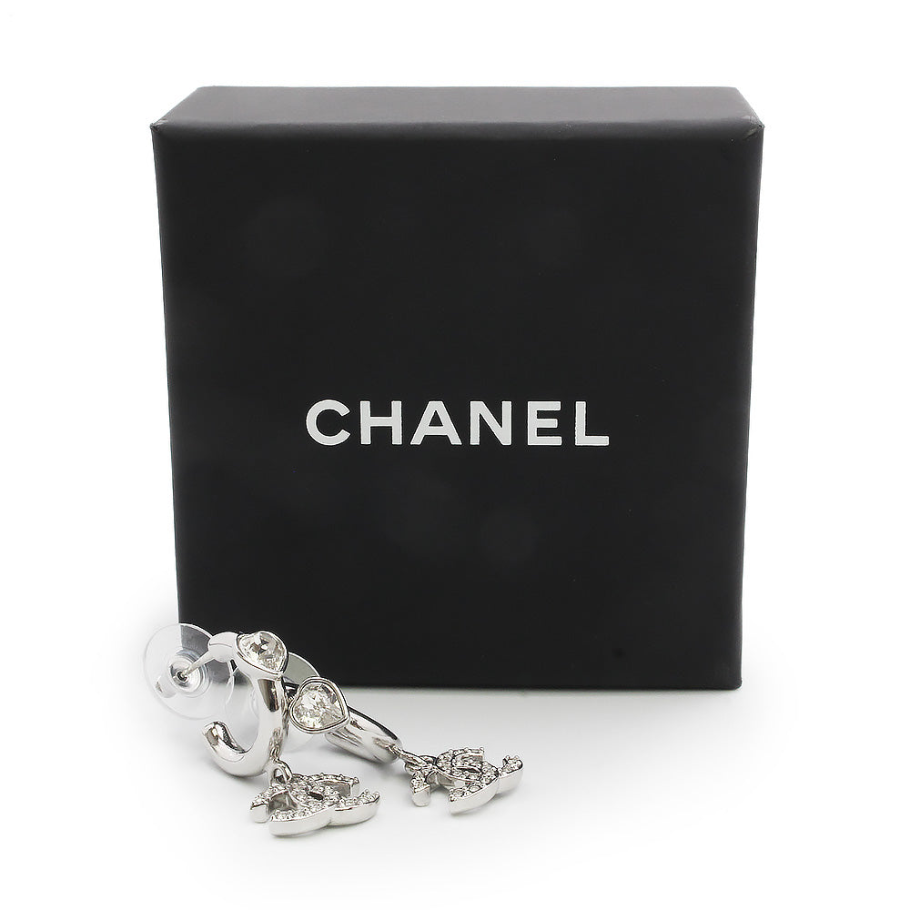 [New and unused] CHANEL ABF778 Rhinestone Heart Coco Mark Hoop Swing Silver Earrings