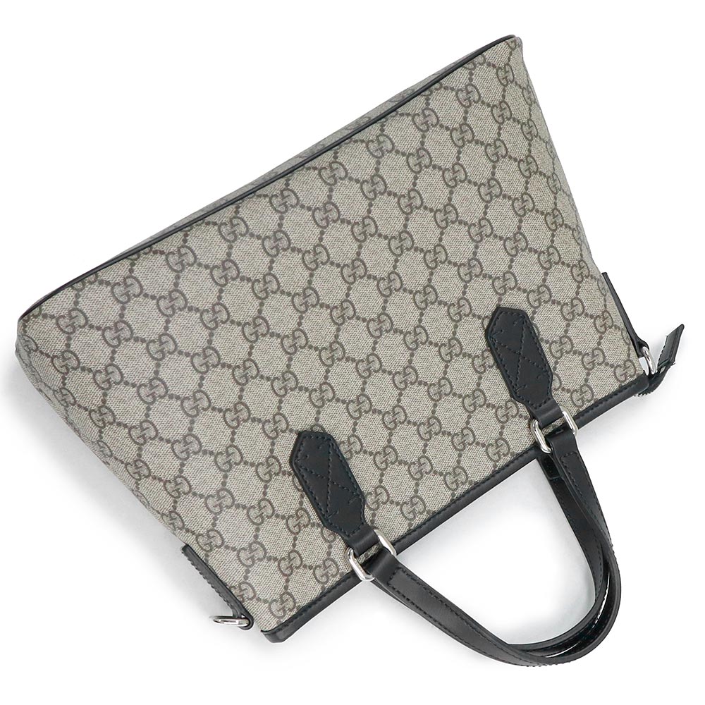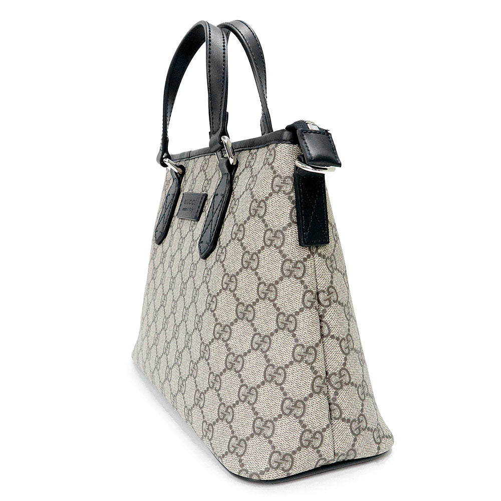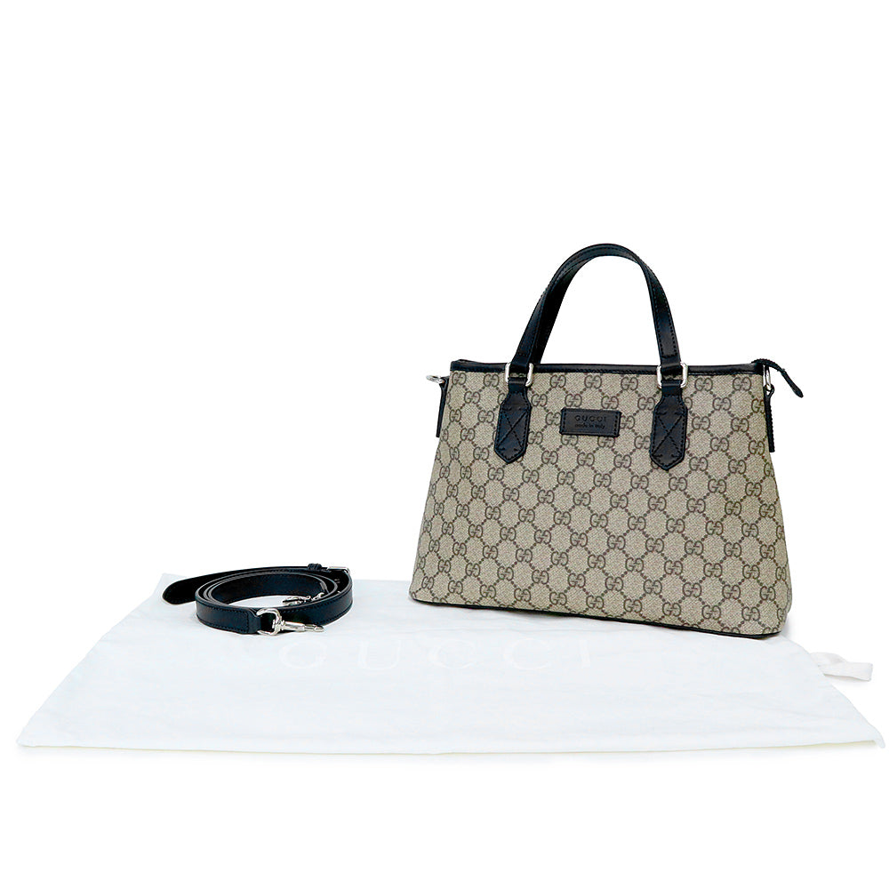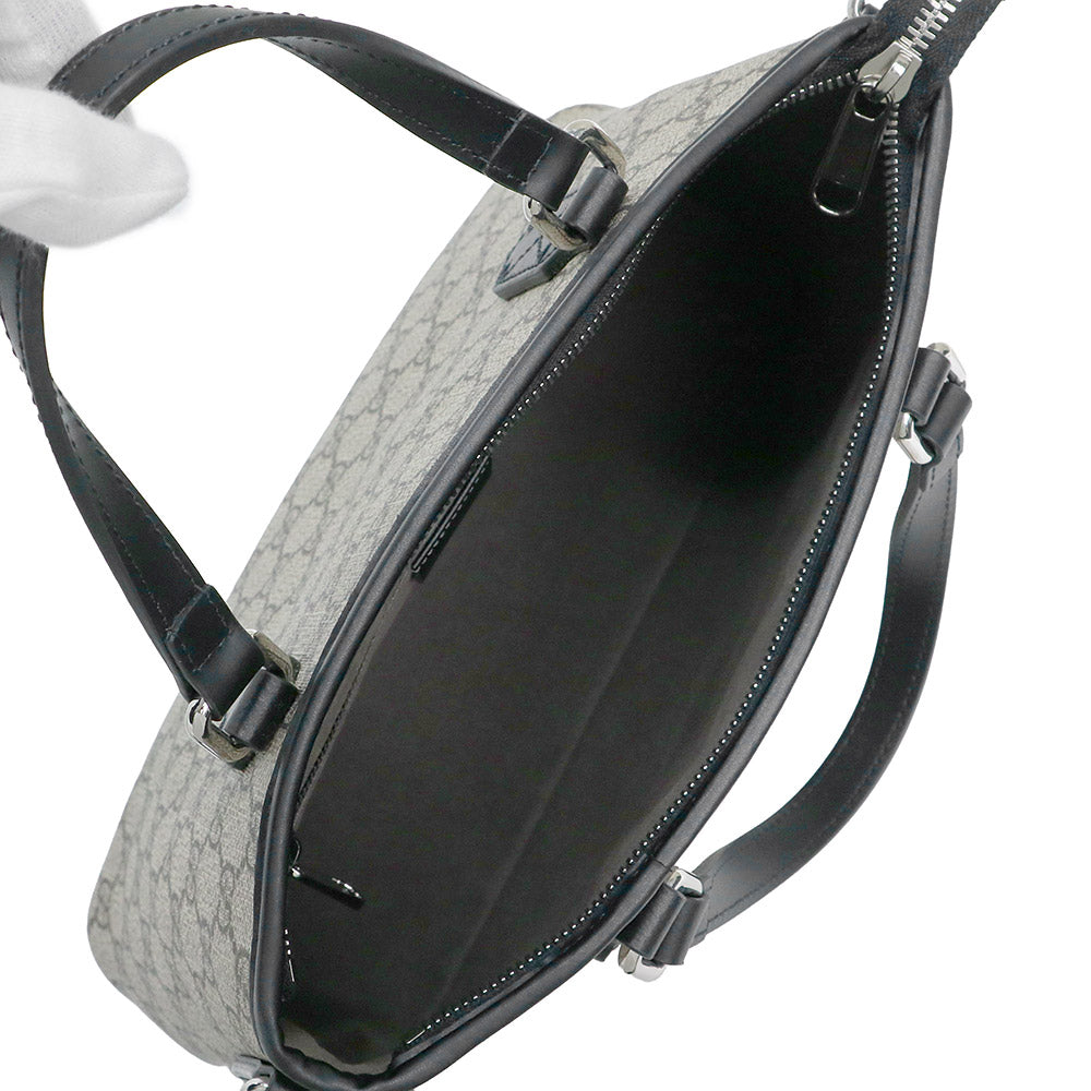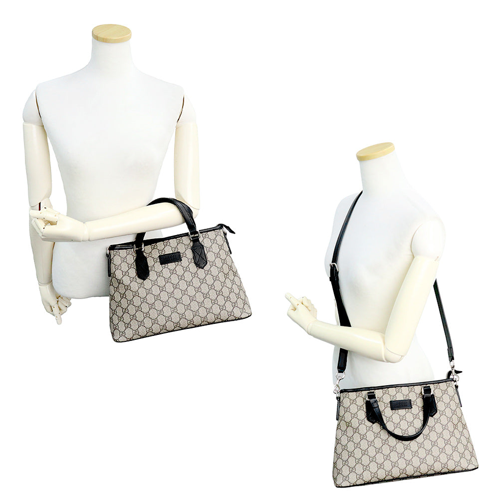 [Unused Display Item] Gucci 2-Way Shoulder Handbag in GG Supreme Canvas and Leather, Black and Beige with Silver Hardware, 779867