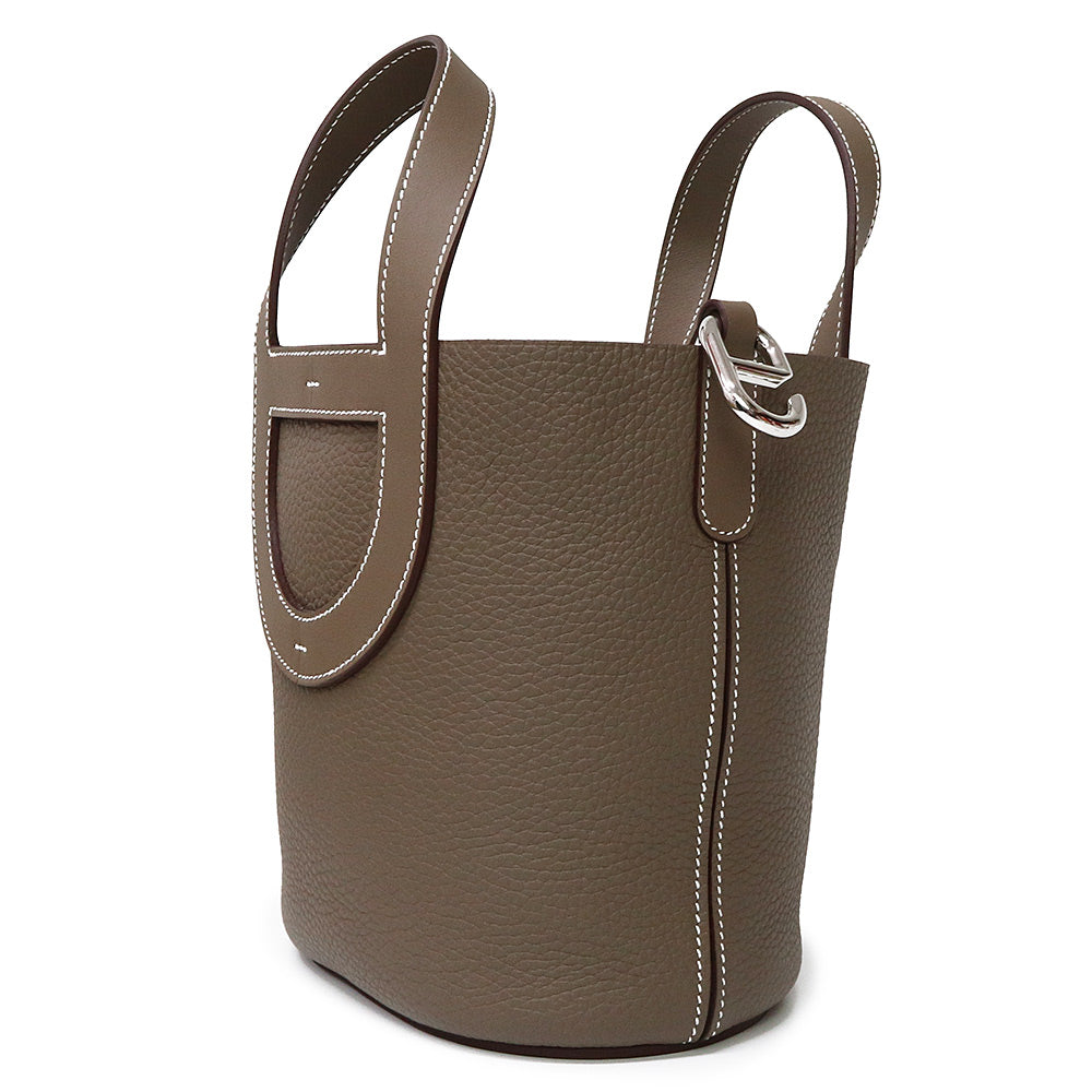 [Brand New, Unused] Hermès In the Loop 18 Handbag in Taurillon Clemence Leather, Swift Leather, Etoupe, Greige, Silver Hardware, Double Stamp, Box Included