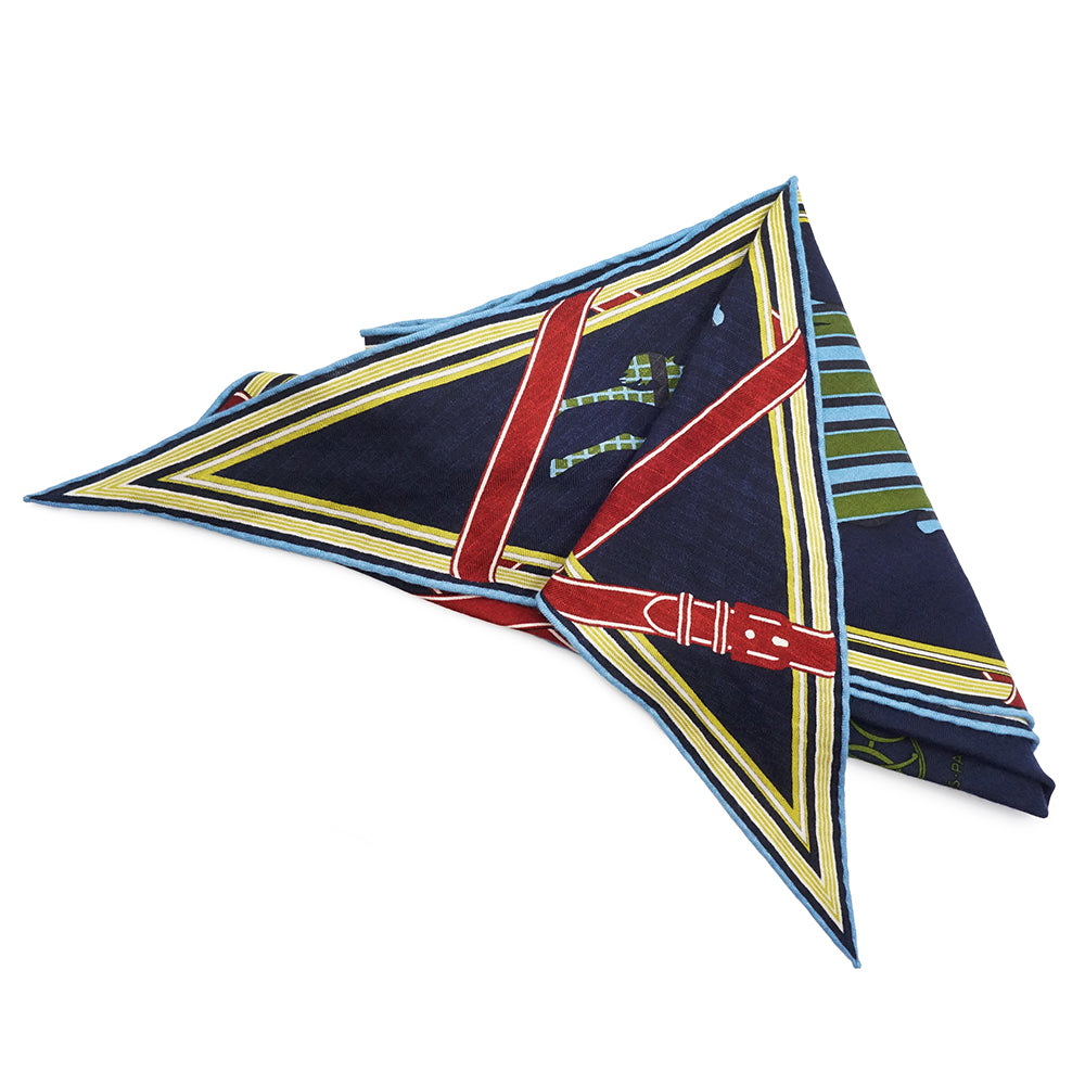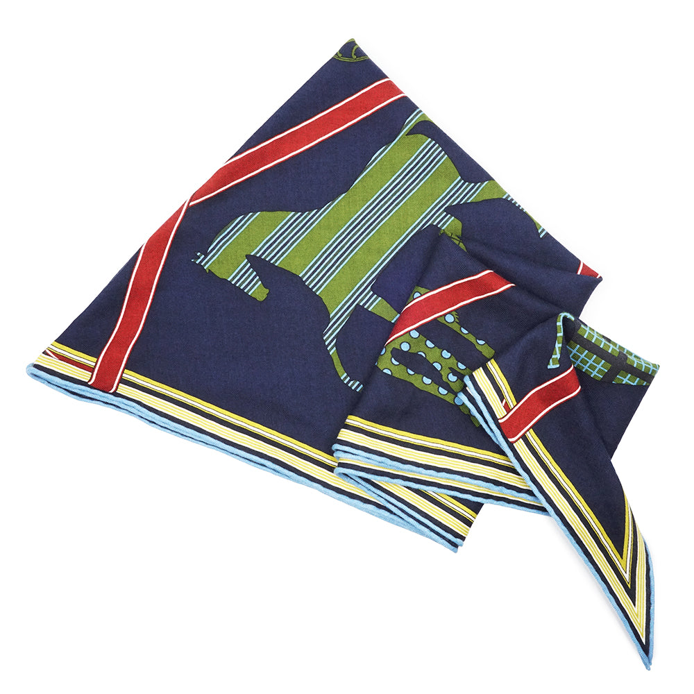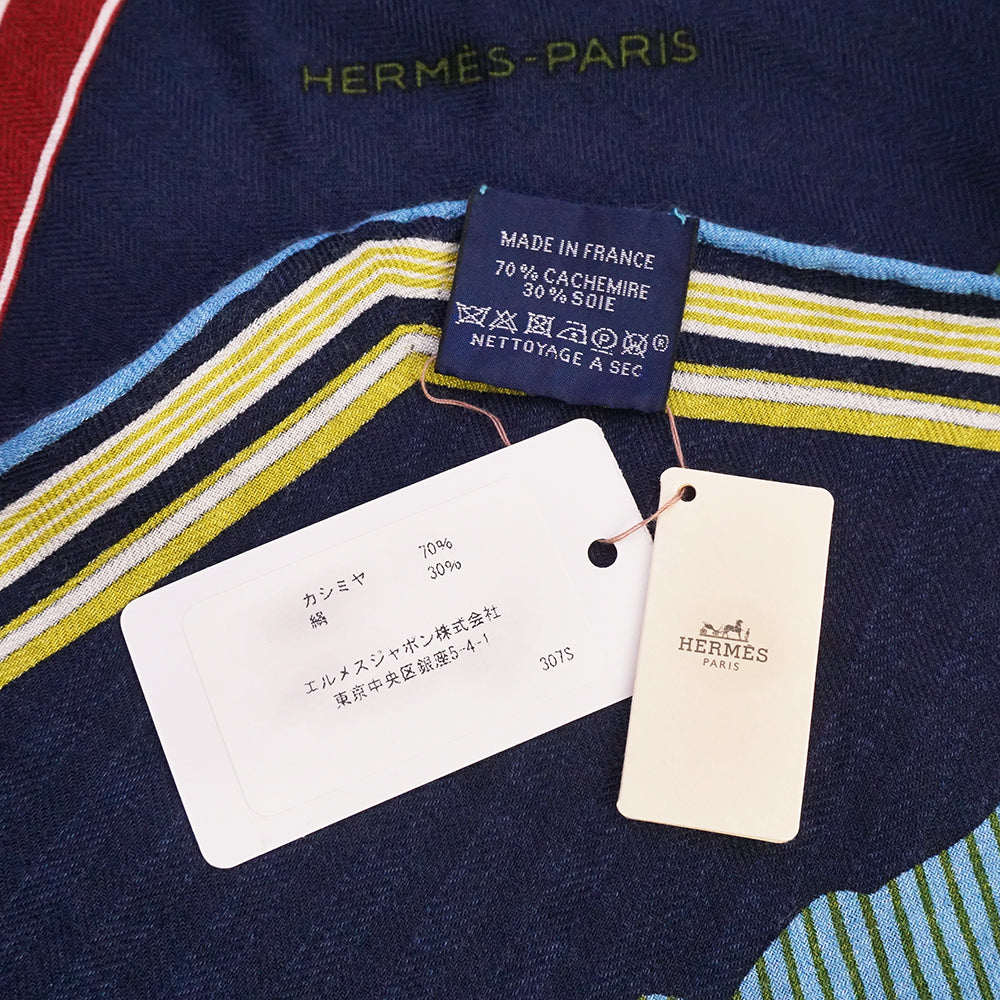 【新品・未使用品】エルメス HERMES ロザンジュ GM クラン エケストル CLAN EQUESTRE ひし形 ストール スカーフ カシミヤ70% シルク30% ネイビー 箱付