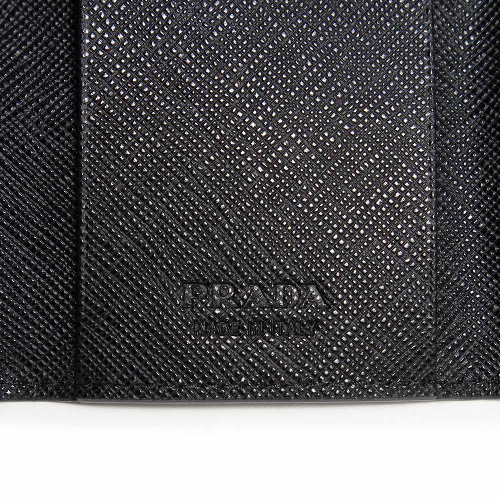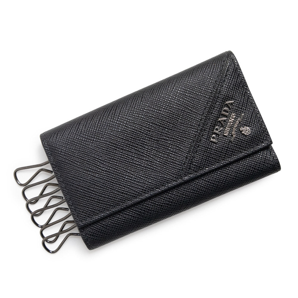 [Unused Display Item] PRADA 2PG222 SAFFIANO METAL Calf Leather Black 6-Ring Key Case with Gunmetal Hardware and Box