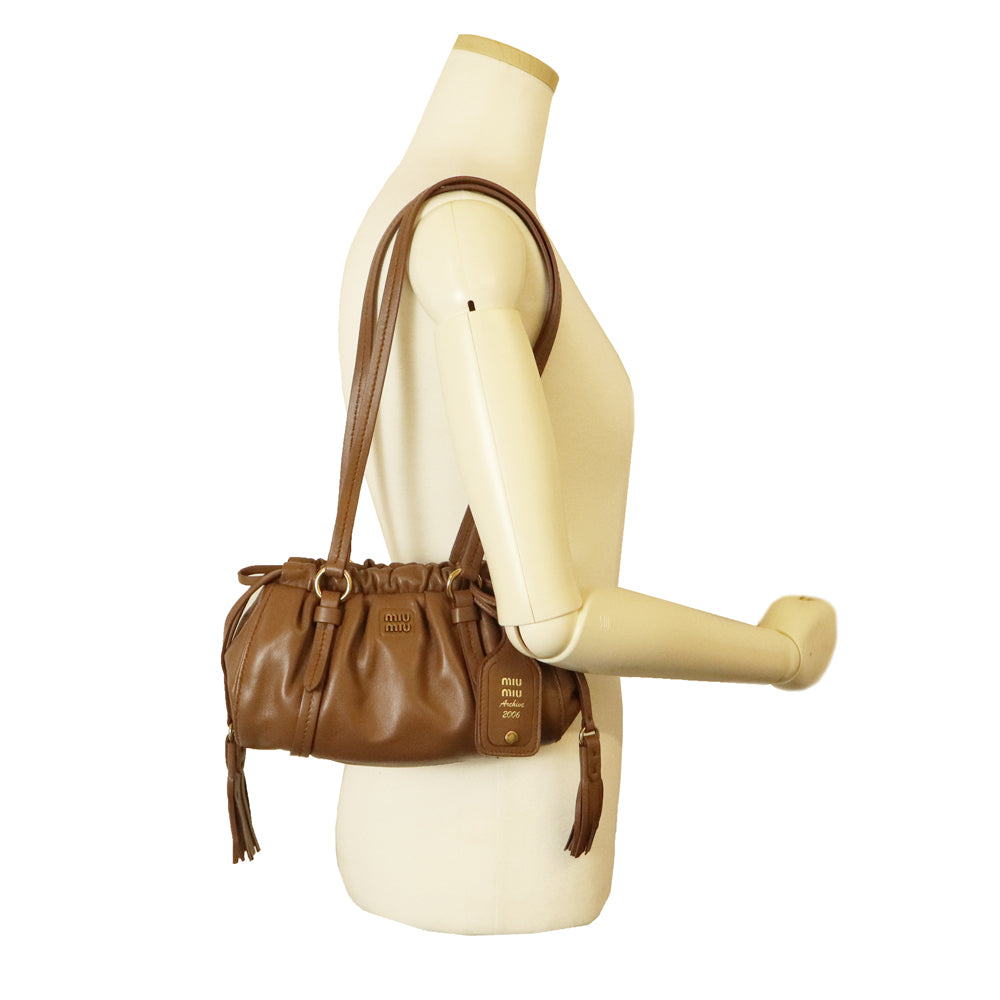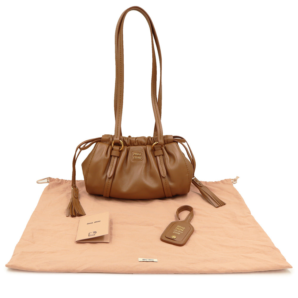 [New and unused] Miu Miu Joie Mini Shoulder Bag in Nappa Leather with Cognac and Gold Hardware (5BP089)