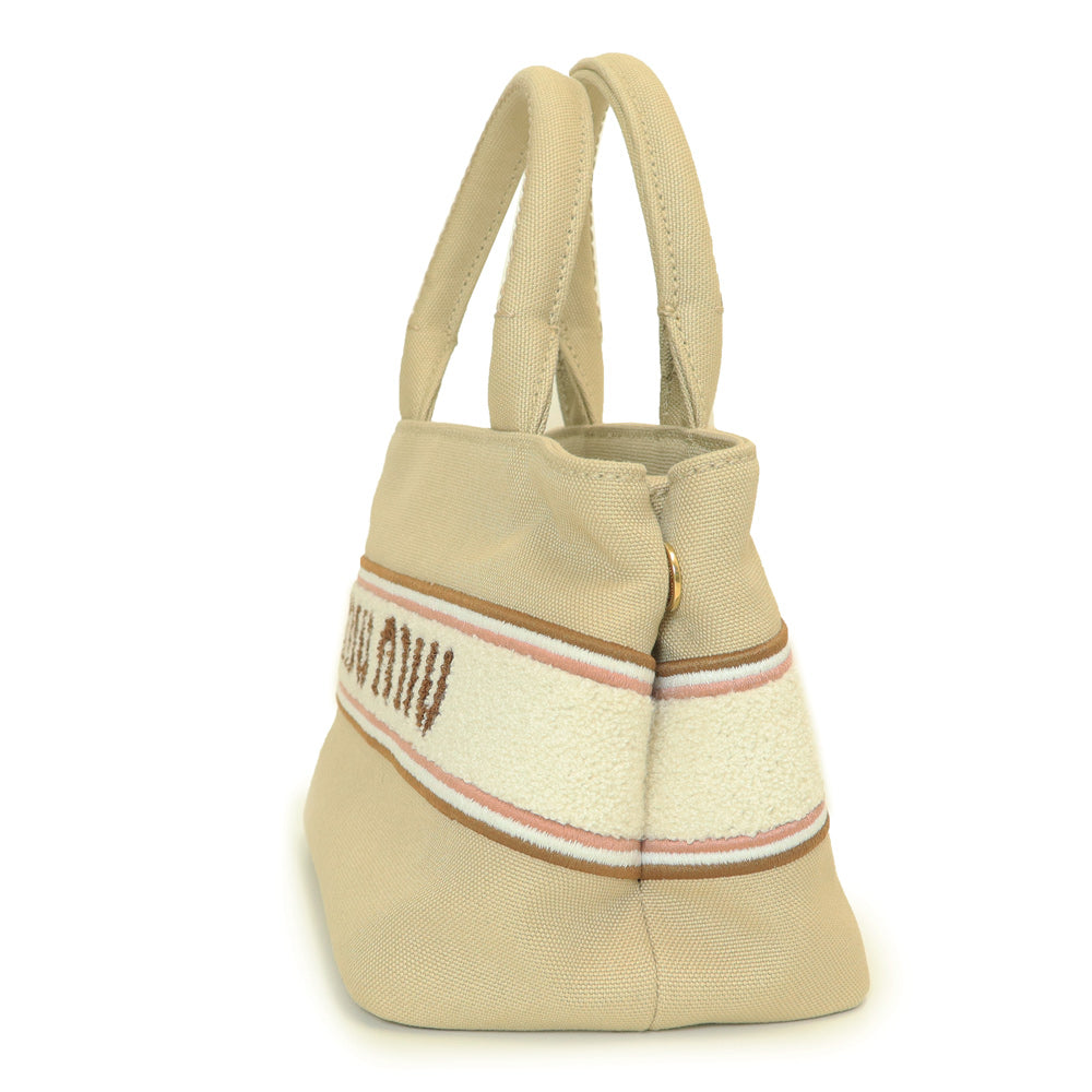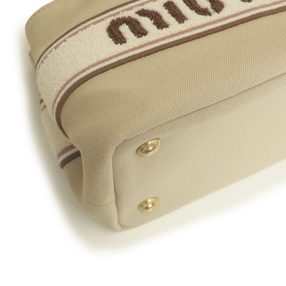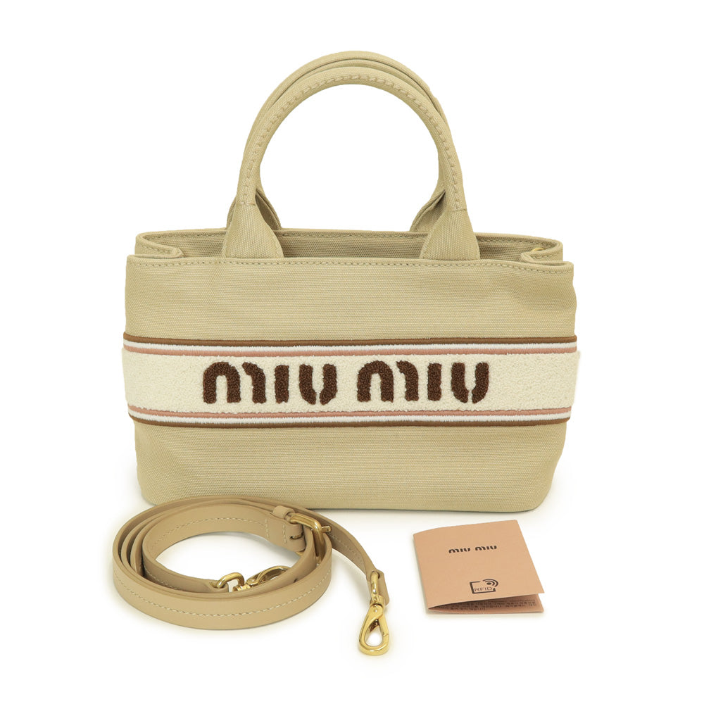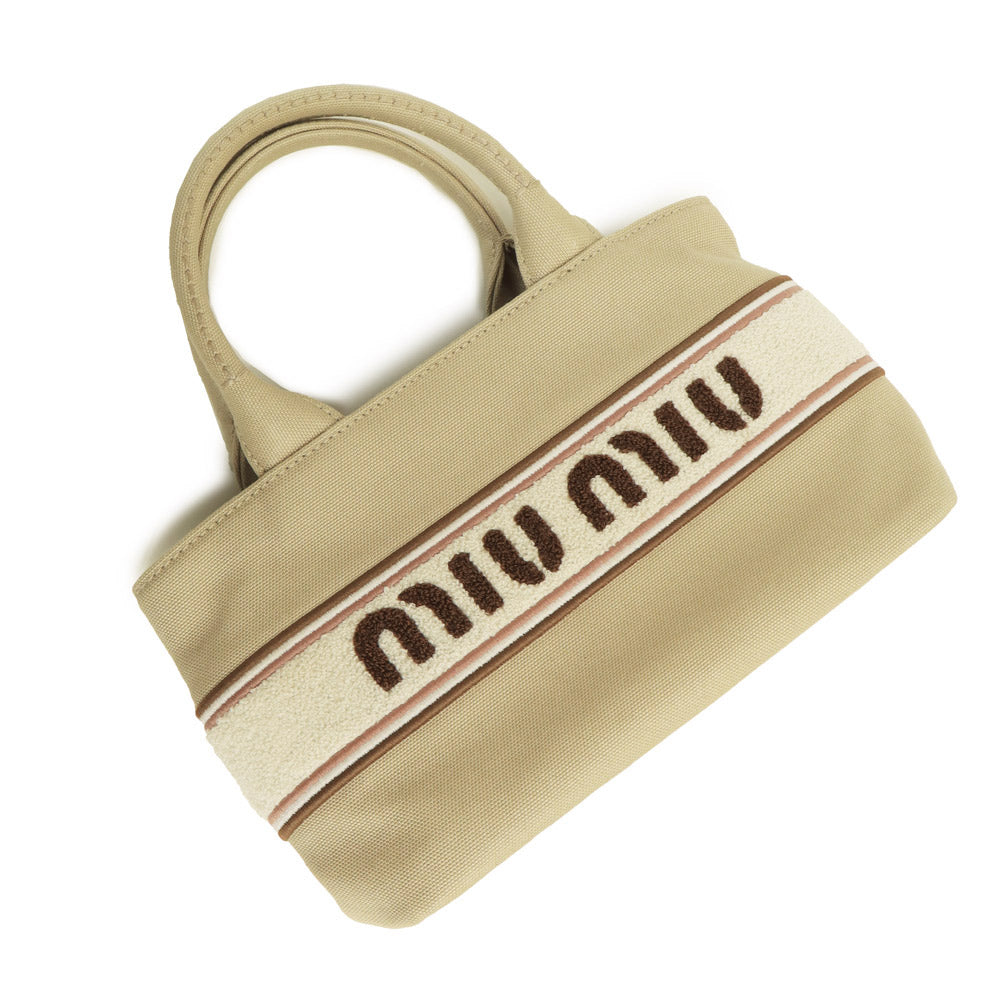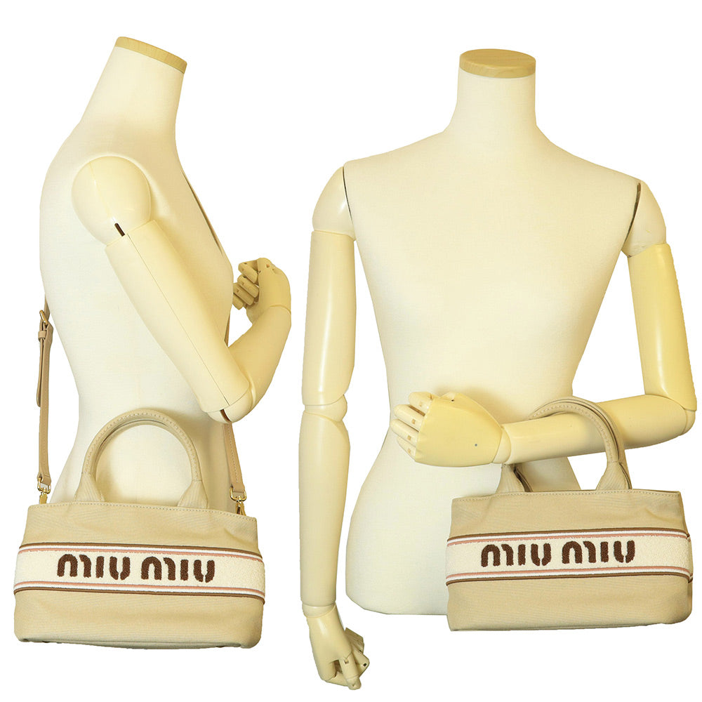 【未使用 展示品】ミュウミュウ miu miu ロゴ デニム 2Way 斜め掛け ショルダー ハンドバッグ ラムスキン レザー CORDA コルダ ゴールド金具 5BA253