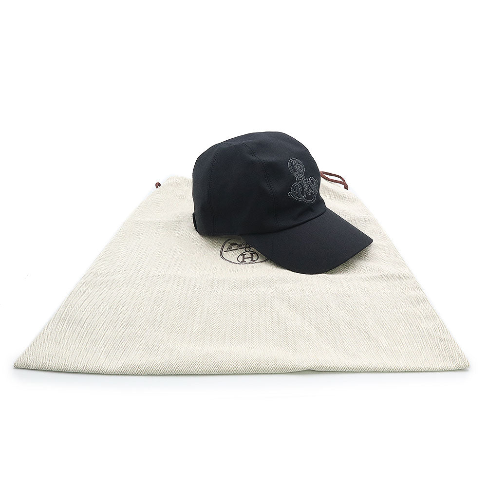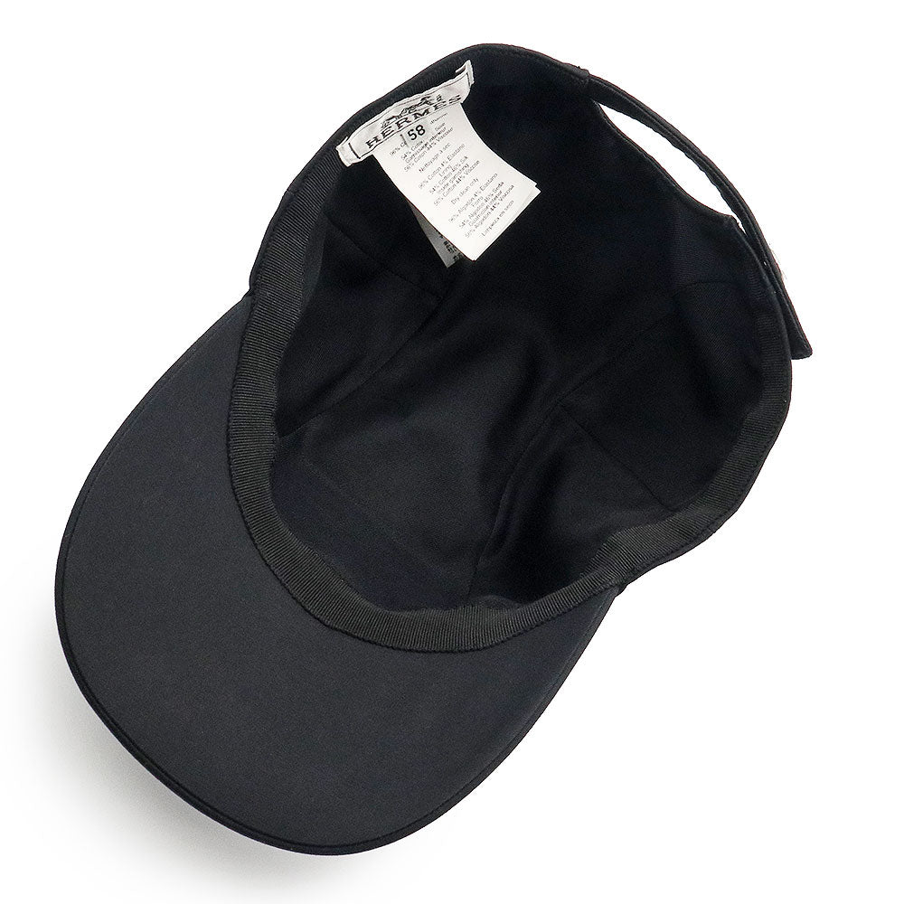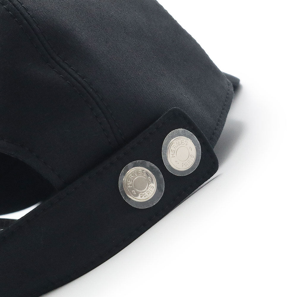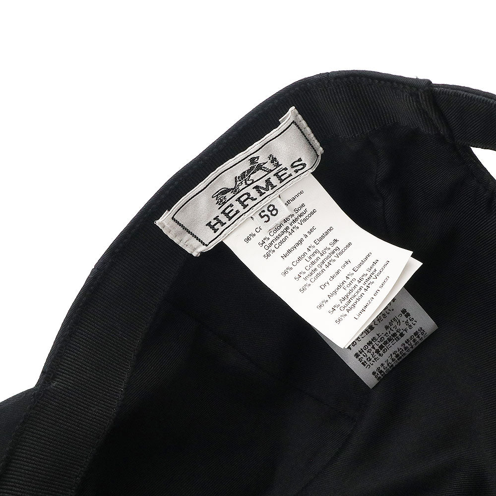 [Unused and stored] Hermès Davis Emile Newsboy Cap, 58cm, 96% Cotton, 4% Elastane, Noir Black, Silver Hardware