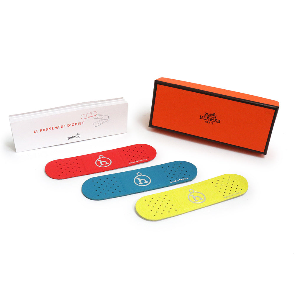[New and unused] Hermes Petit h bandages, band-aid motif stickers, set of 3, Swift leather, red, blue, yellow, box included