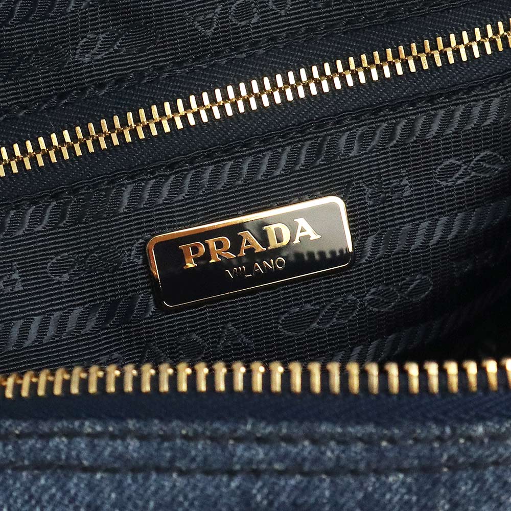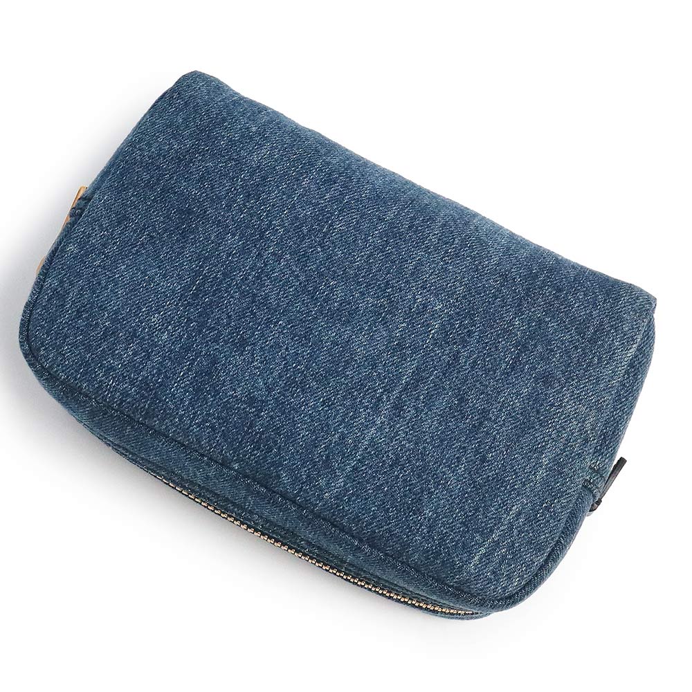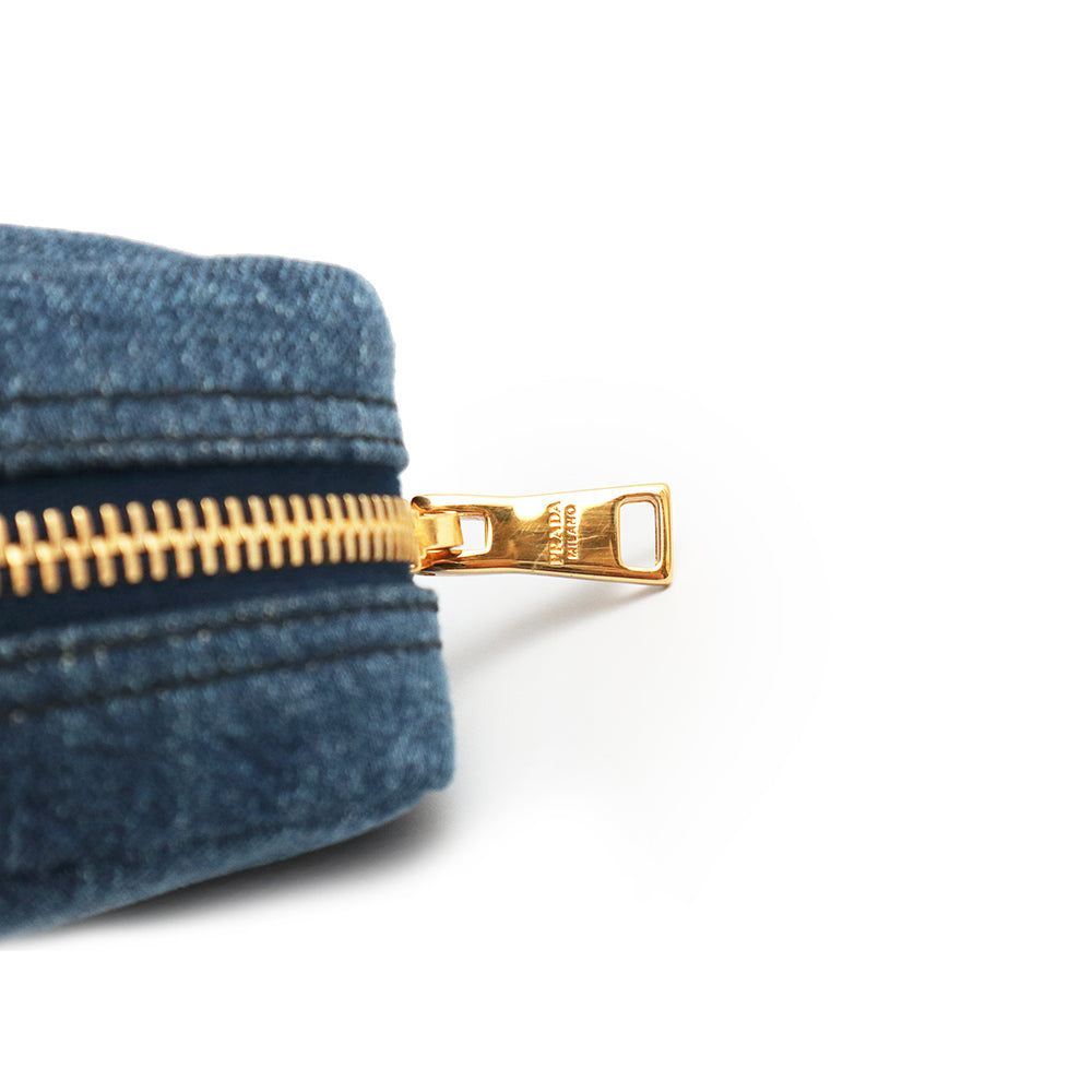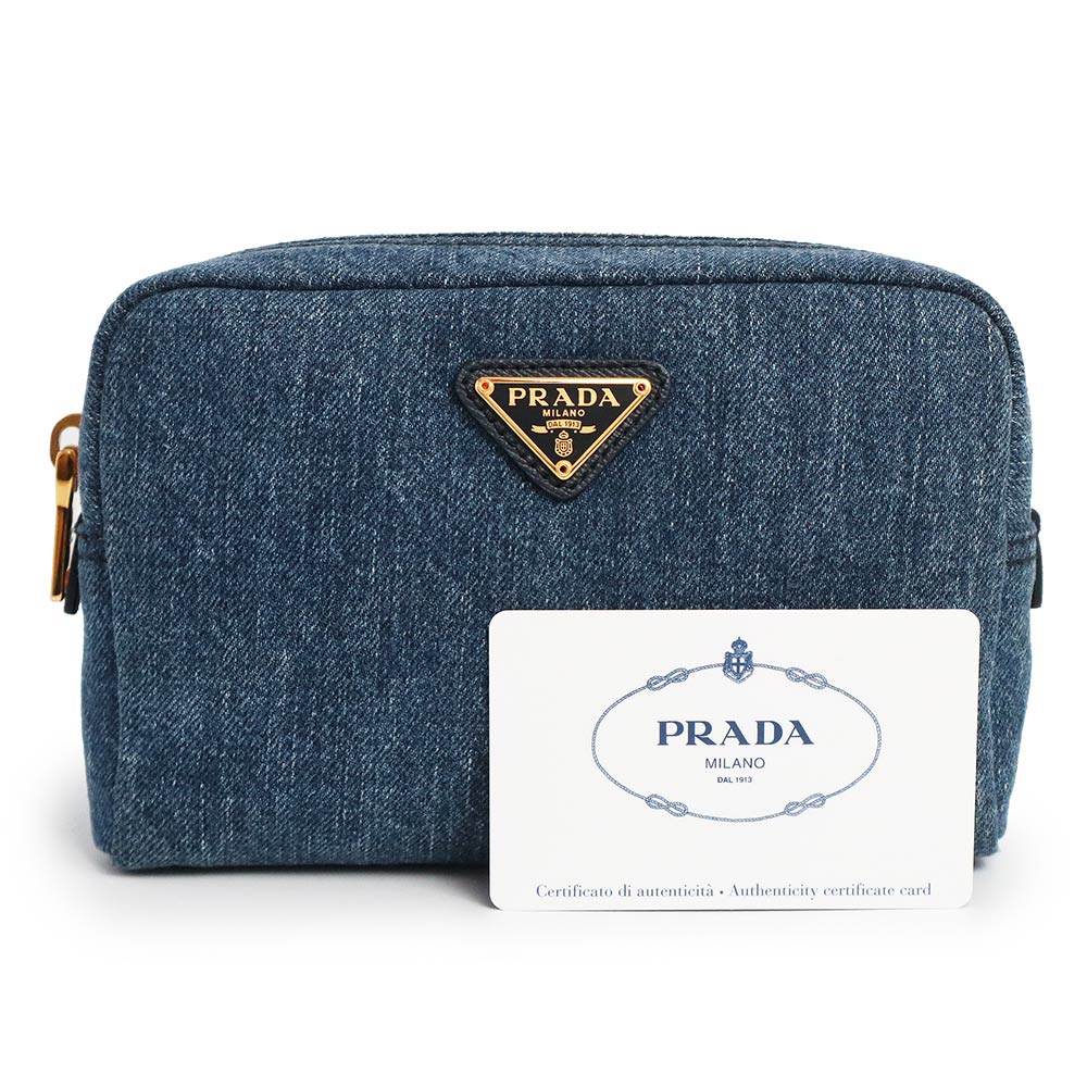 [Unused Display Item] Prada Triangle Logo Cosmetic Makeup Pouch, Blue Denim with Gold Hardware, 1NA021