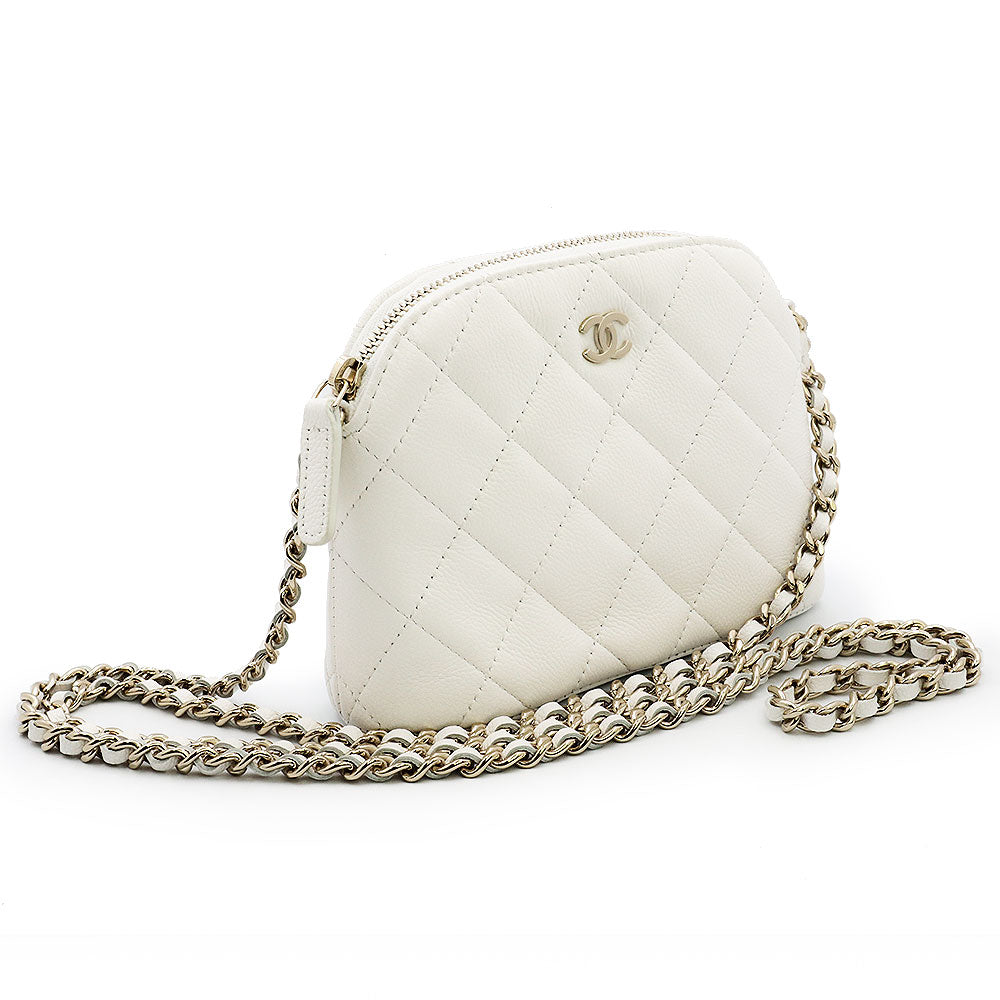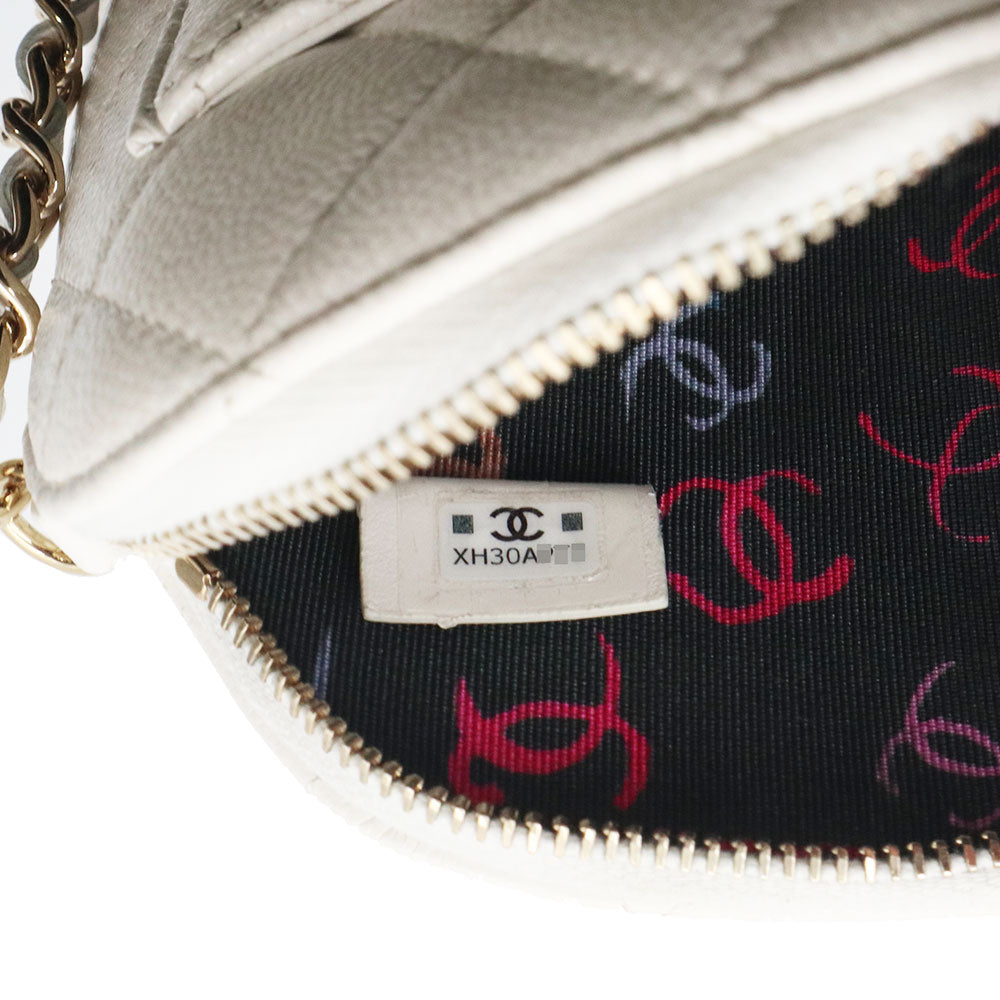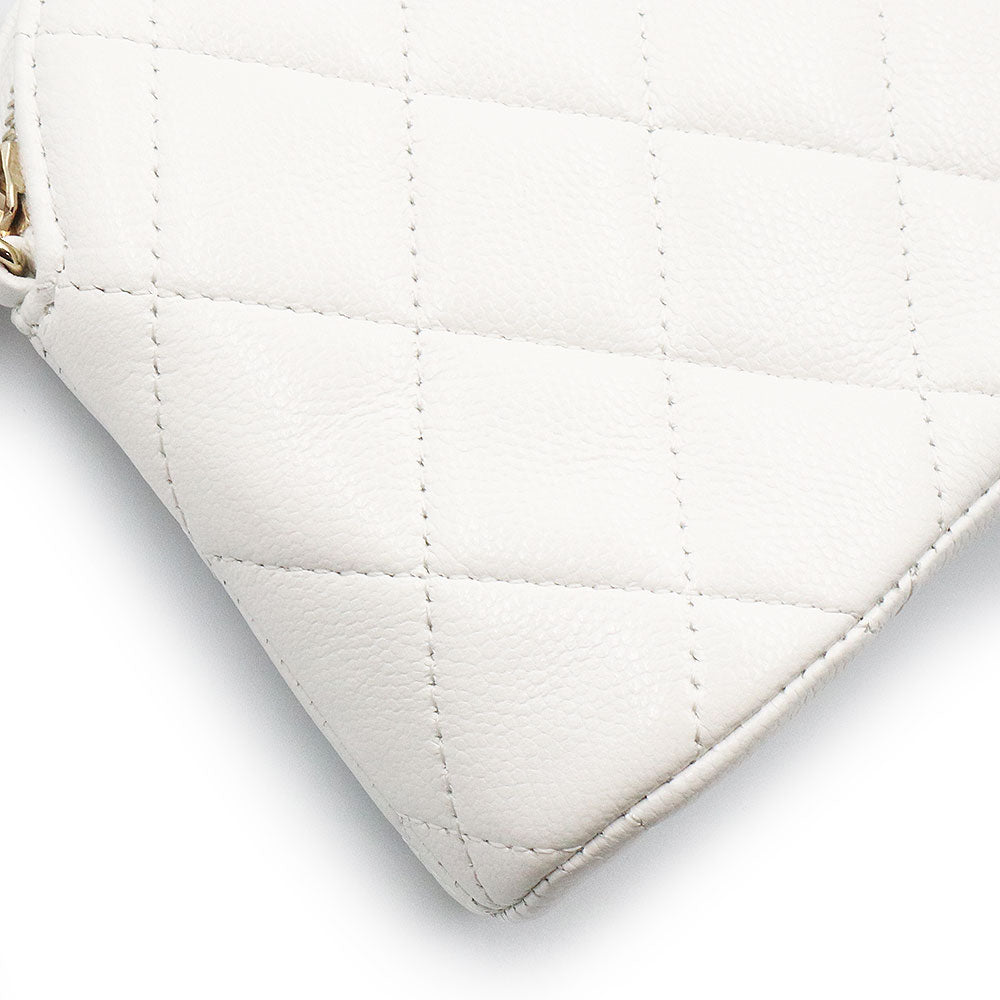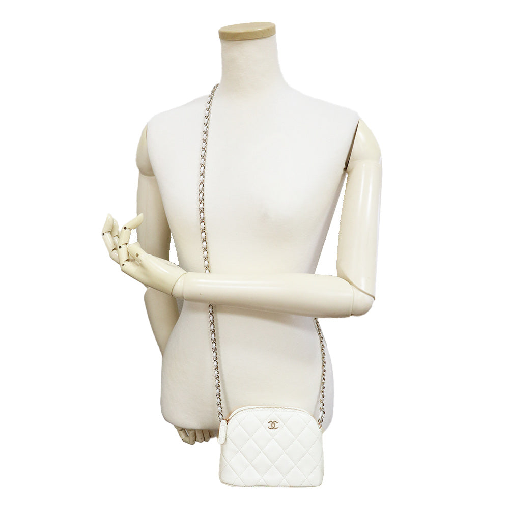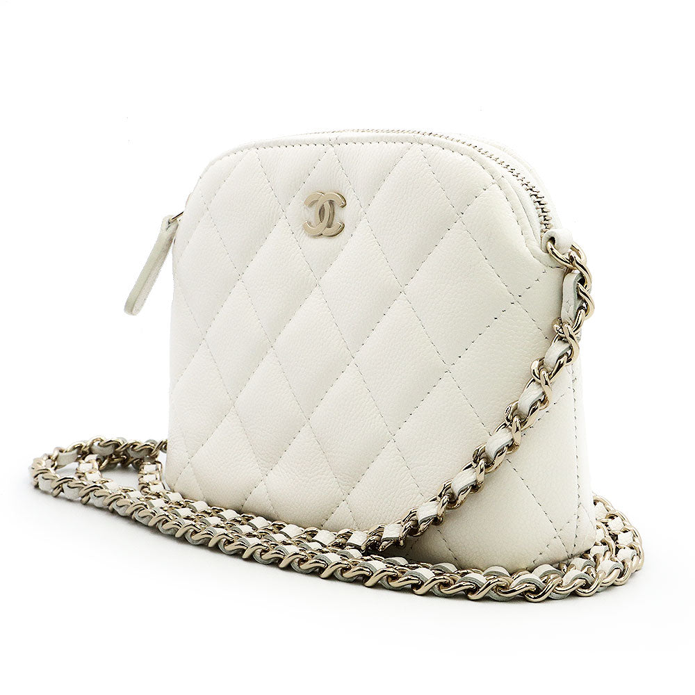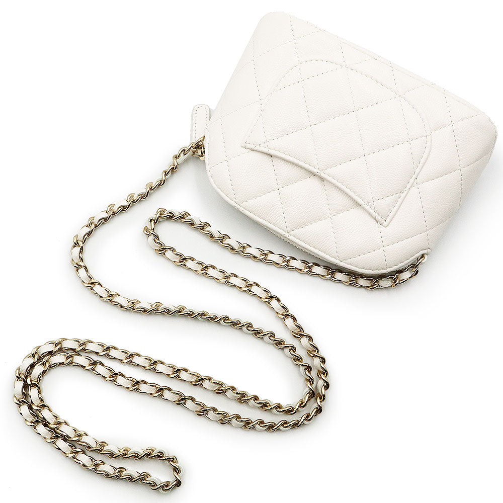[Unused Display Item] CHANEL Timeless Classic Matelassé Chain Clutch Mini Shoulder Bag, Crossbody, Caviar Leather, White with Gold Hardware, AP4000