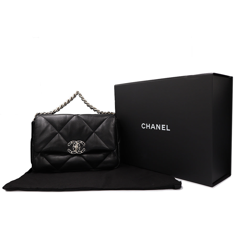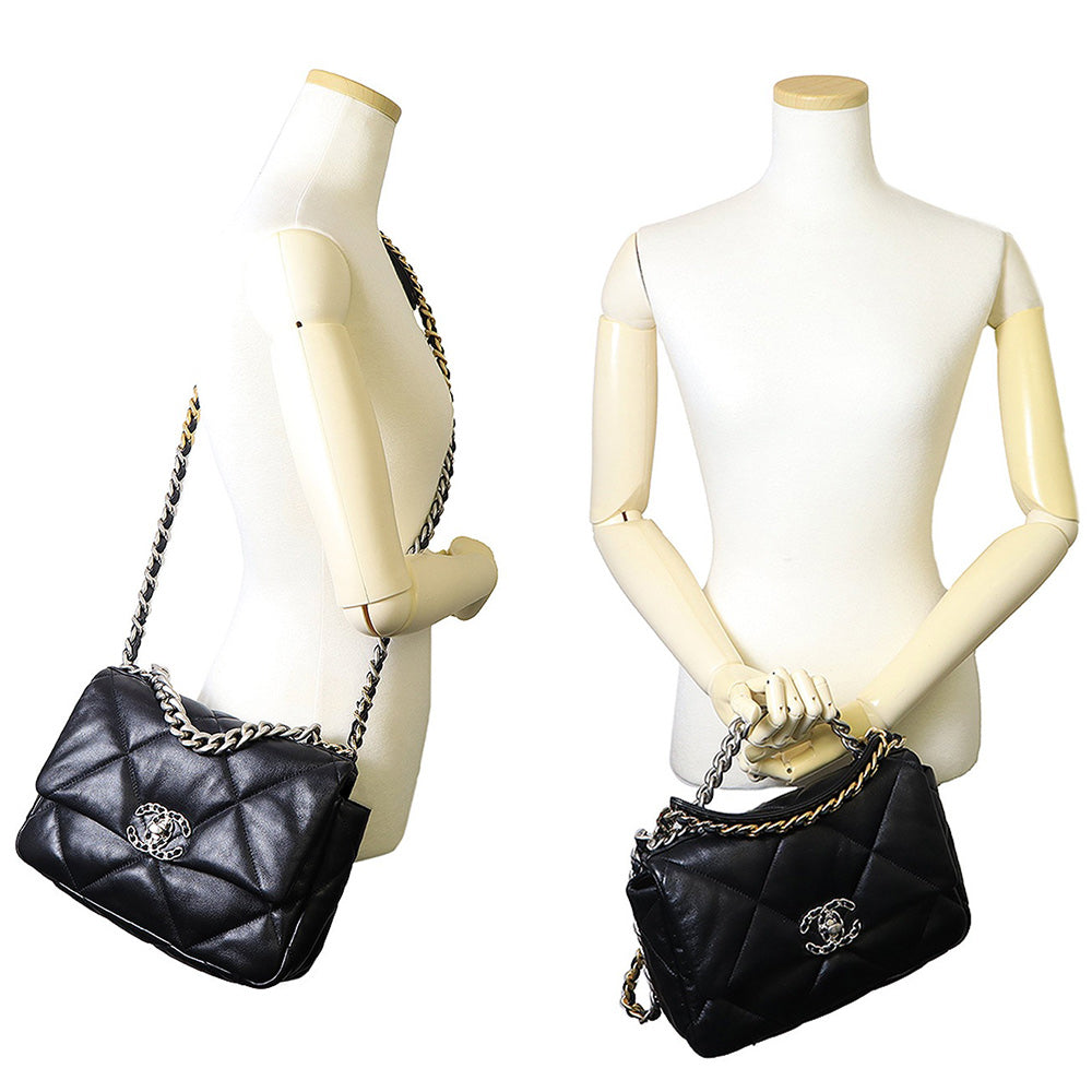 [Unused Display Item] CHANEL 19 Nineteen Coco Mark Flap Matelasse Chain 2-Way Shoulder/Handbag, Crossbody, Lambskin Leather, Black, Antique Gold, Silver Hardware, AS1160