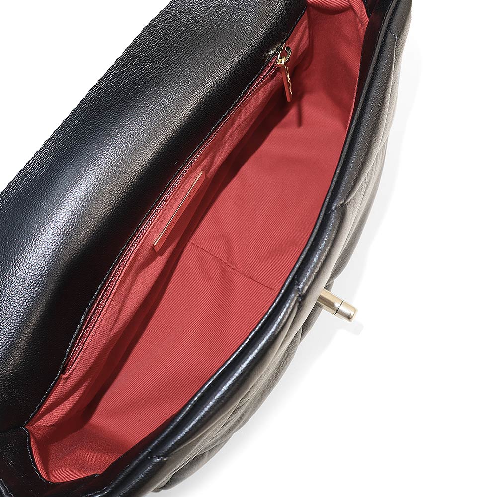 This chain shoulder bag combines matte silver and gold hardware with shiny gold hardware. In addition to the high-quality, smooth feel of the lambskin, it is also a convenient size for going out, with enough room to easily fit a long wallet. |
