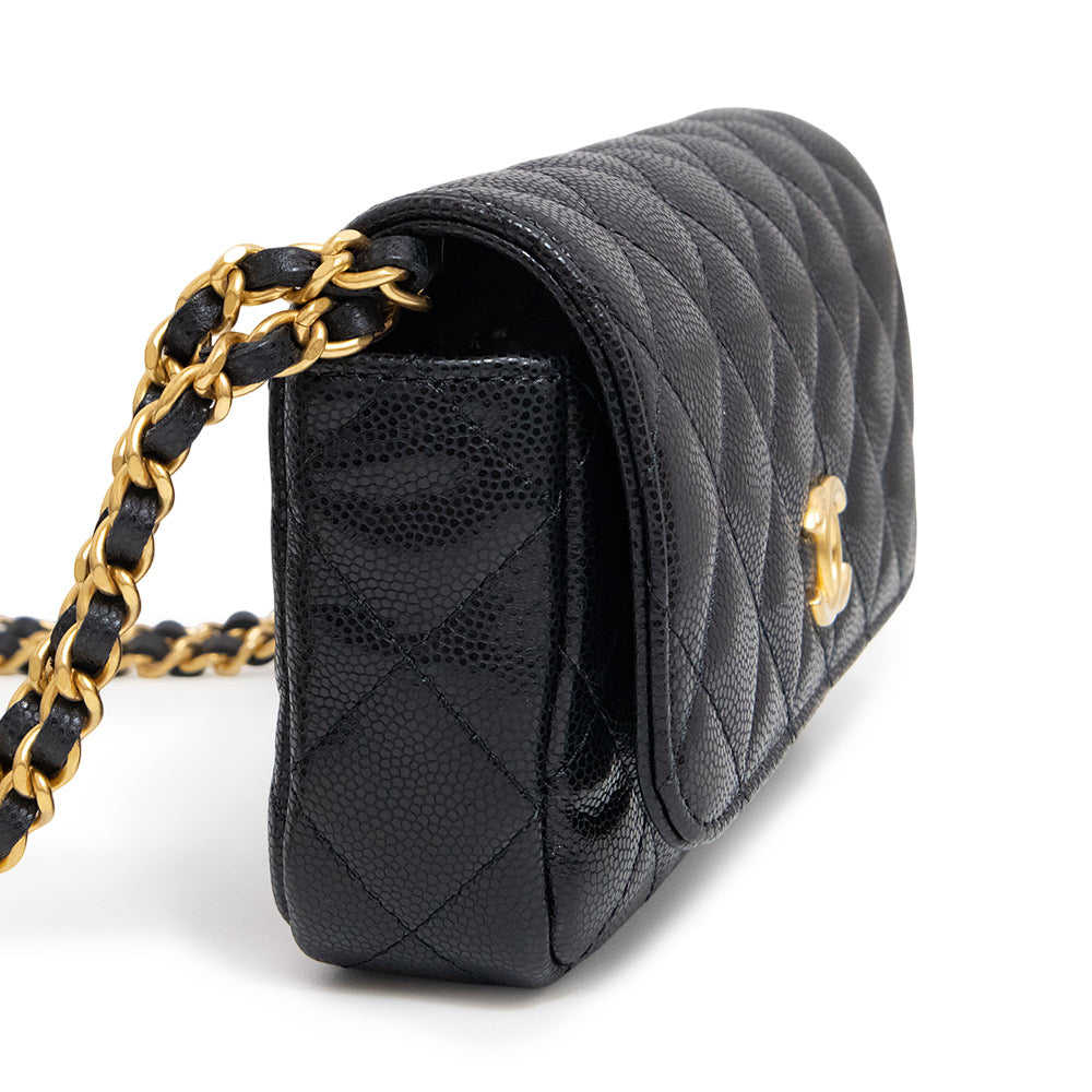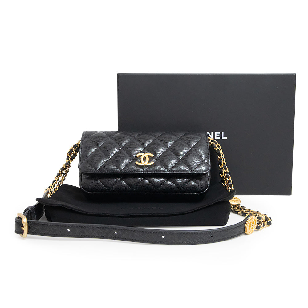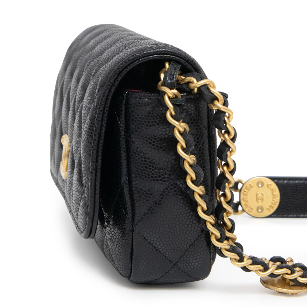 [New and unused] CHANEL Matelasse Mini Flap Chain Shoulder Bag in Soft Caviar Leather, Black with Antique Gold Hardware