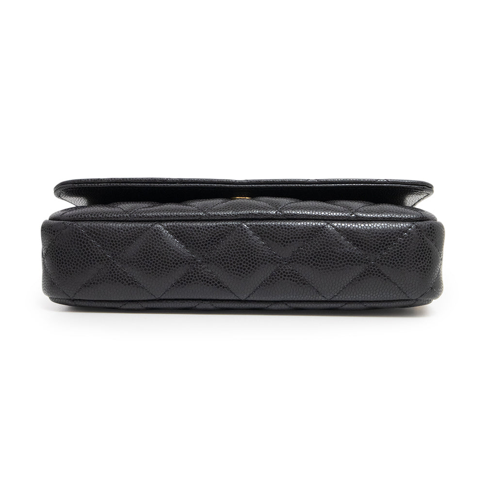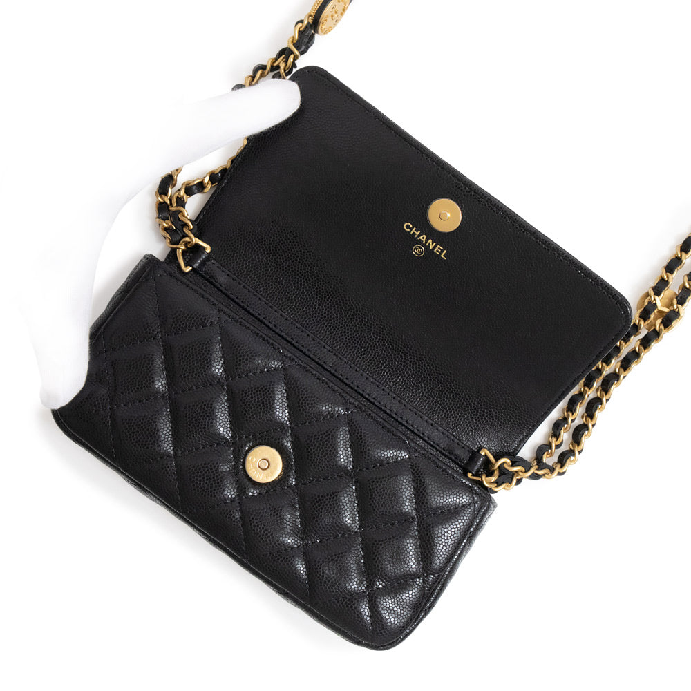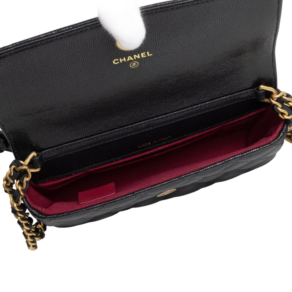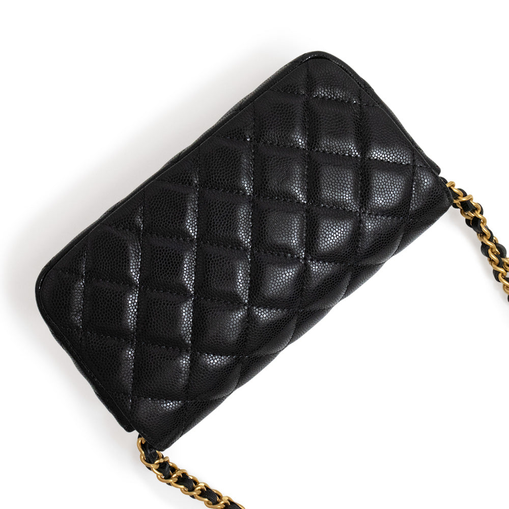 [New and unused] CHANEL Matelasse Mini Flap Chain Shoulder Bag in Soft Caviar Leather, Black with Antique Gold Hardware