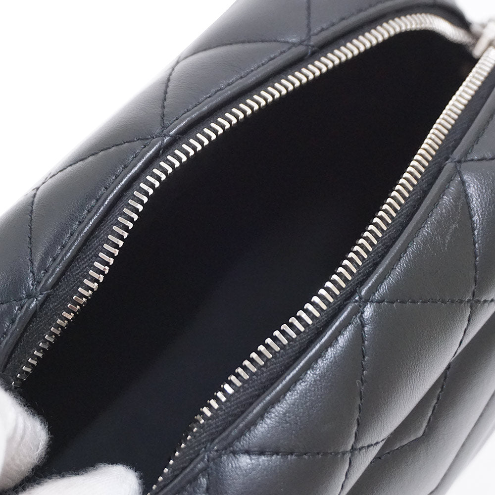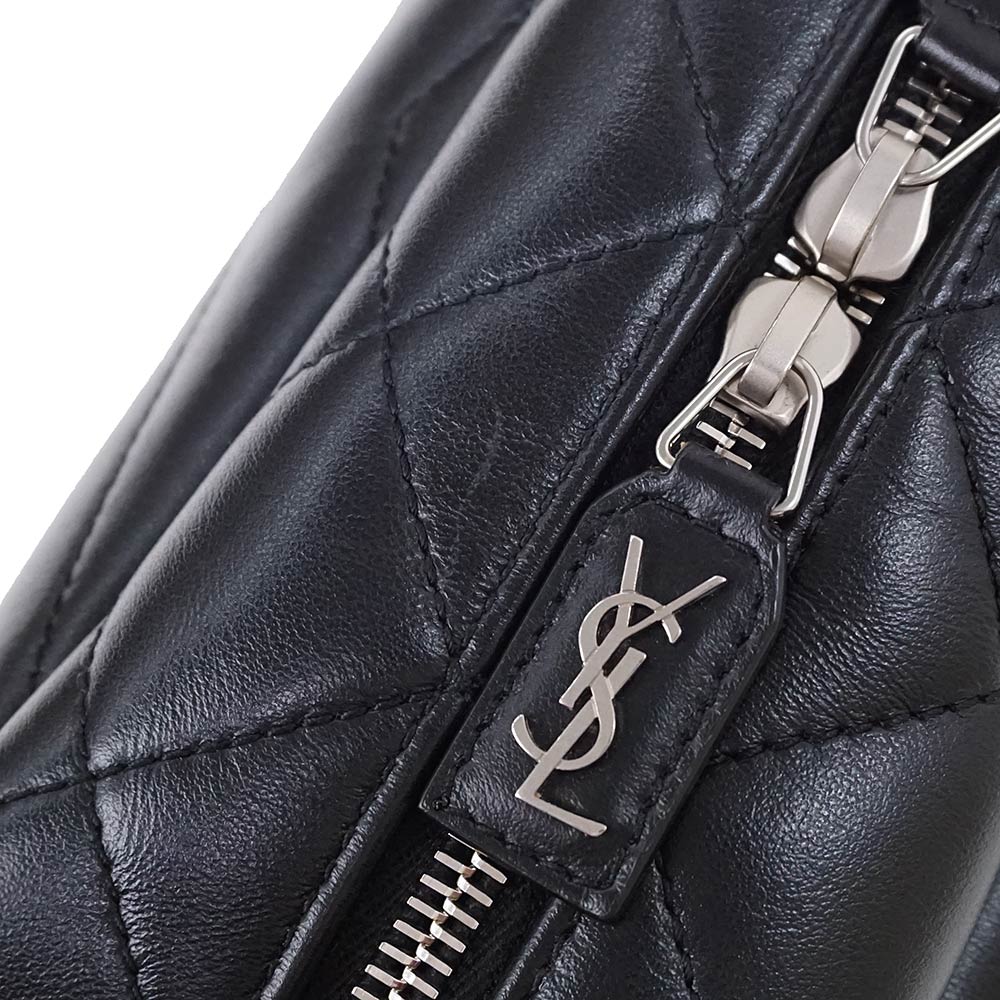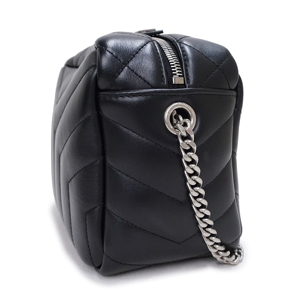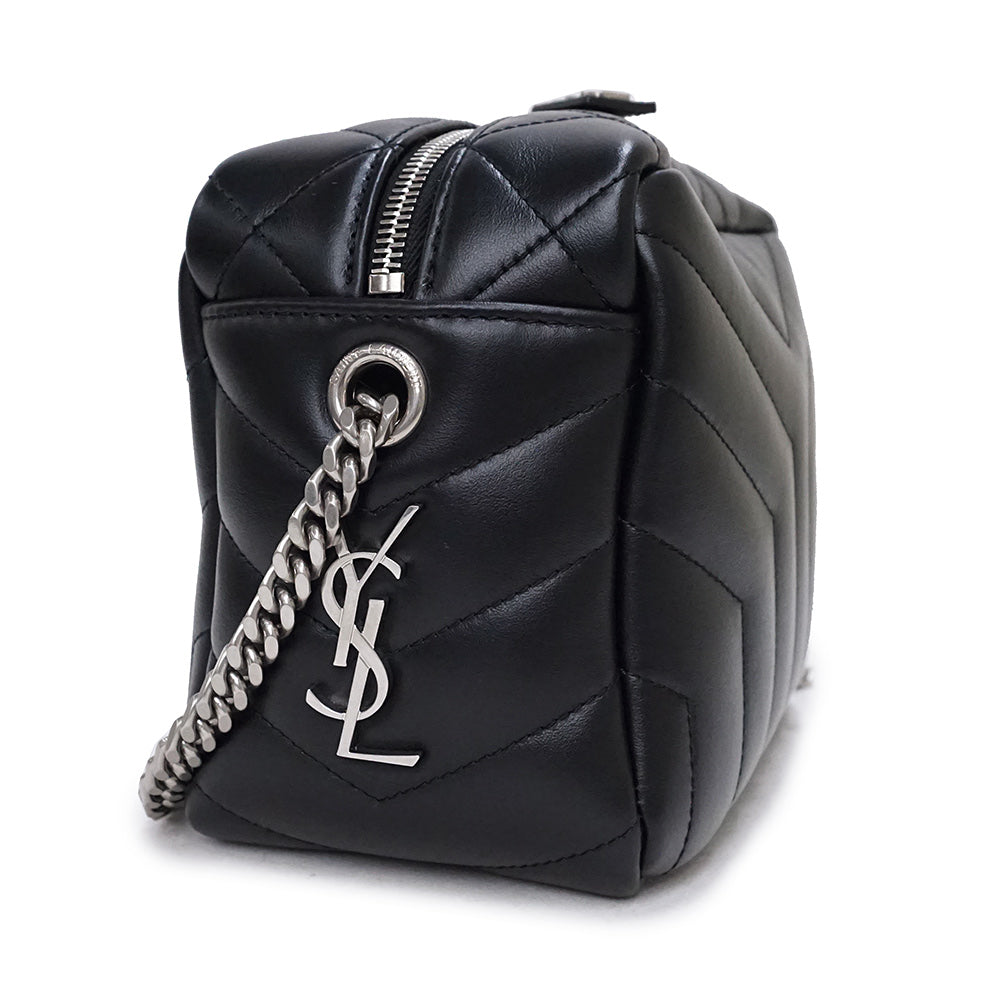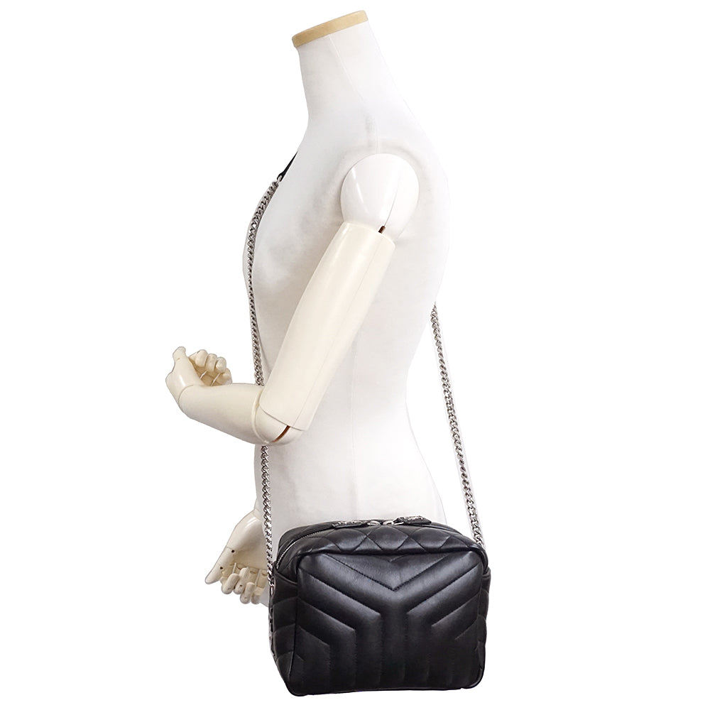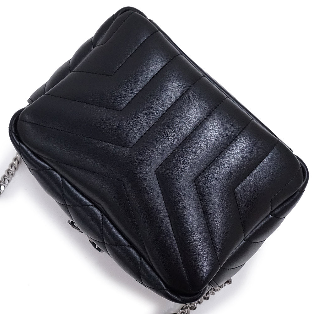 [Unused Display Item] SAINT LAURENT PARIS Lulu Bowling Chain Shoulder Bag, Crossbody, Black Leather with Silver Hardware, 574102