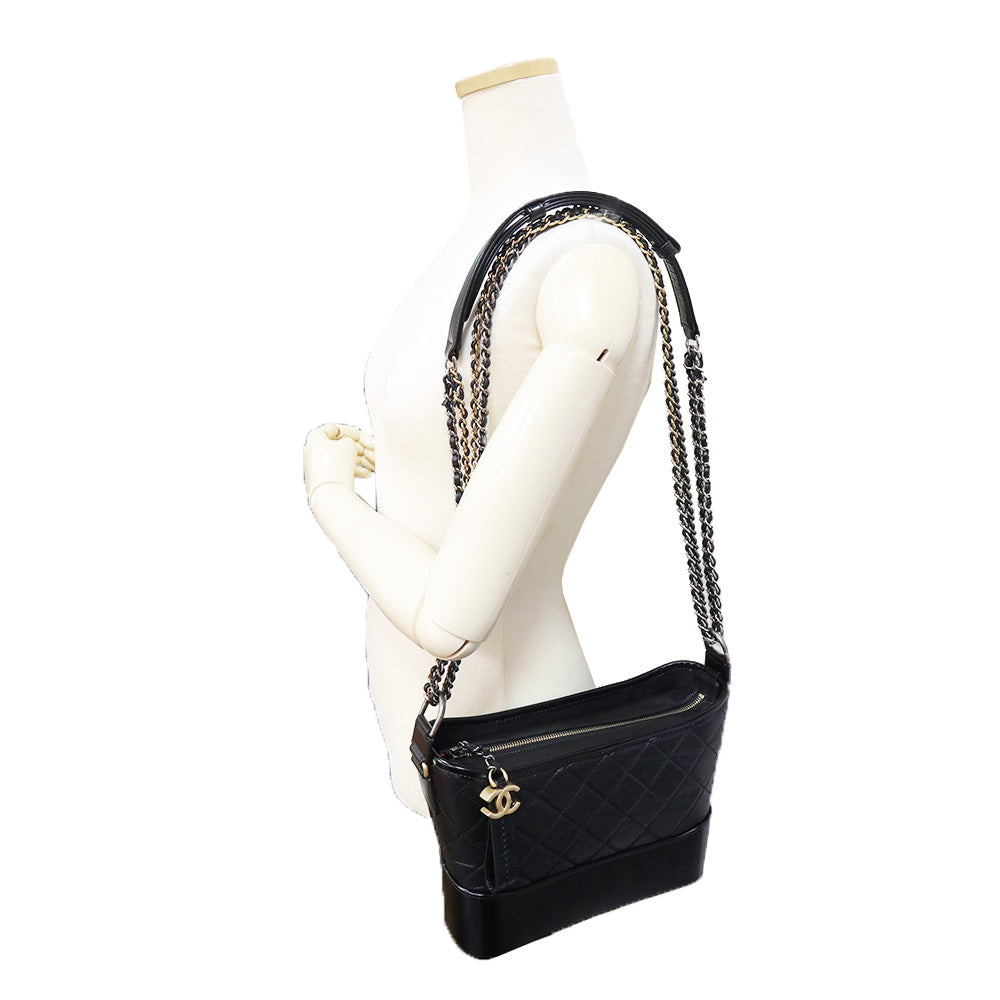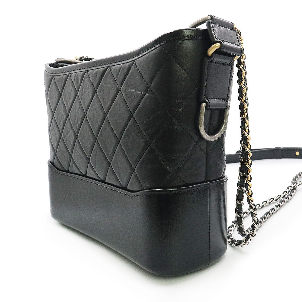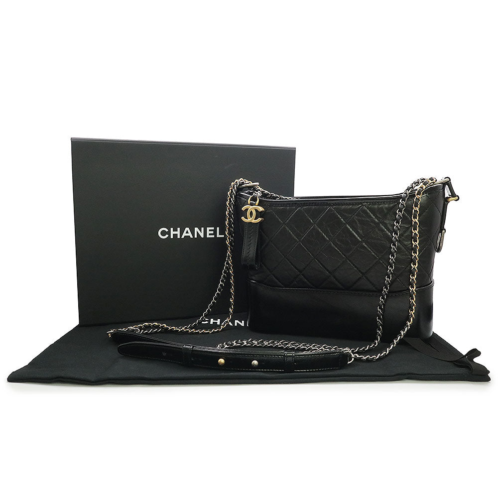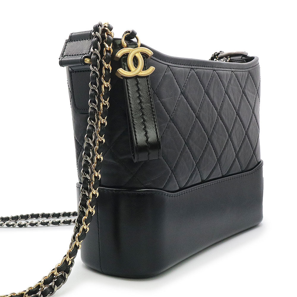 [Unused Display Item] CHANEL Gabrielle de Hobo Tote, 2-Way Chain Shoulder Bag, Crossbody Bag, Aged Calfskin Leather, Black, Gold, Silver, Gunmetal Hardware, AS1521, Box Included