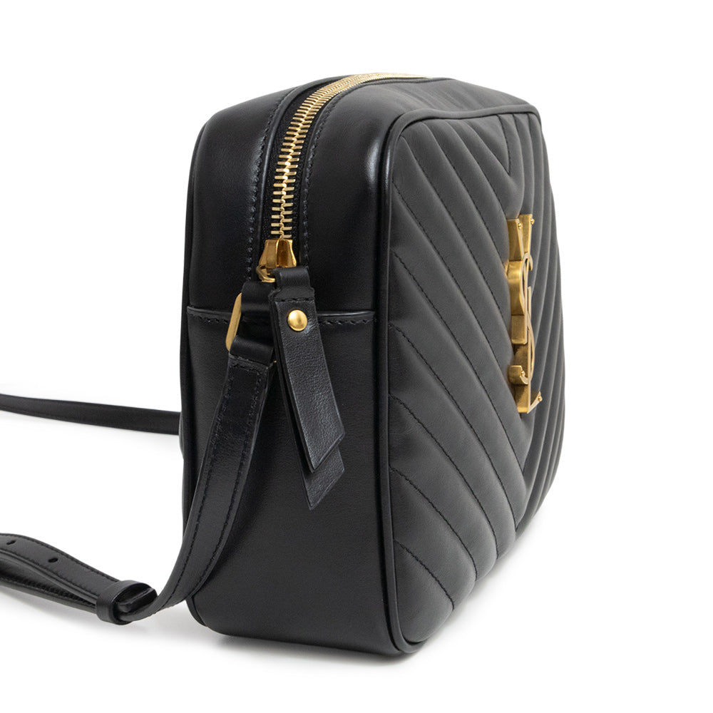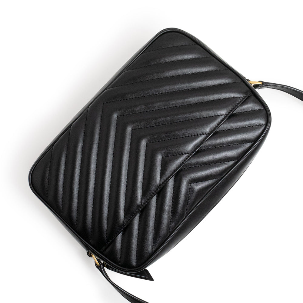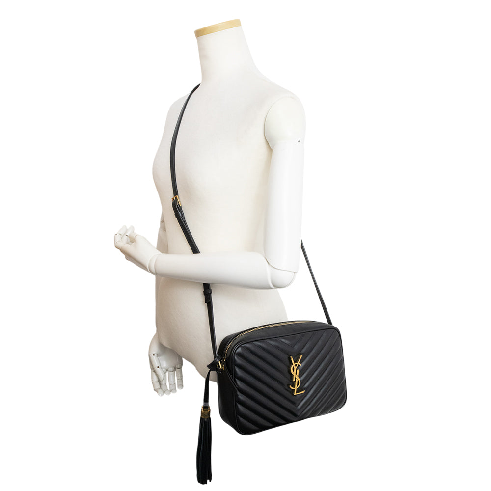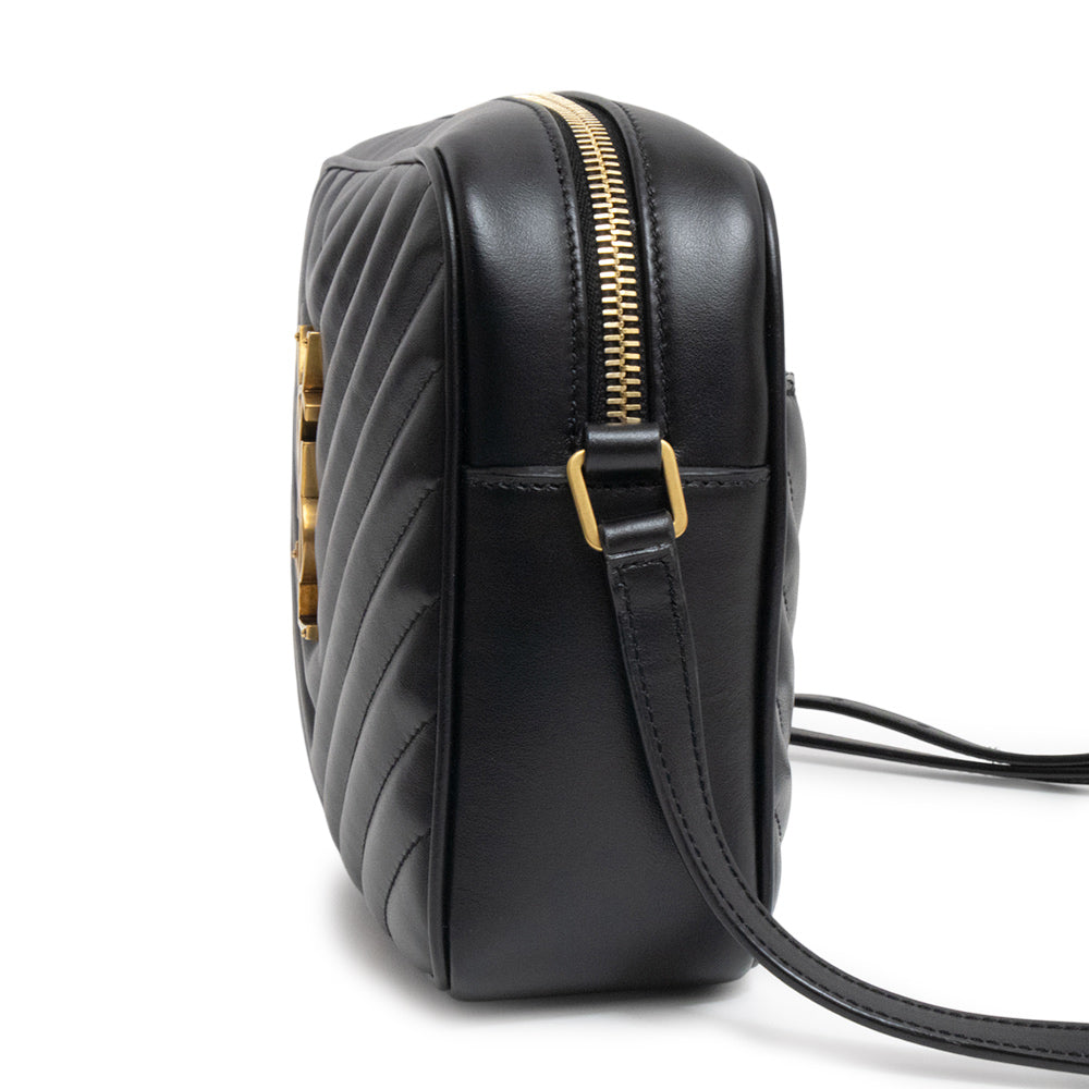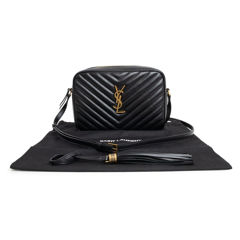 [New and unused] Yves Saint Laurent Lou Camera Shoulder Bag, Black Calfskin Leather with Bronze-tone Metal Hardware, 715232
