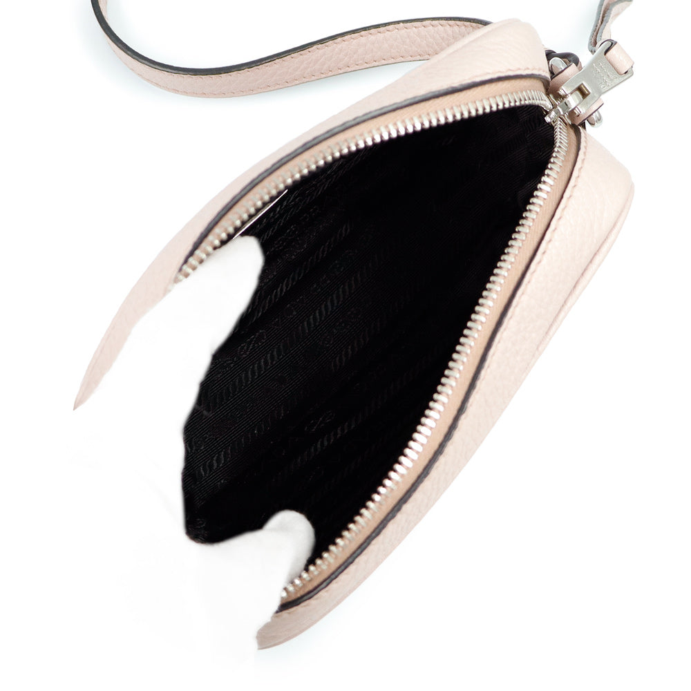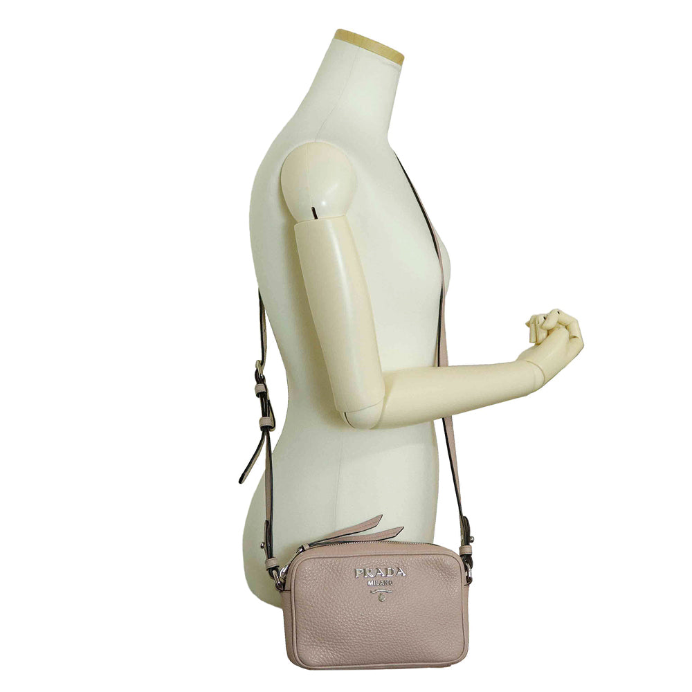 [Unused Display Item] PRADA 1BH096 Vitello Dino Leather Mughetto Pink Shoulder/Crossbody Bag with Silver Hardware