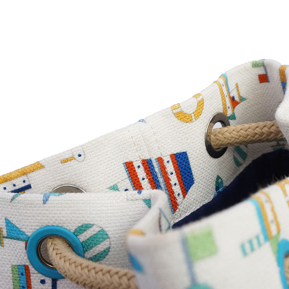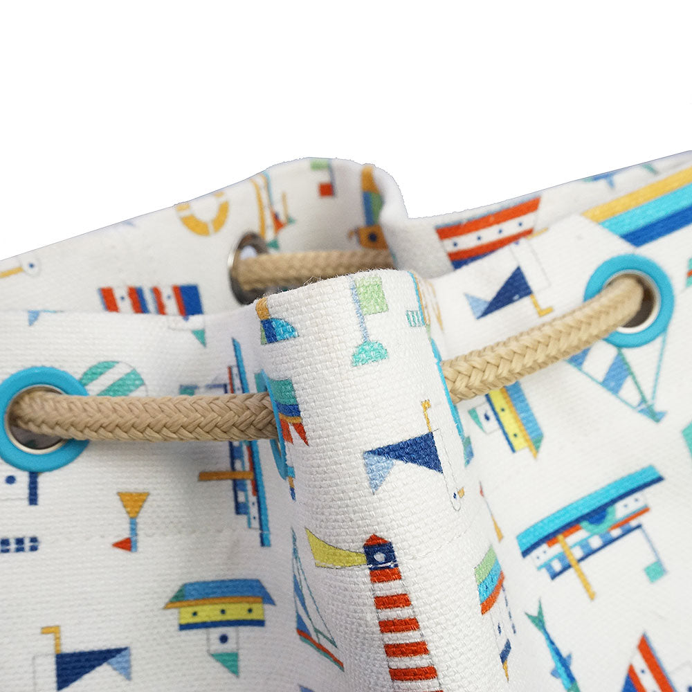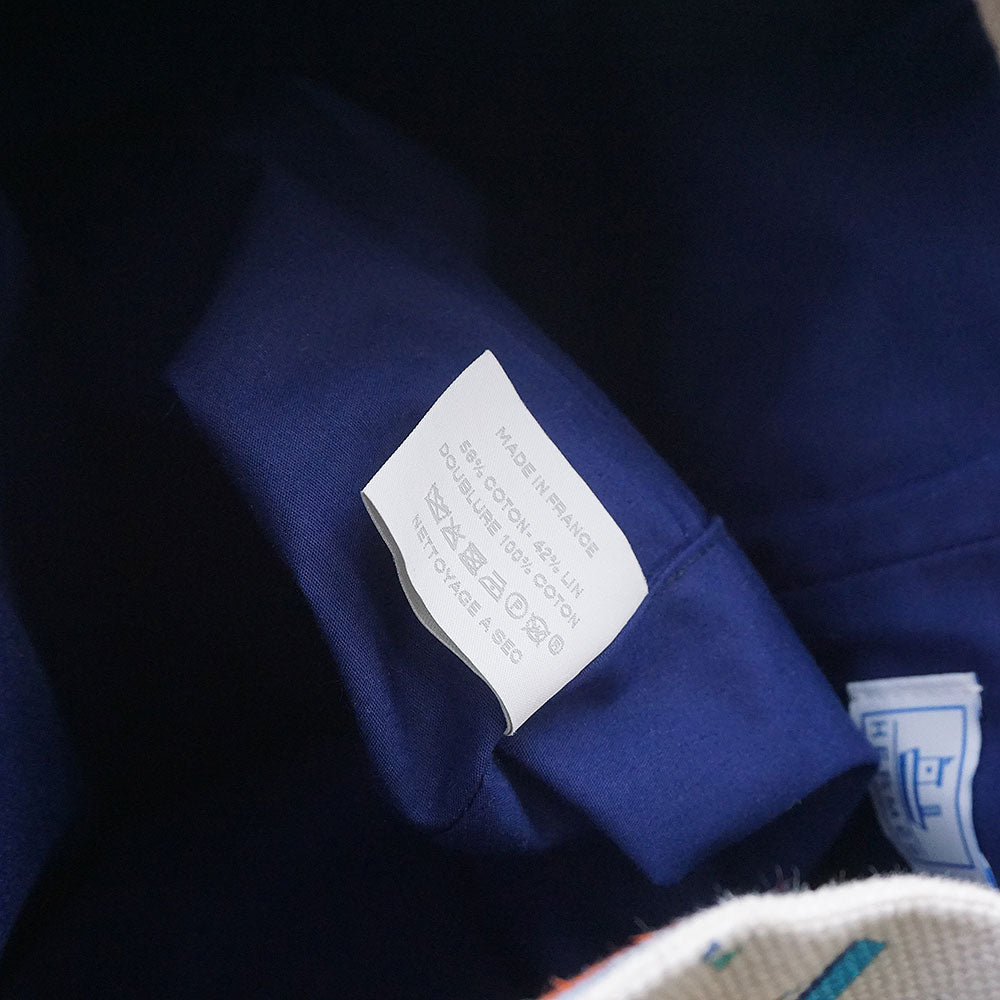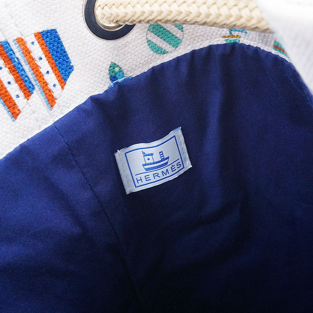 [Excellent Condition] HERMES Petit Chartier Cotton Linen Canvas Drawstring Shoulder Duffel Bag in Azure Blue and White with Silver Hardware