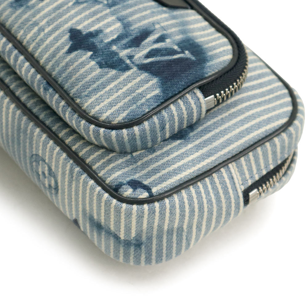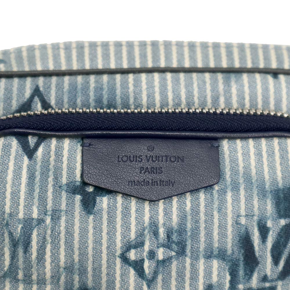 The Outdoor Pochette is crafted from cotton canvas with a hickory stripe design. The canvas is treated with a watercolor-like finish and features a Monogram pattern. Its stylish and functional design can be worn crossbody or around the neck. Remove the strap and use it as a pouch inside your bag. |