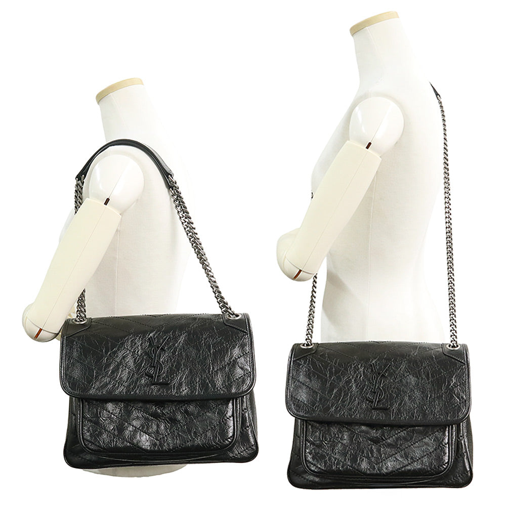 [Unused Display Item] SAINT LAURENT PARIS 498894 Niki Medium Vintage Calfskin Bag, Black, 2-Way, Chain, Shoulder/Crossbody Bag, Leather, Silver Hardware