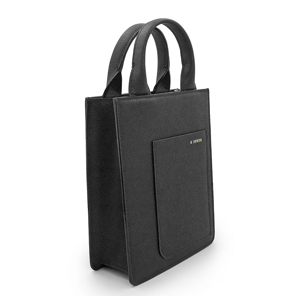 [Unused Display Item] Valextra WBBX0037028LRL99NN Boxy Micro Soft Calfskin Black 2-Way Shoulder/Handbag with Silver Hardware