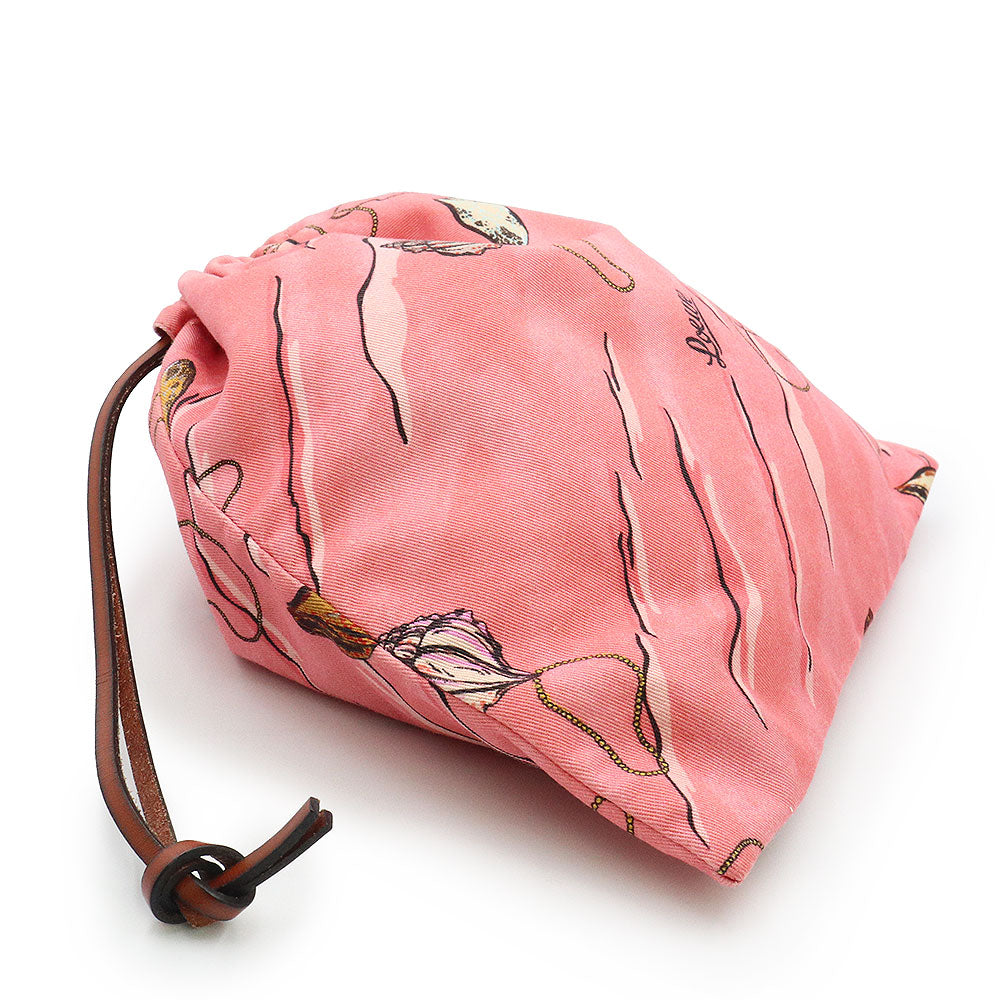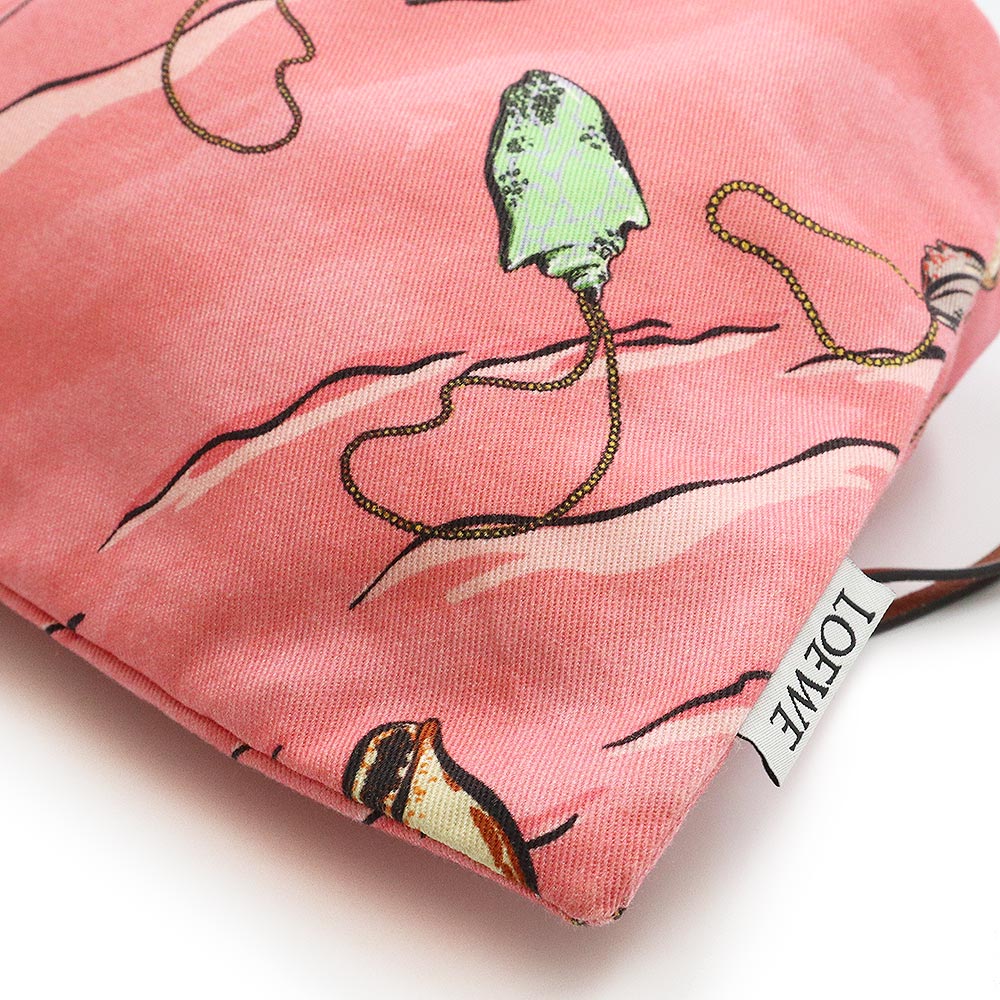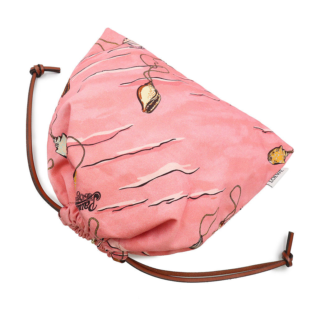 [Unused, Stored] LOEWE Palaus Ibiza Shell Drawstring Pouch, Cotton Canvas, Calfskin Leather, Pink Tulip, C822057X12