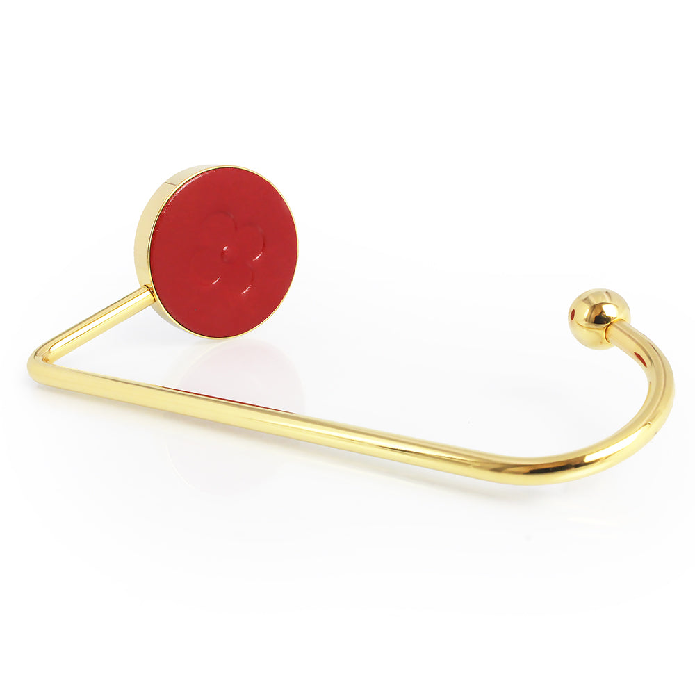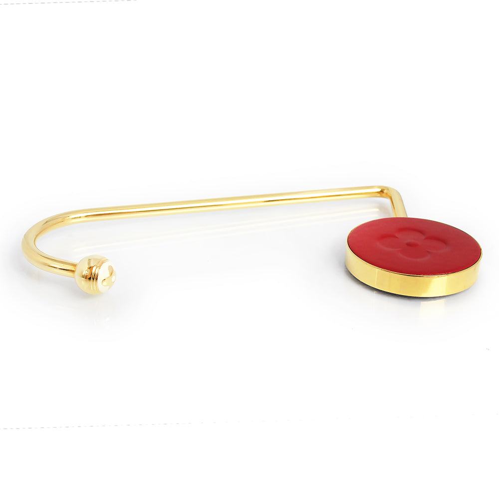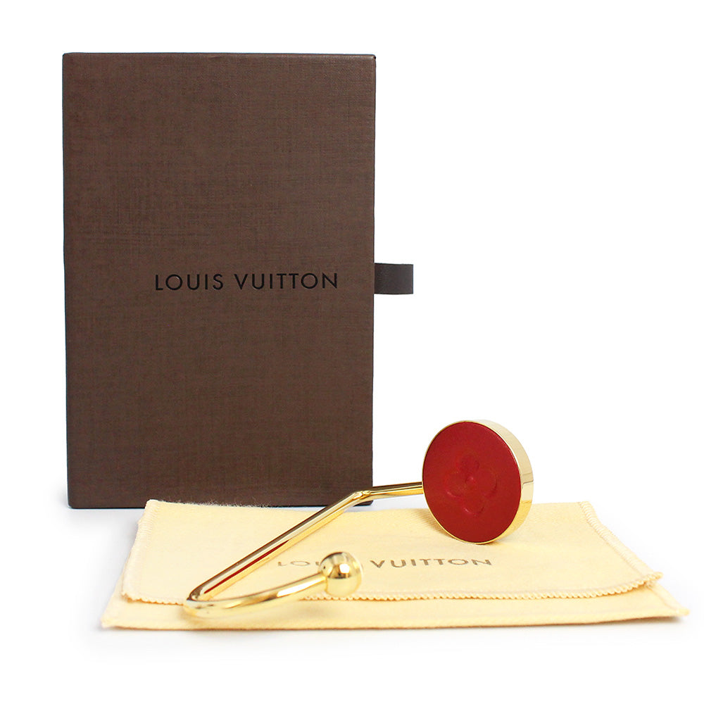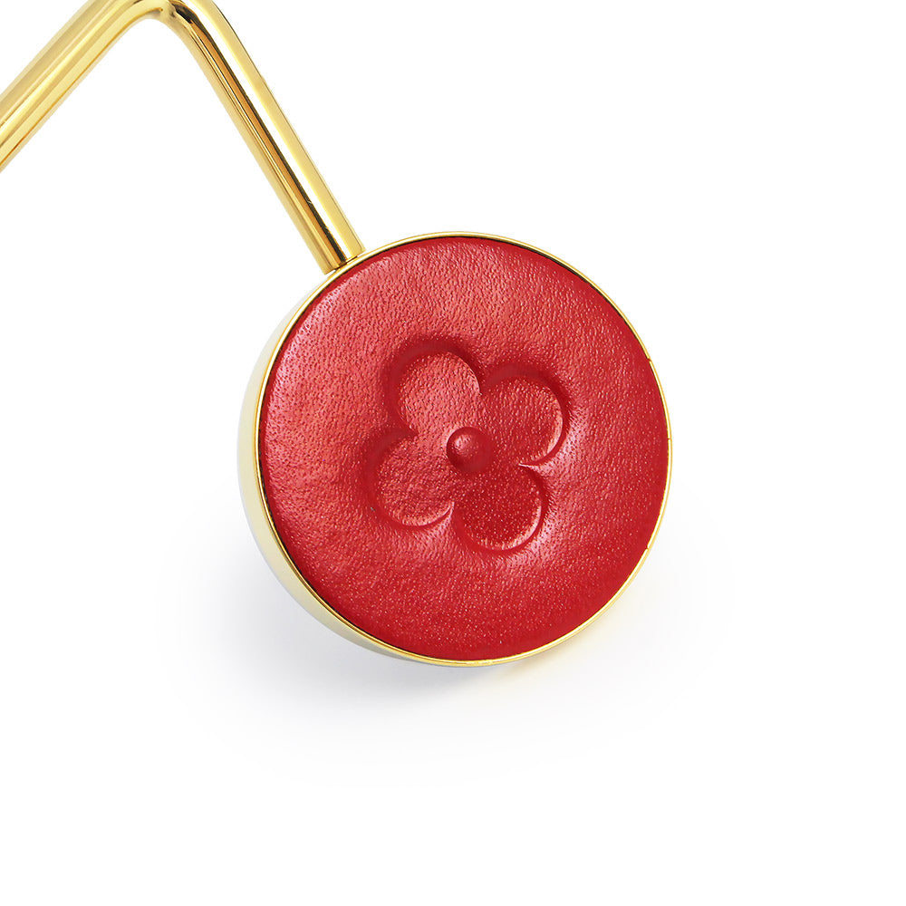 Pre-owned Louis Vuitton Monogram Flower Bag Hanger Hook, Novelty, Rare, Metal, Leather, Red, Gold Hardware, Box Included