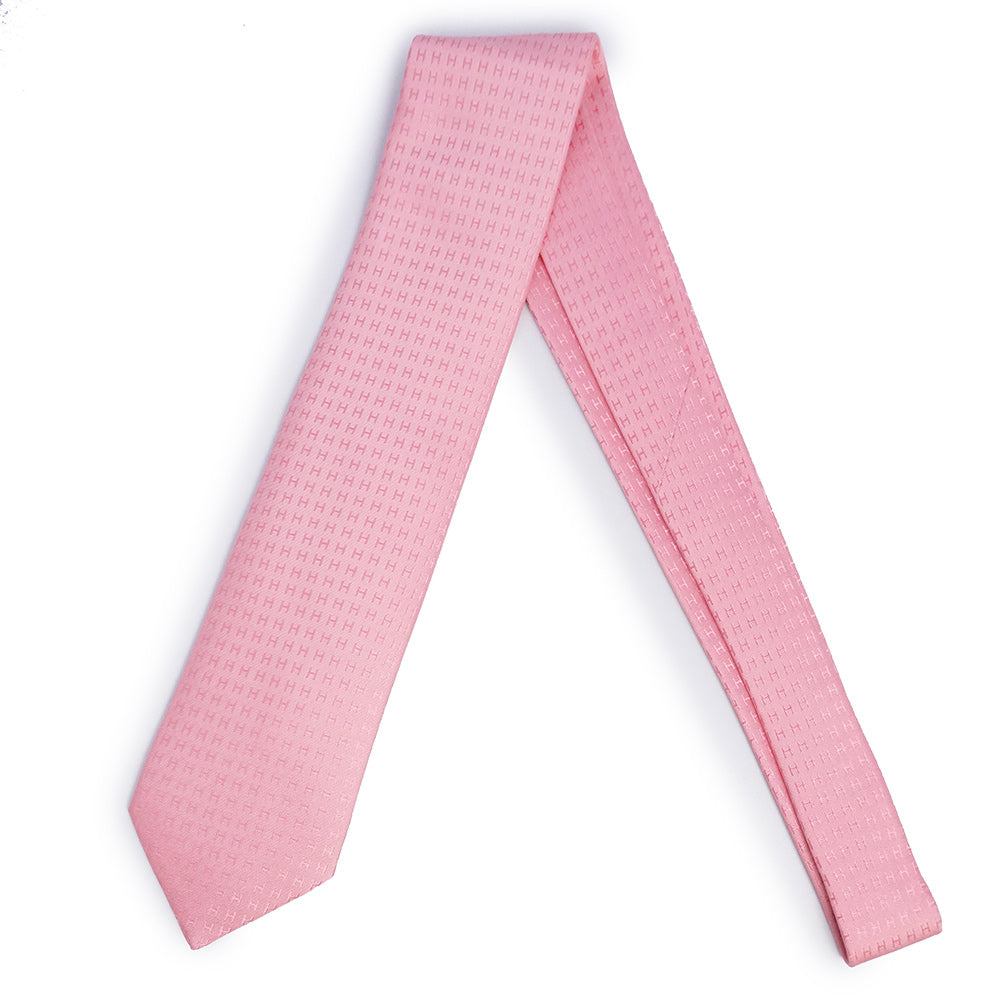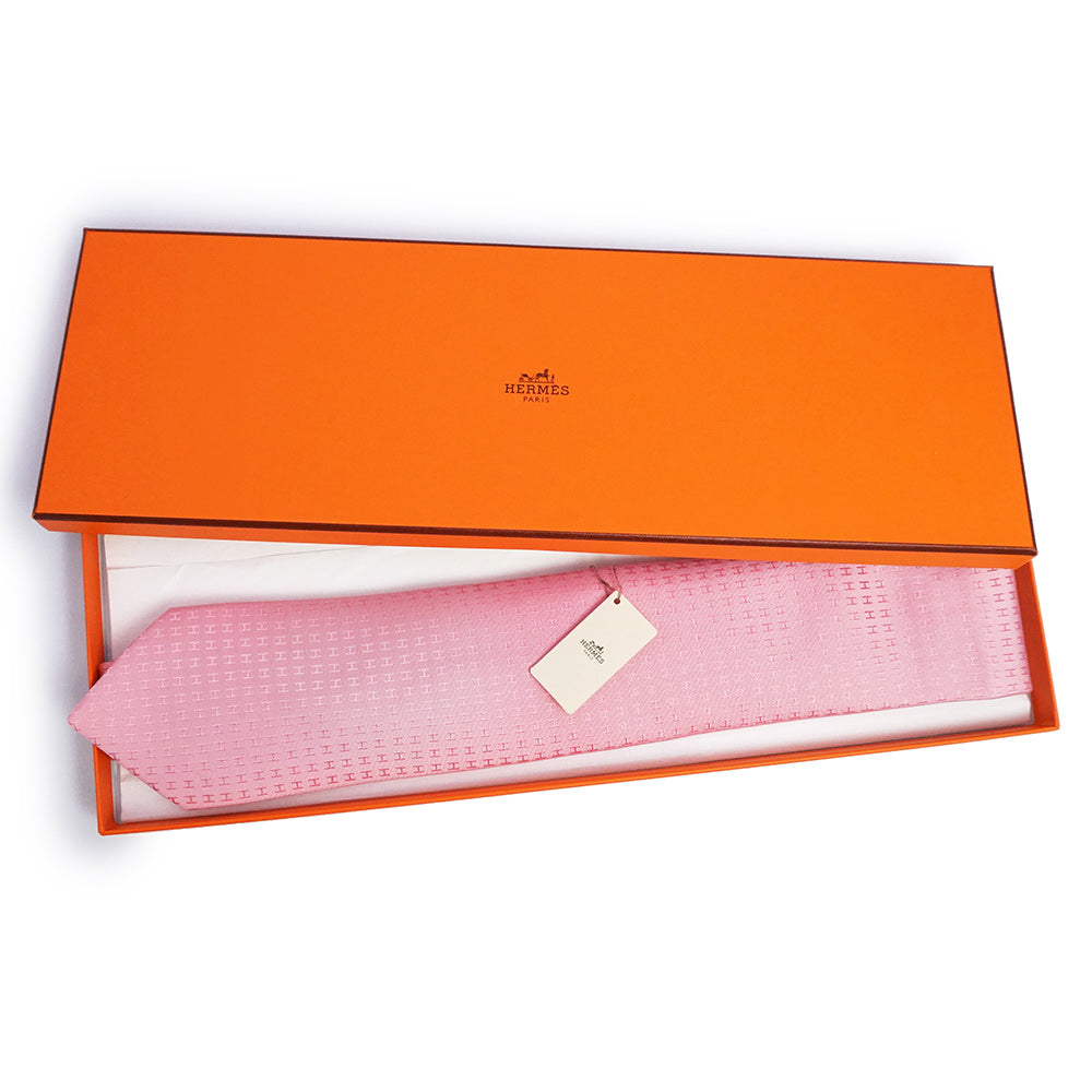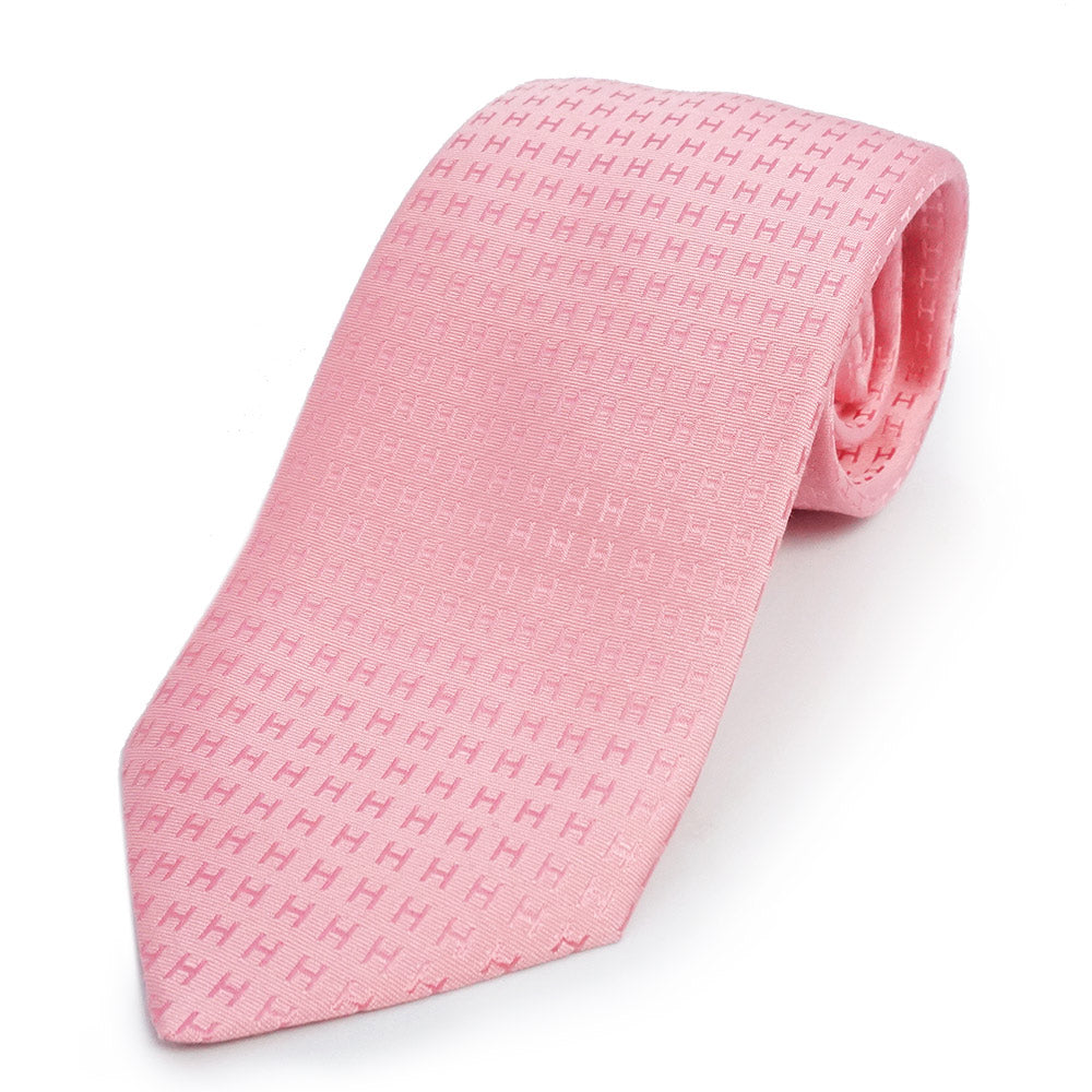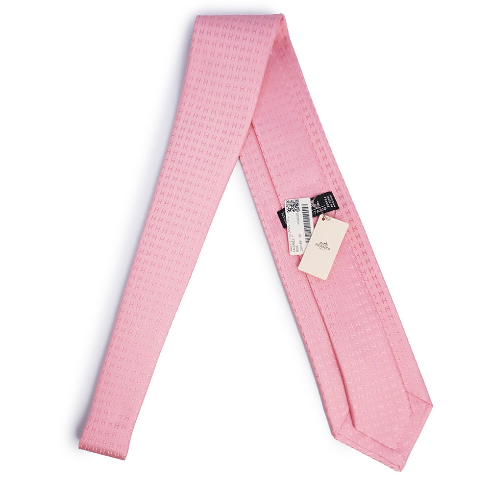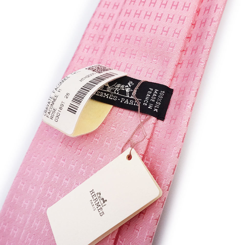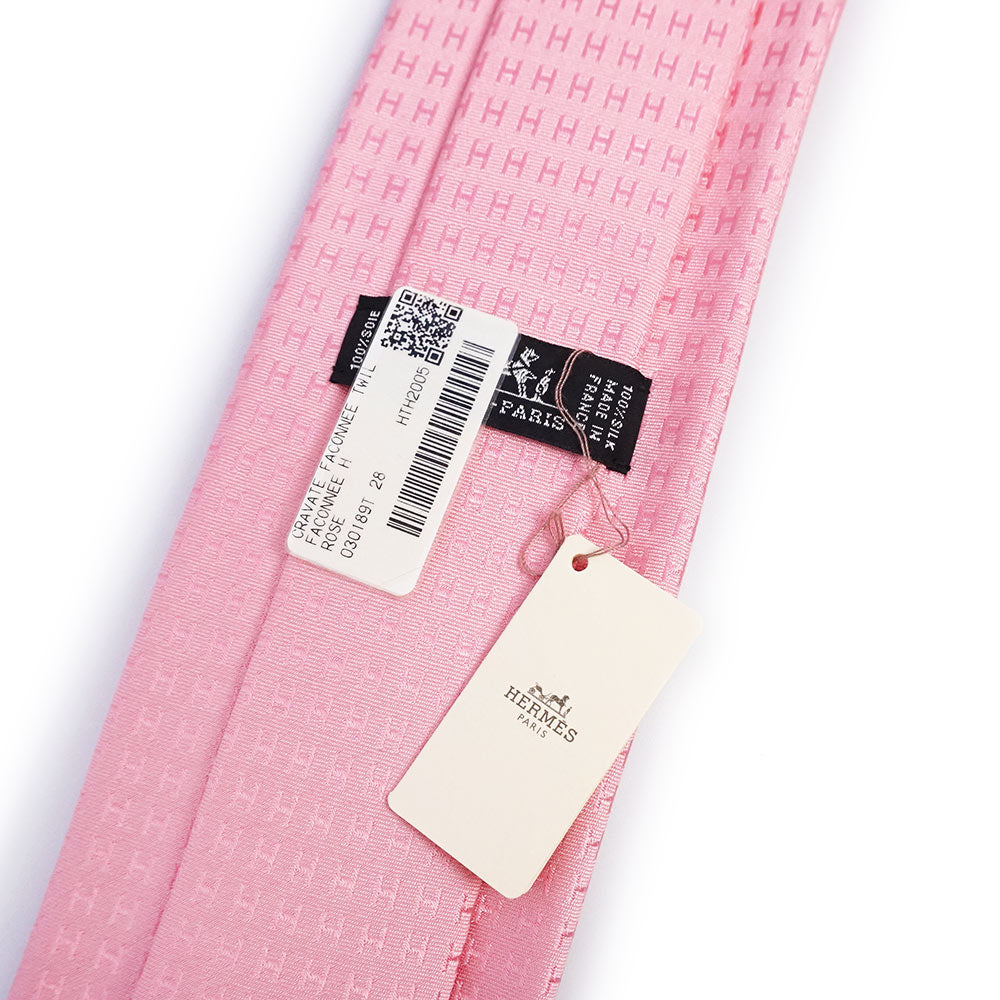 【新品・未使用品】エルメス HERMES FACONNEE H ファソネ H H織り 8CM ネクタイ シルク100% ピンク ローズ 箱付