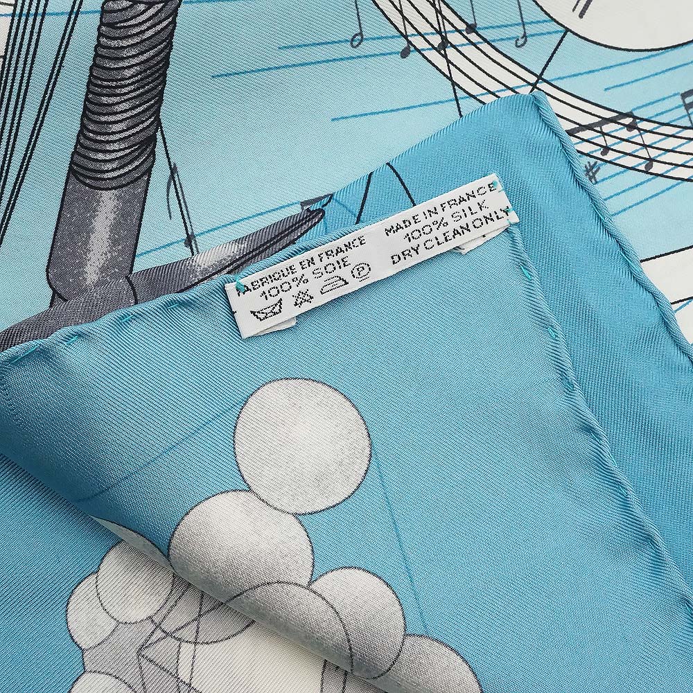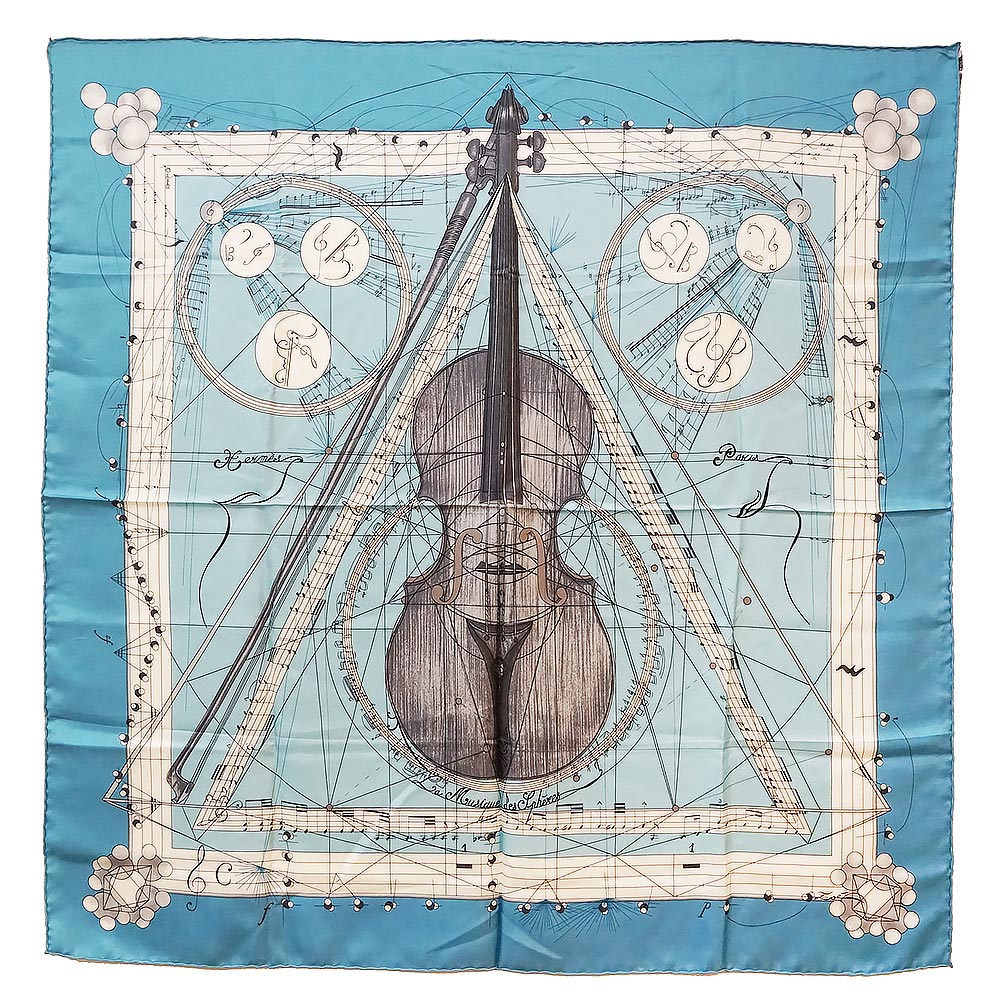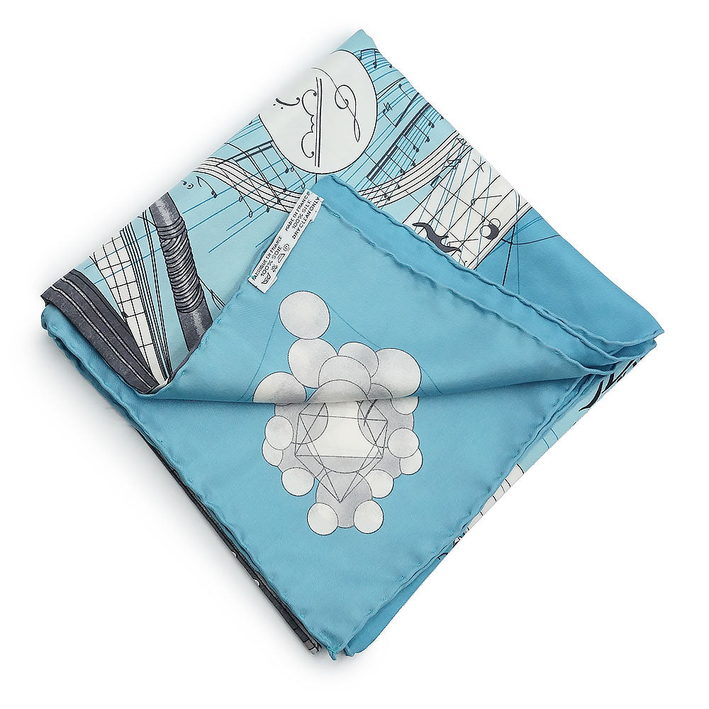 Pre-owned HERMES Carré 90 "LA MUSIQUE DES SPHERES" 100% Silk Blue Scarf