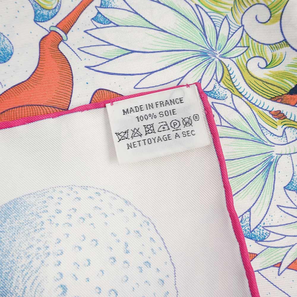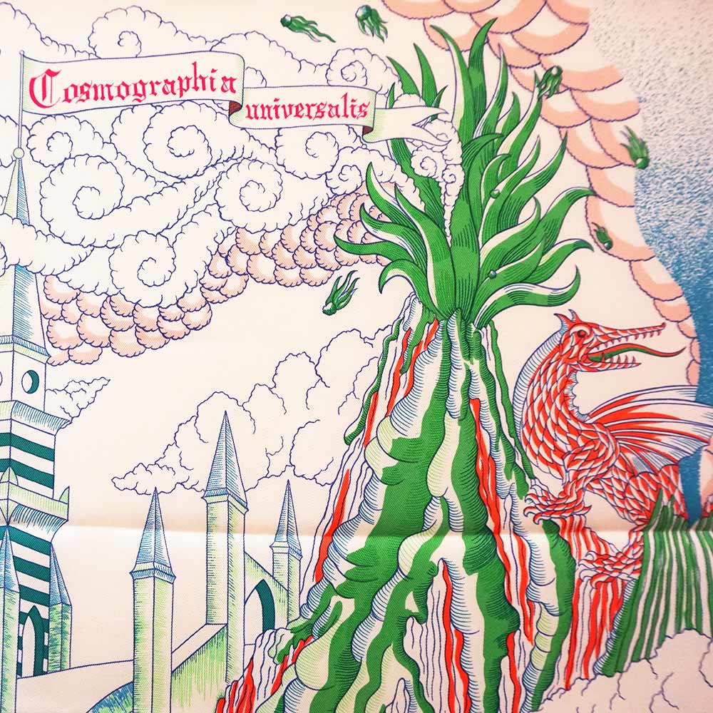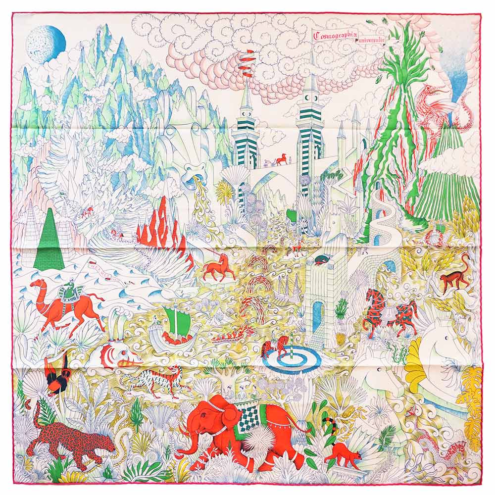 [Excellent Condition] Hermès Carré 90 Cosmographia Universalis Scarf, 100% Silk, Blanc Vert Corail, White, with Box