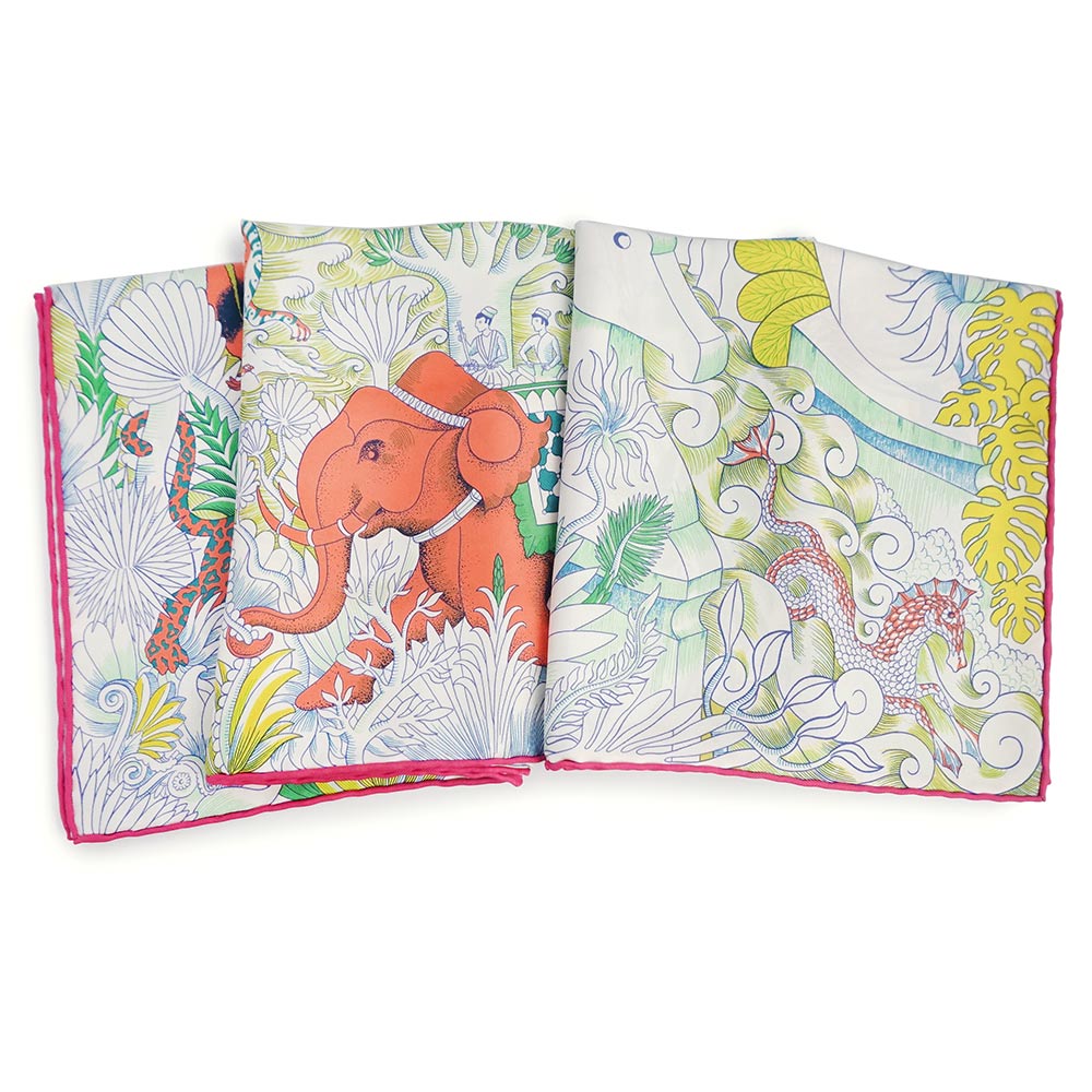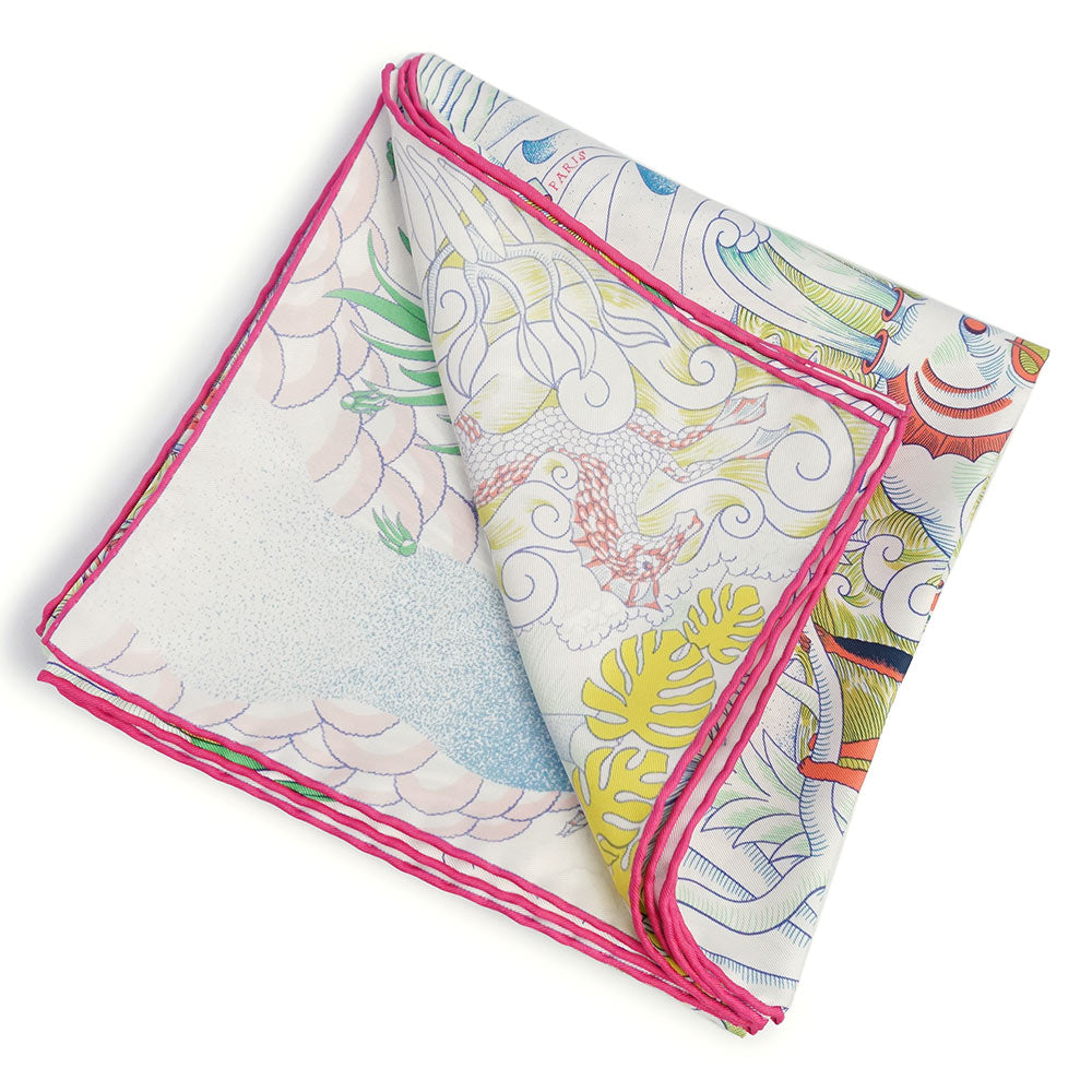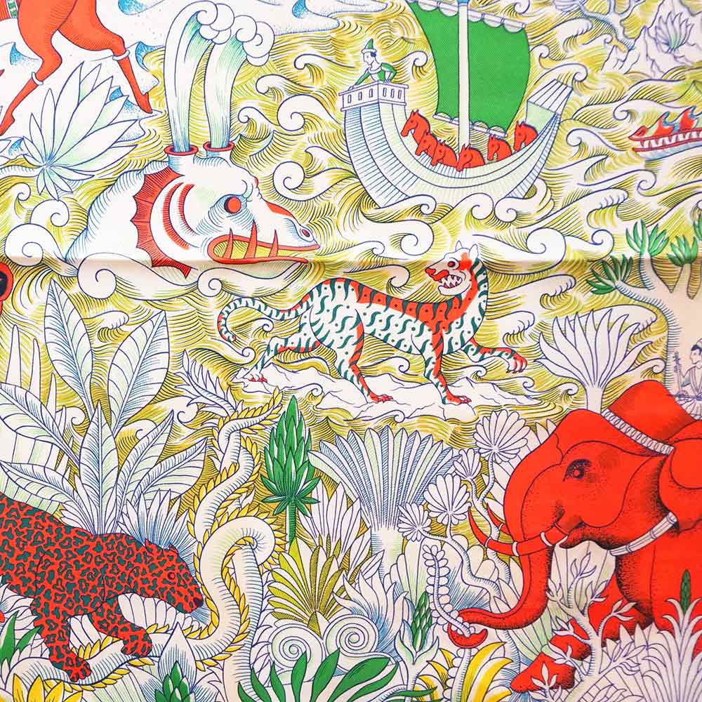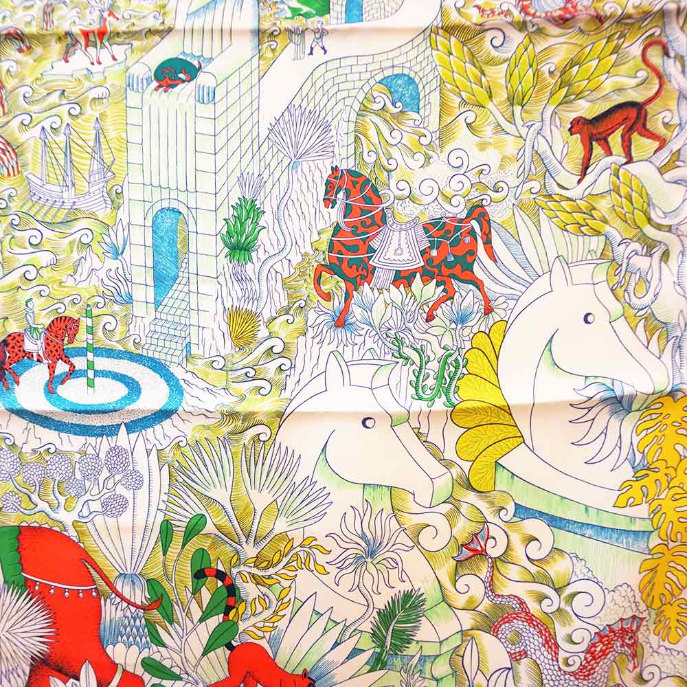 [Excellent Condition] Hermès Carré 90 Cosmographia Universalis Scarf, 100% Silk, Blanc Vert Corail, White, with Box