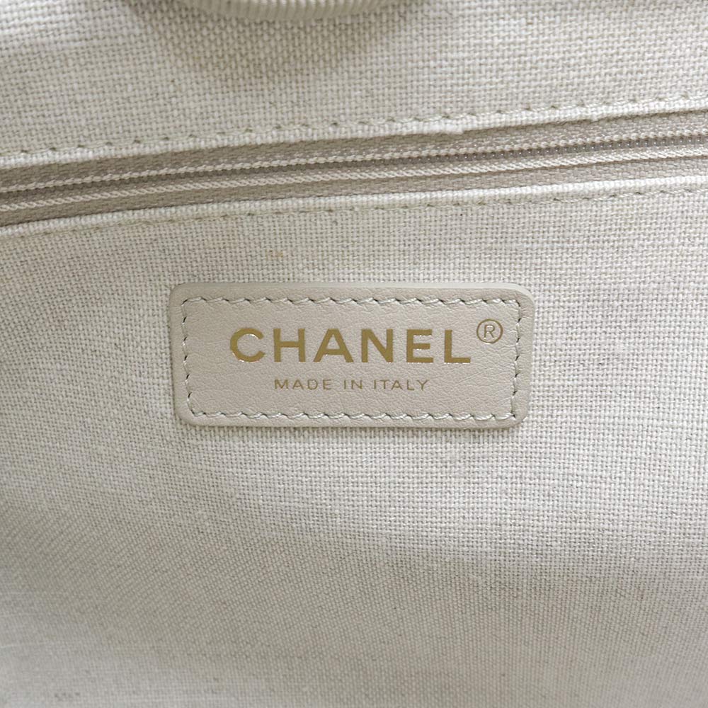This canvas bag from Chanel's popular Deauville line features an embroidered logo on the front, creating a stylish design that exudes elegance and cuteness. It opens wide for easy access and is incredibly practical. |