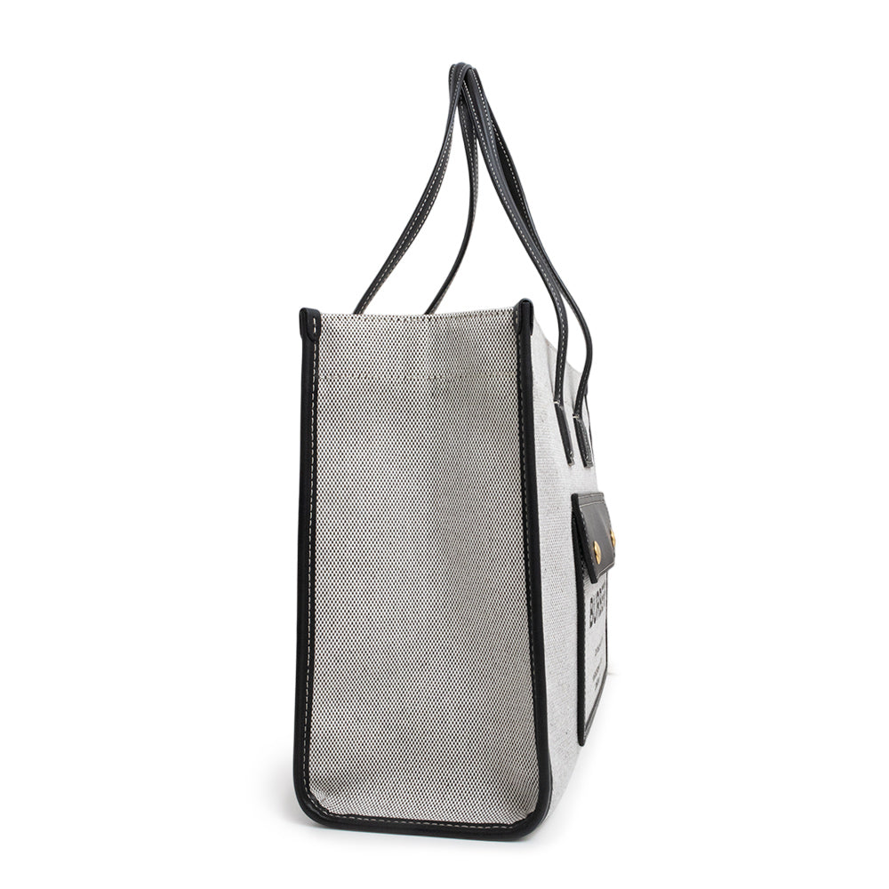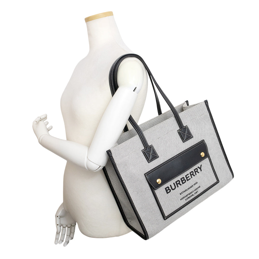 [Excellent Condition] Burberry Small Freya Tote Bag in Cotton Canvas, Calfskin Leather, and Black Gold Hardware (8044137)