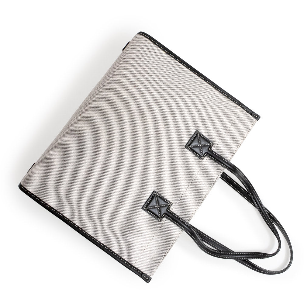 Crafted from canvas and topstitched leather, this stylish bag features a Horseferry print front pocket and can be carried by hand or over the shoulder.