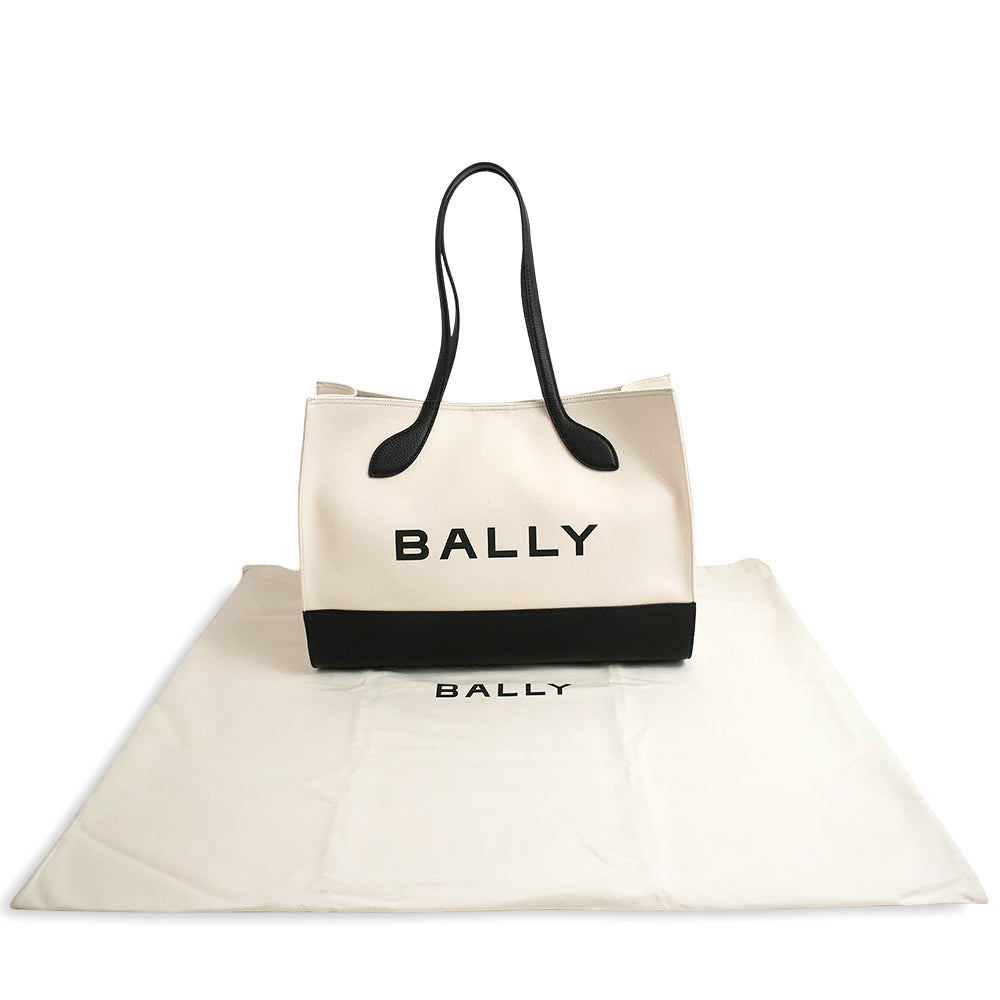 [New and unused] Bally Bar Keep On New Tote Bag in Natural Black Leather with Gold Hardware (Product Code: 6304580)