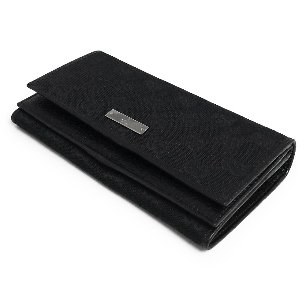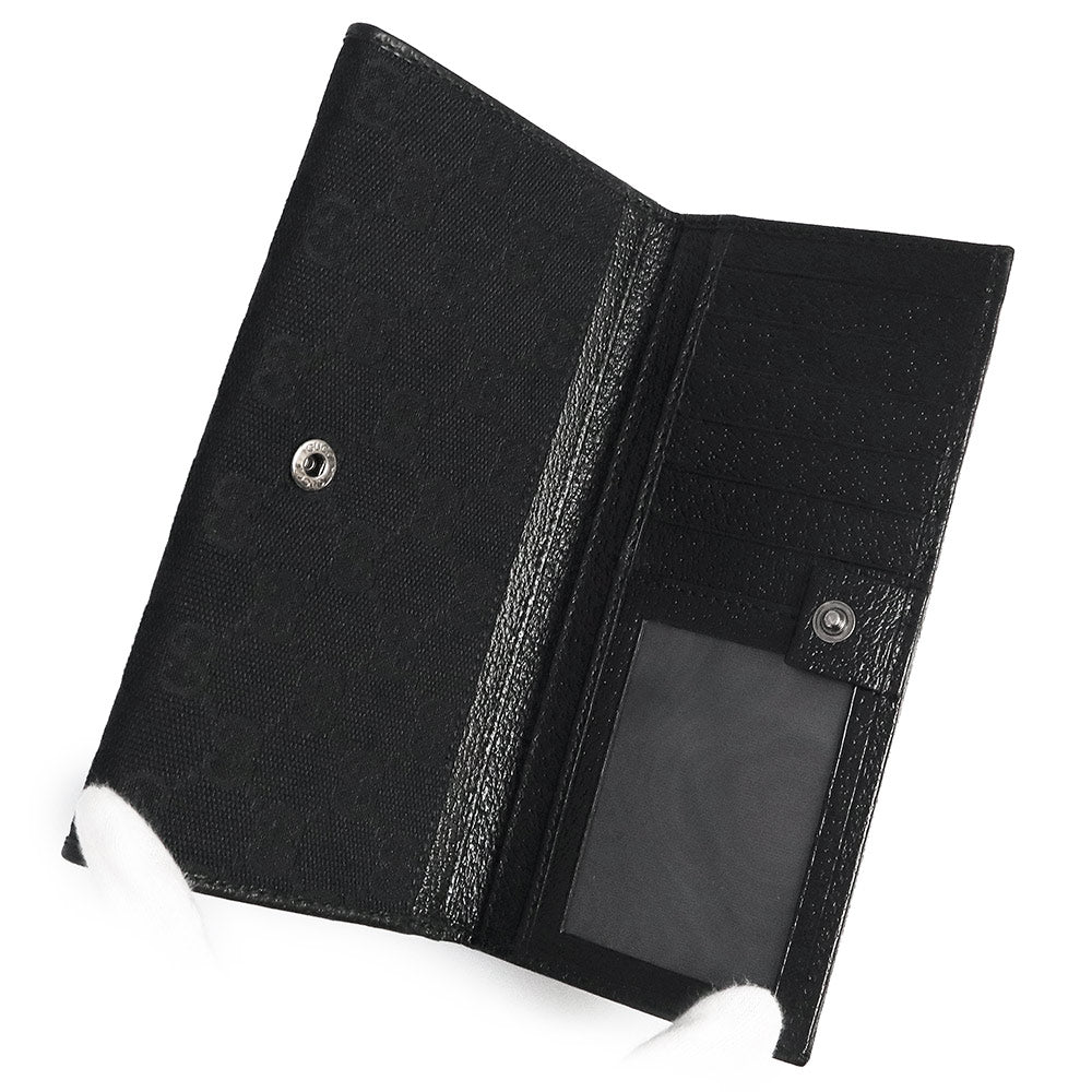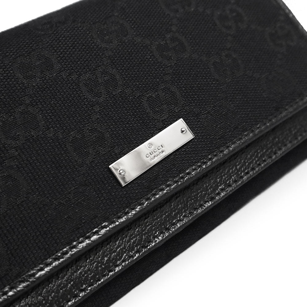 [Unused, stored] Gucci Metal Bar Double Flap Bi-fold Long Wallet, GG Canvas, Leather, Black, Silver Hardware, 131888