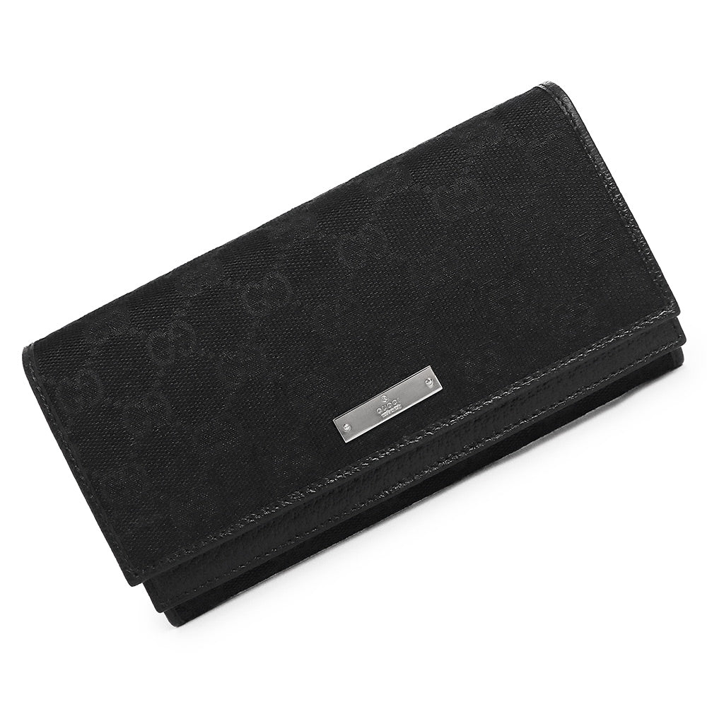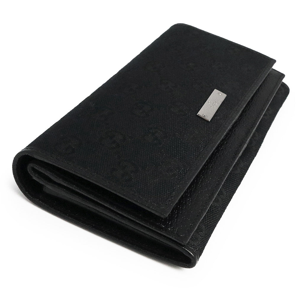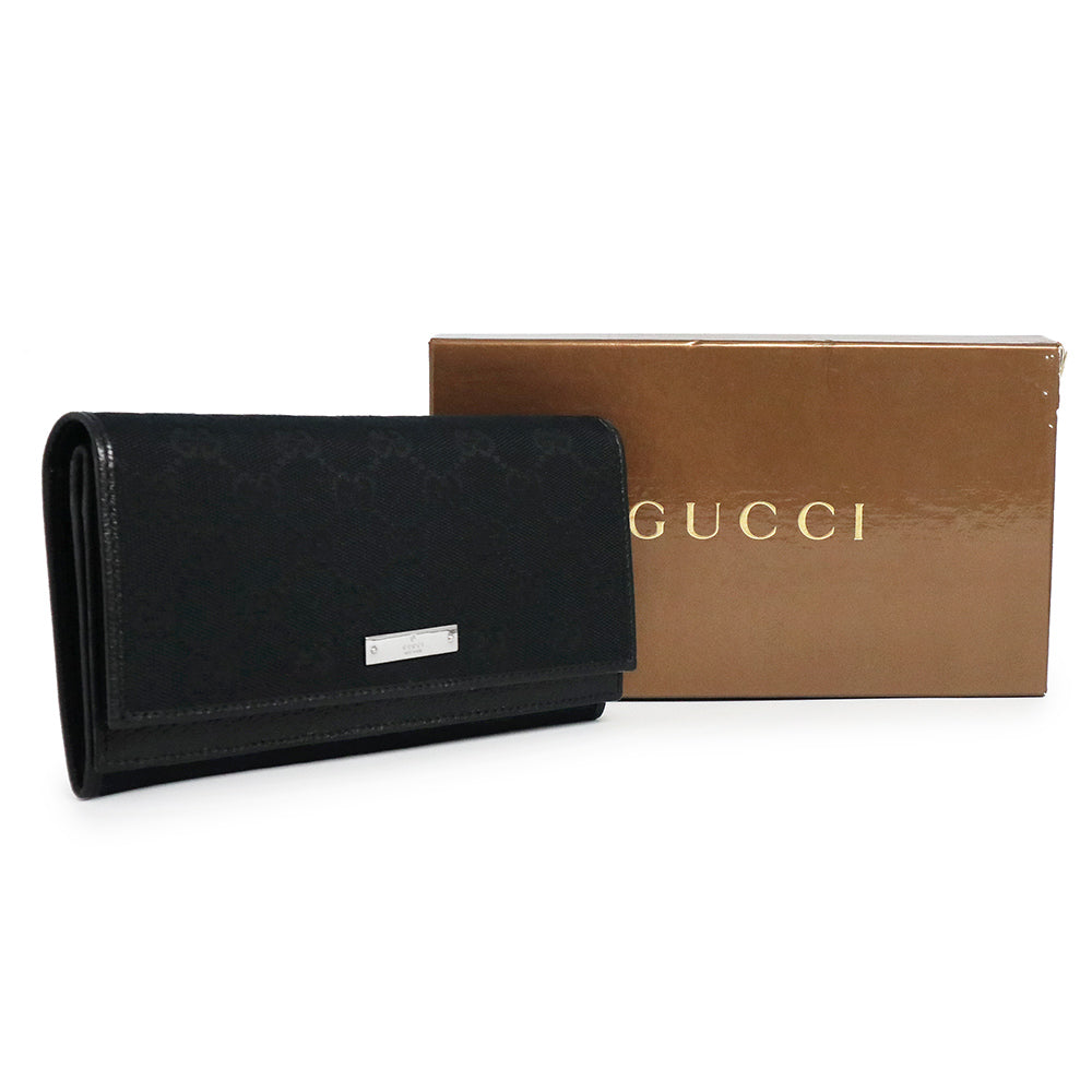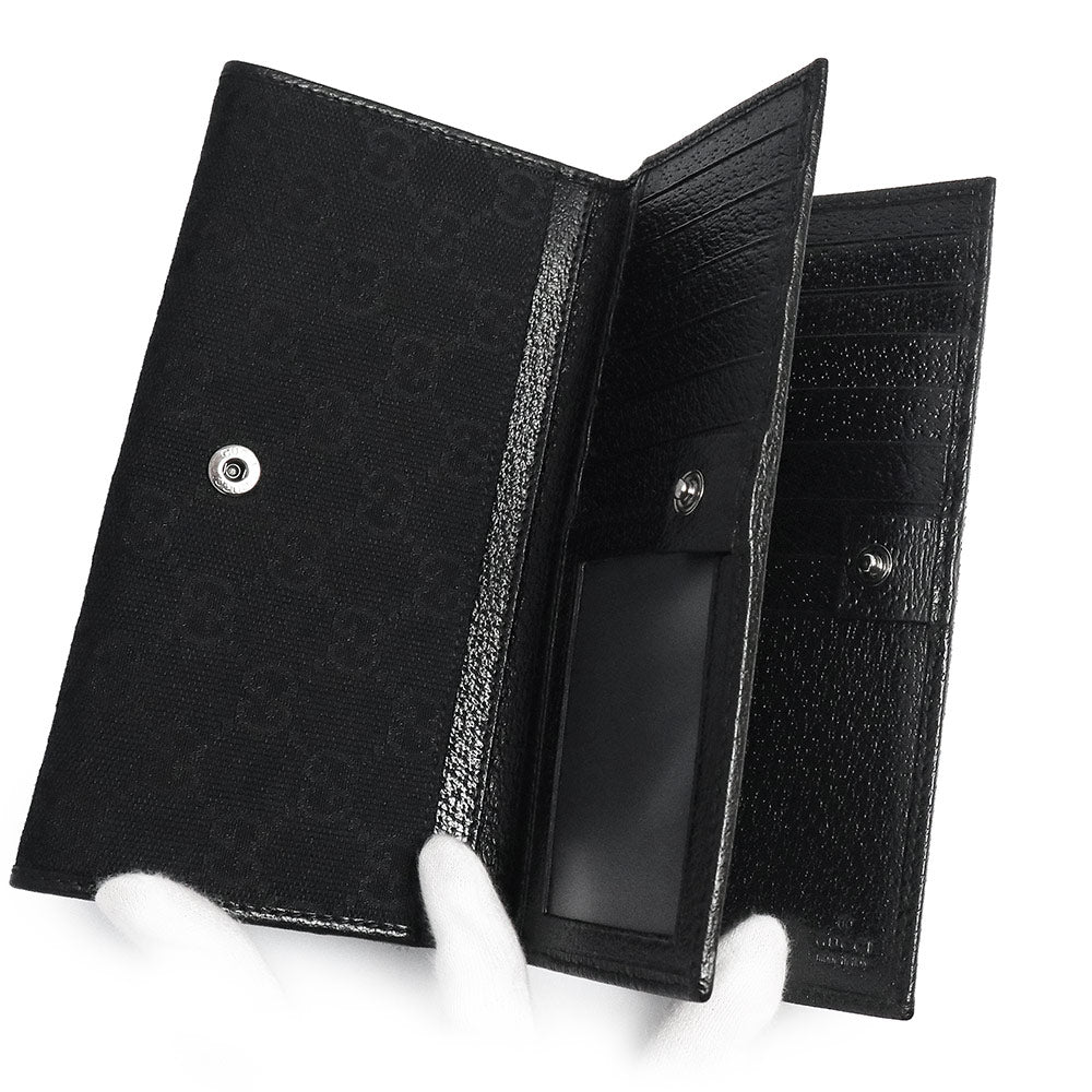 [Unused, stored] Gucci Metal Bar Double Flap Bi-fold Long Wallet, GG Canvas, Leather, Black, Silver Hardware, 131888