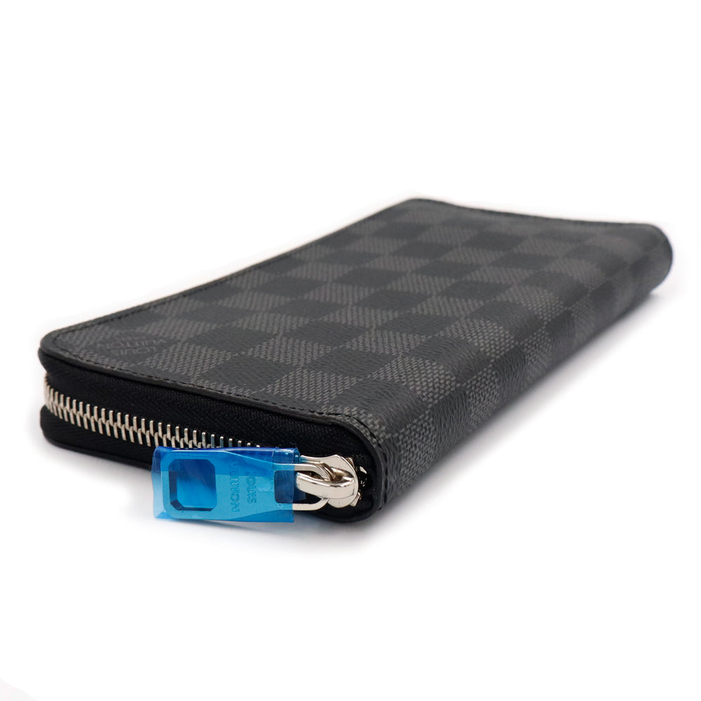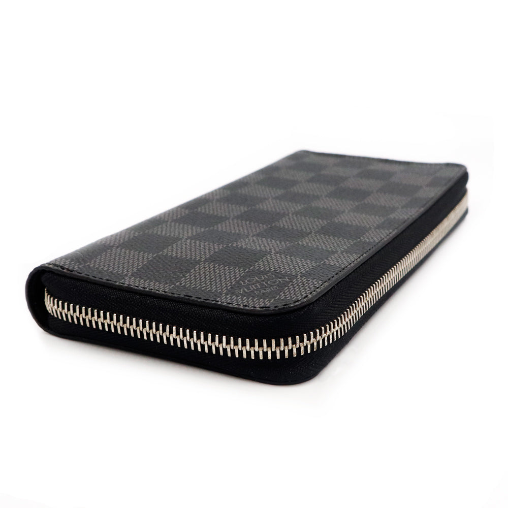 The Damier Graphite Zippy Wallet Vertical features a wide-open zipper closure and ample storage, including card pockets and a coin purse. |