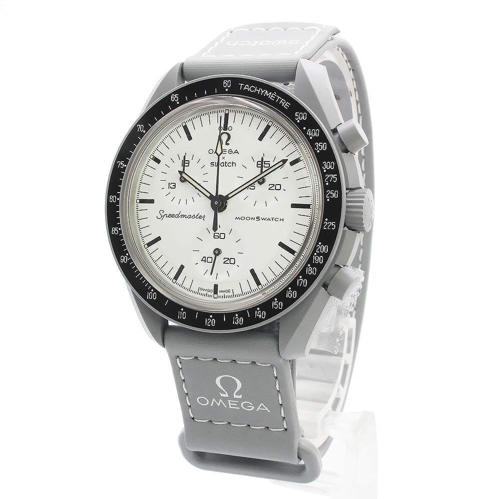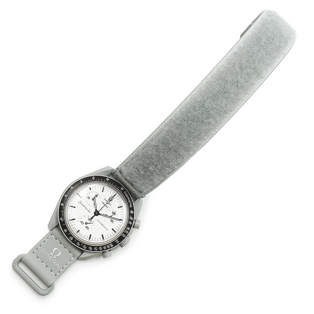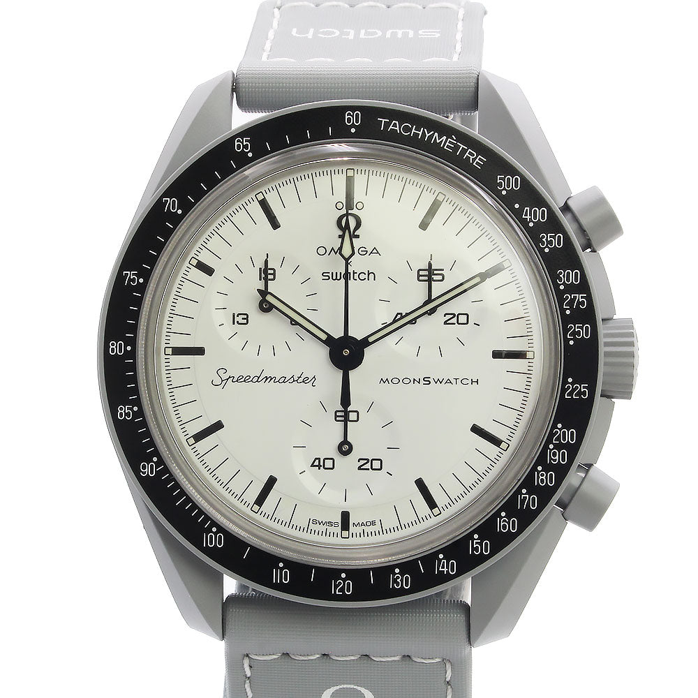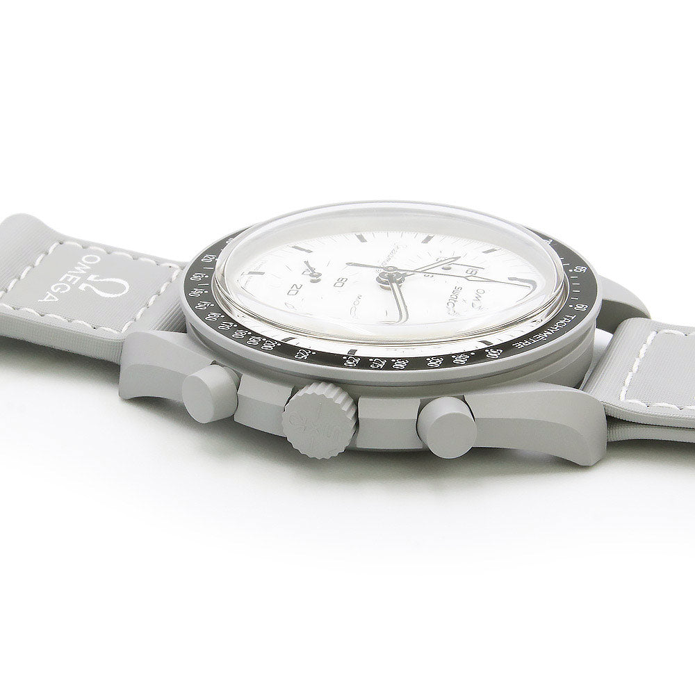 [Unused Display Item] Omega Swatch Mission to the Moon 1965 Speedmaster Chronograph Quartz Watch with Nylon and Bioceramic Case in Gray and White (SO33M106) with Box