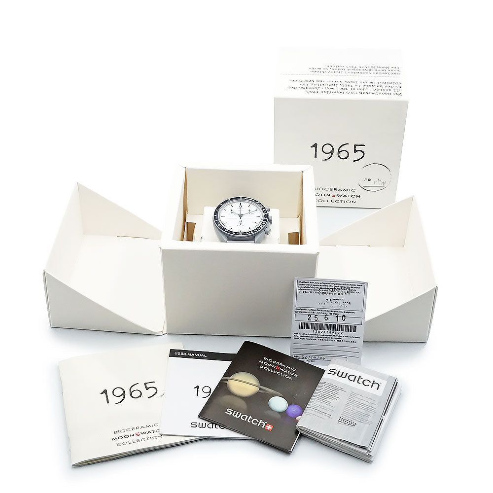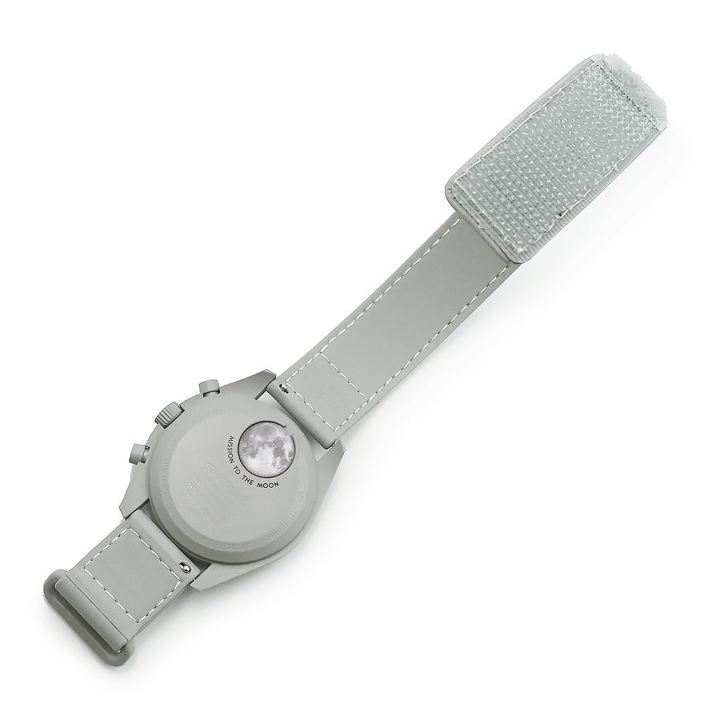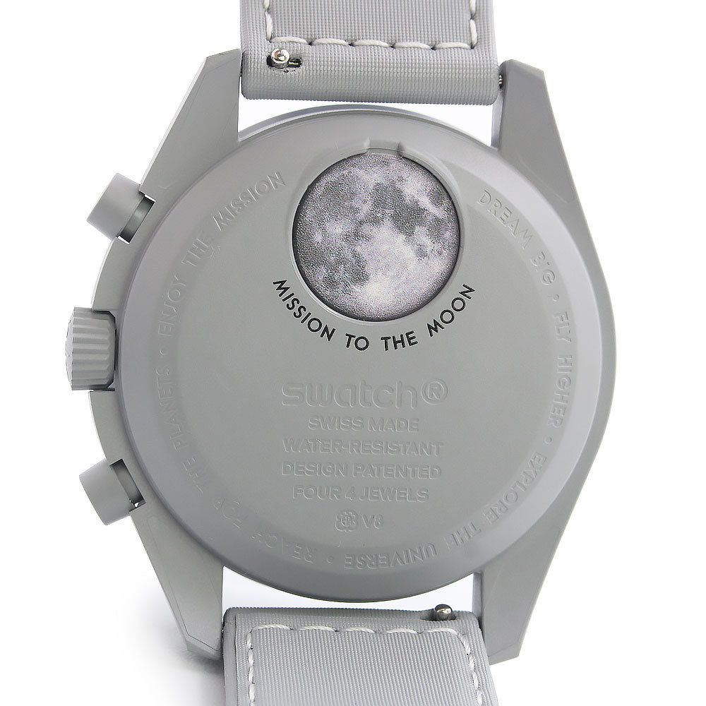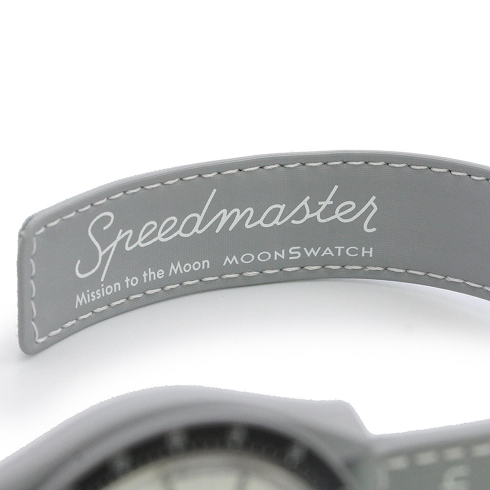 [Unused Display Item] Omega Swatch Mission to the Moon 1965 Speedmaster Chronograph Quartz Watch with Nylon and Bioceramic Case in Gray and White (SO33M106) with Box