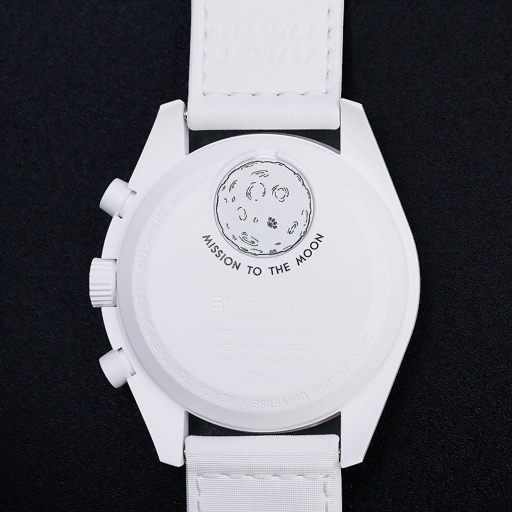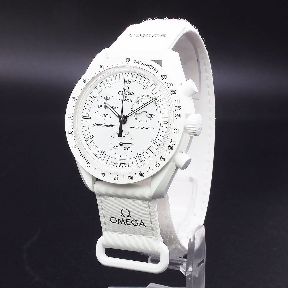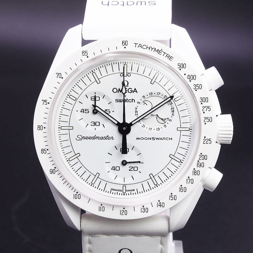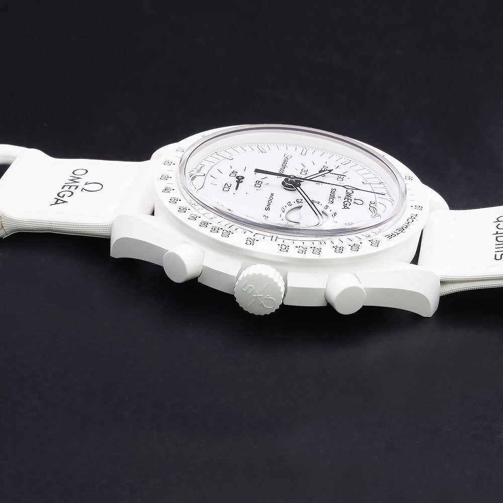[Unused Display Item] OMEGA Swatch SO33W700 Snoopy Mission to the Moon Phase Full Moon Speedmaster MoonSwatch Chronograph Quartz Nylon Bio-Ceramic White Watch with Box