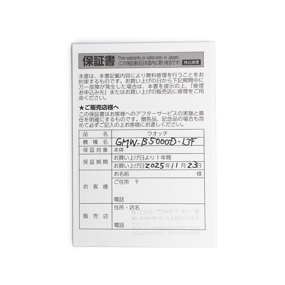 [Excellent Condition] CASIO GMW-B5000D-1JF G-SHOCK 5000 Series Full Metal Radio-Controlled Solar Watch with Tough Solar, Stainless Steel and Silver Accents, Warranty Card and Box Included