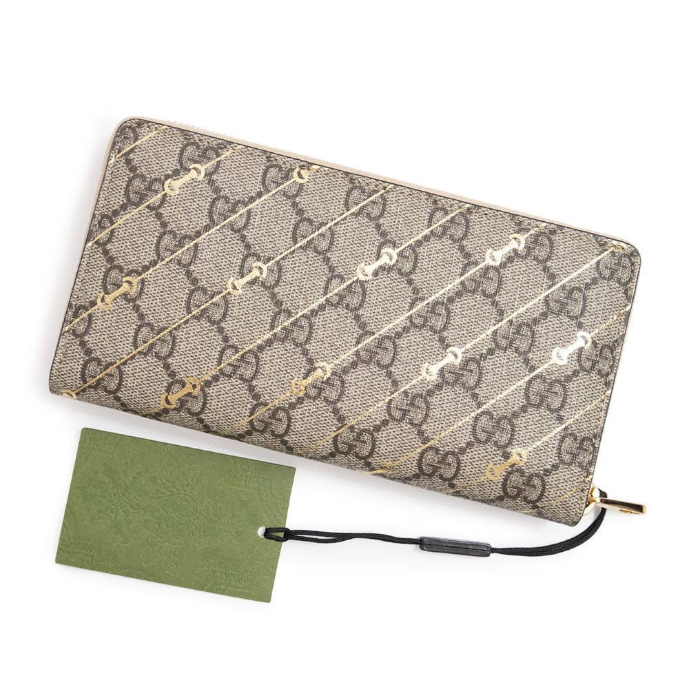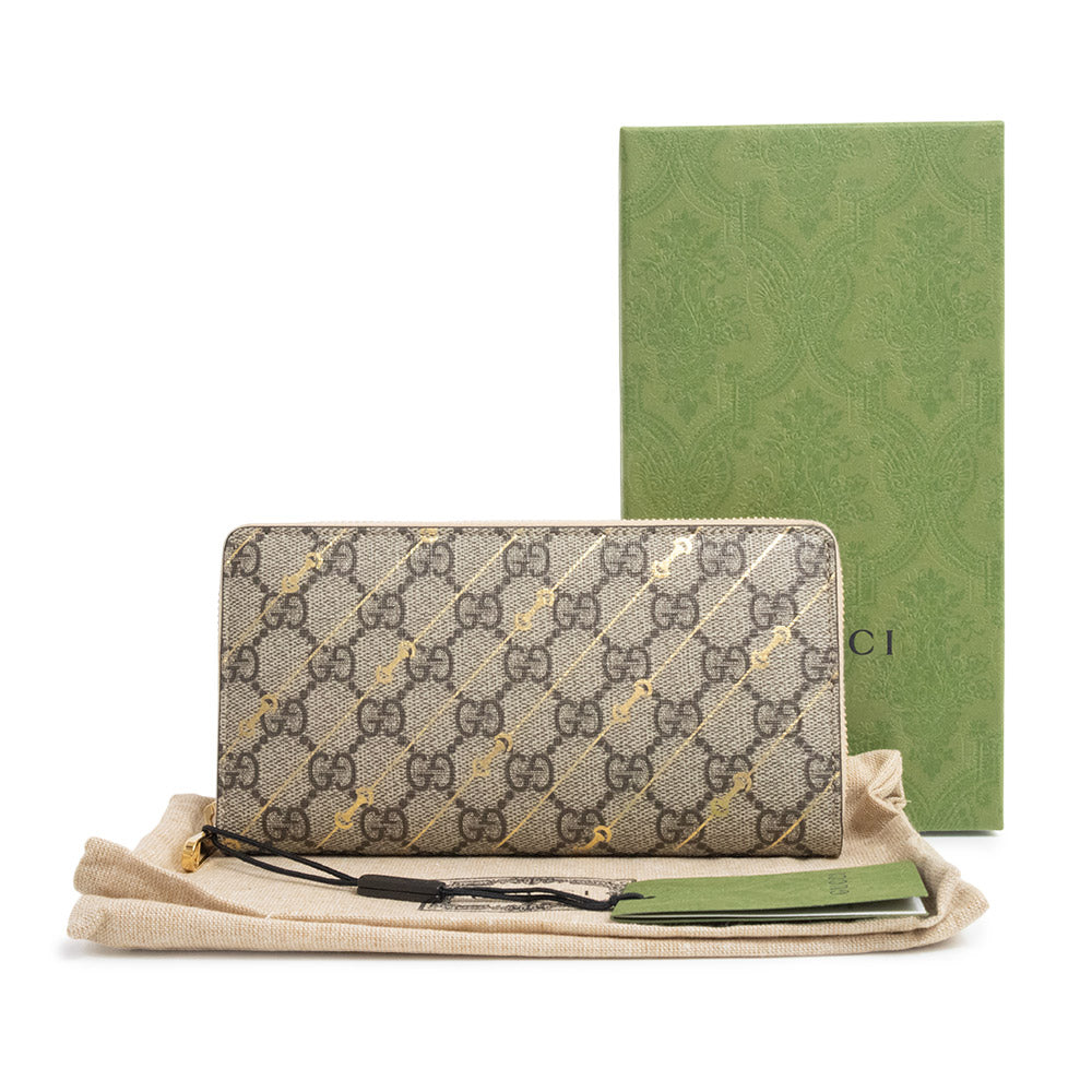 [Brand New and Unused] Gucci Horsebit Print Zip-Around Wallet, GG Supreme Canvas, Beige, Brown, Gold, Gold Hardware, 774331, Box Included