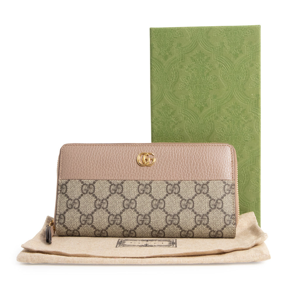 70年代にグッチが用いたベルトバックルから着想されたアイコニックなダブルGの装飾が特徴のシリーズ「GGマーモント」ジップアラウンドウォレット。高級感を感じるダスティピンクレザーにGGスプリームが組み合わされたスマートなデザインの長財布です。