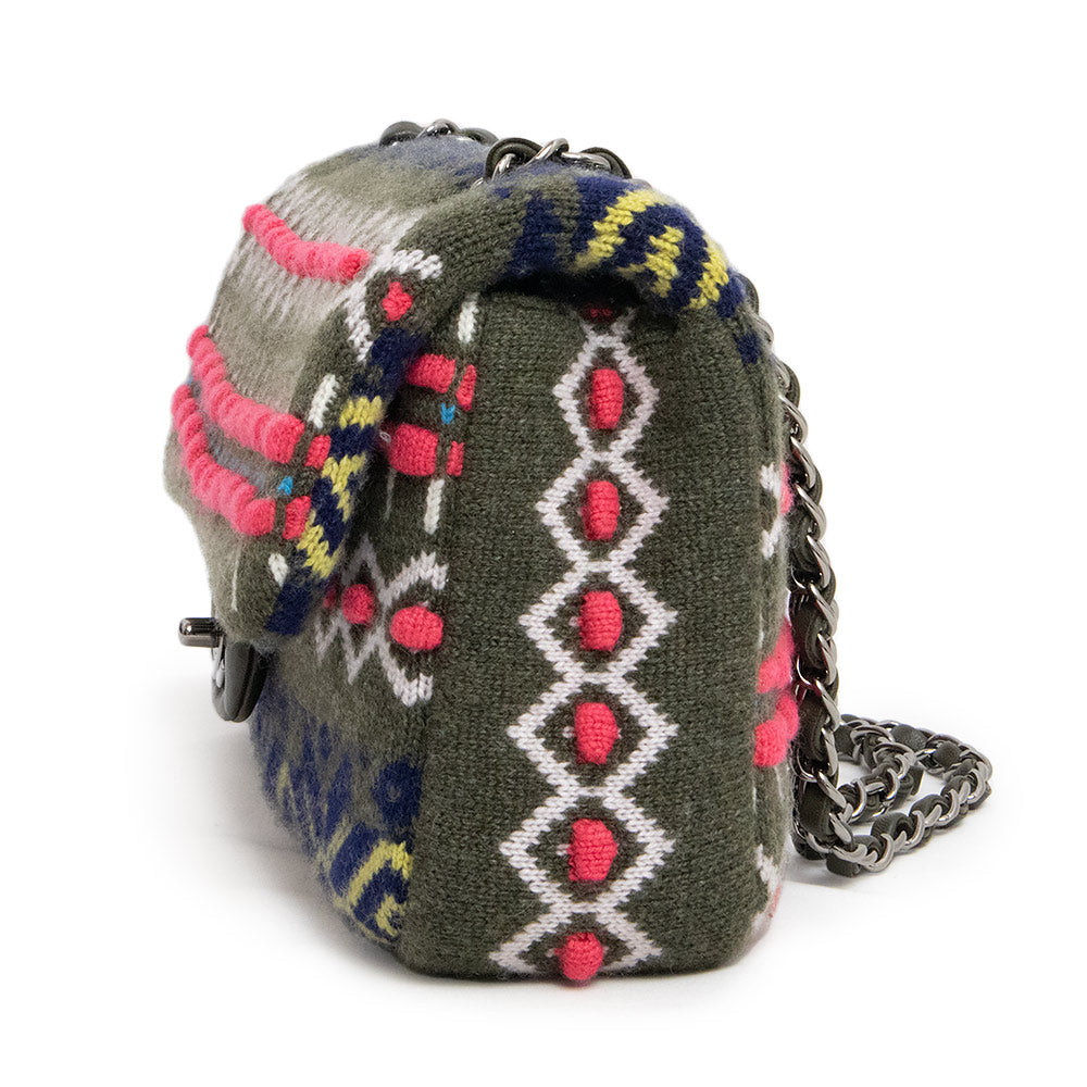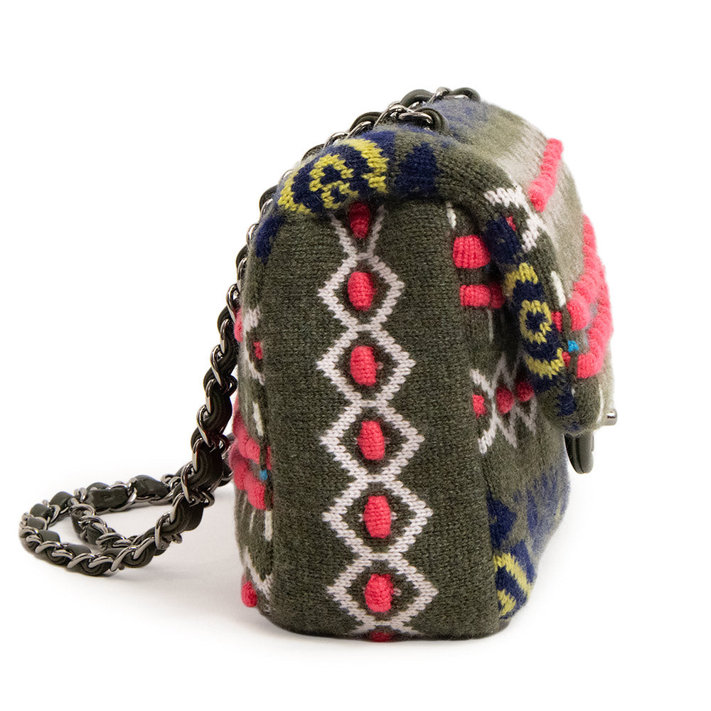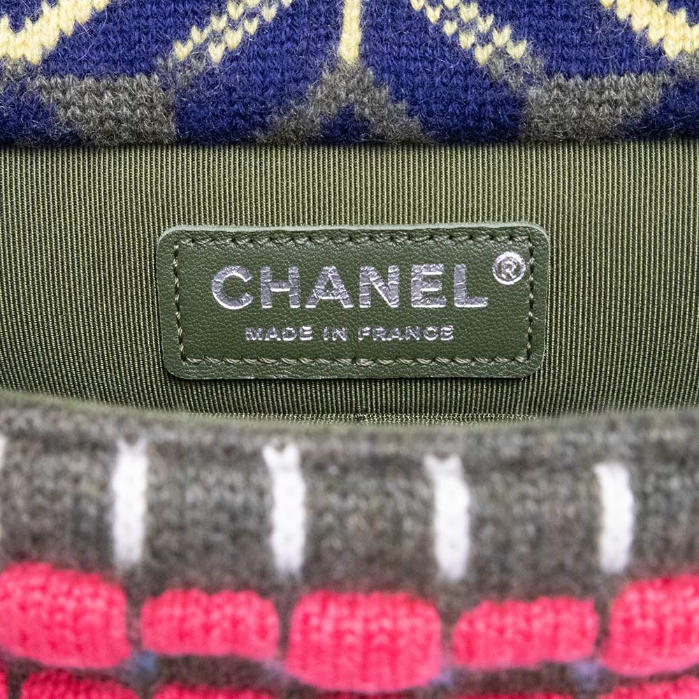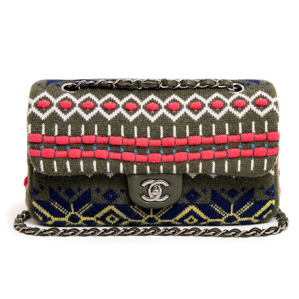 This adorable Chanel knit bag features a three-dimensional Nordic pattern. Its casual design and size make it perfect for everyday use or going out. You can also use it as a clutch bag by tucking away the chain. |