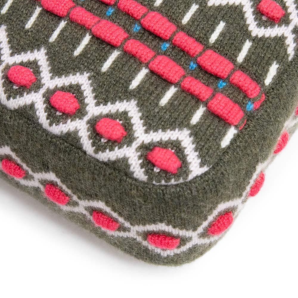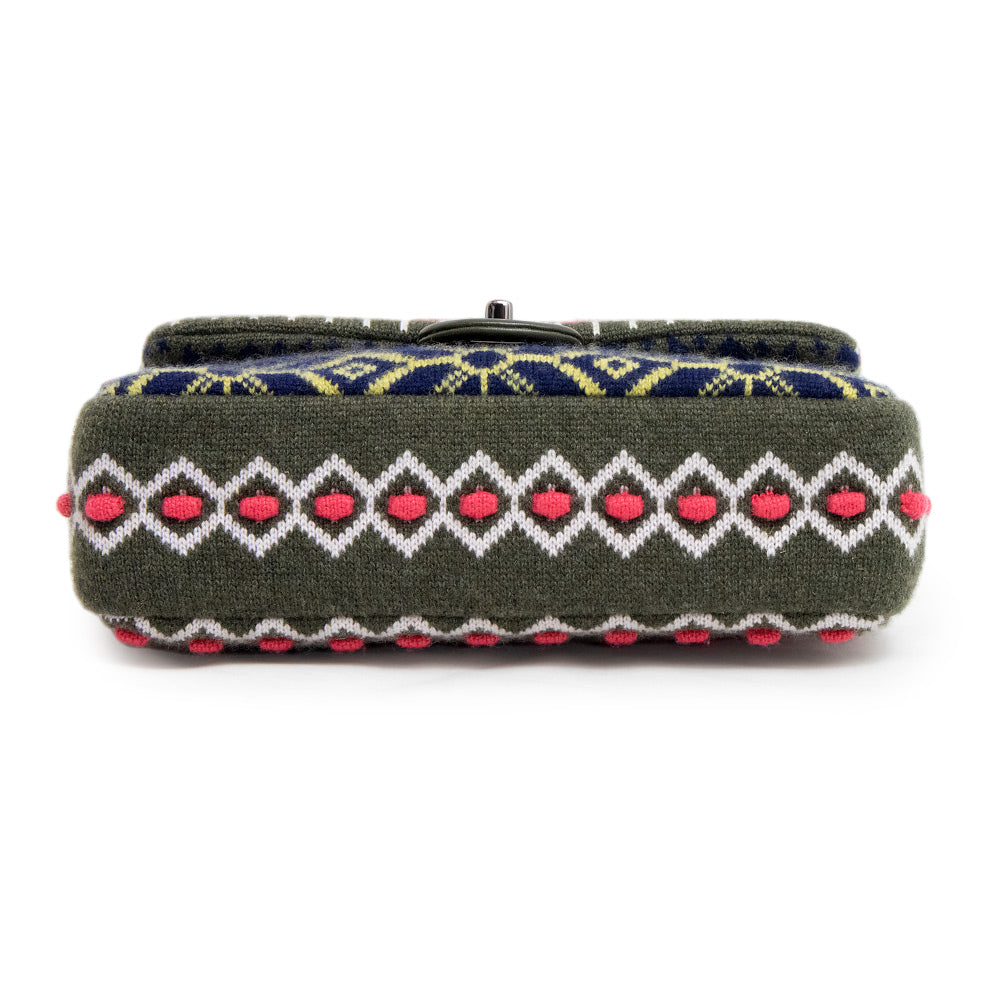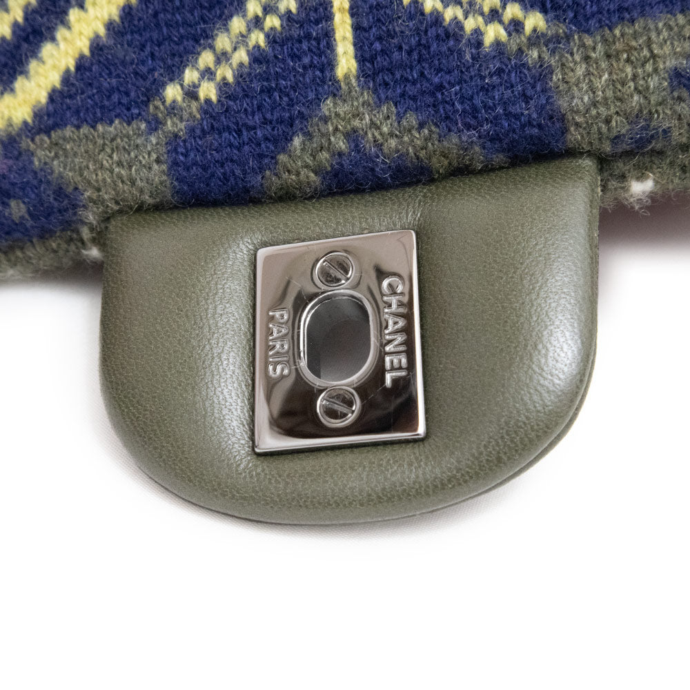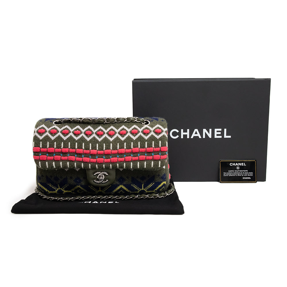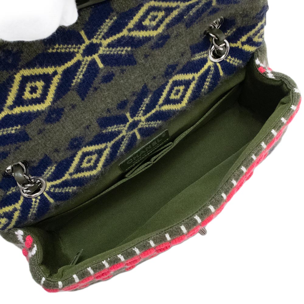 [Unused display item] Chanel CHANEL knit 2way W chain Coco mark shoulder bag clutch crossbody cashmere Nordic pattern olive multicolor silver hardware