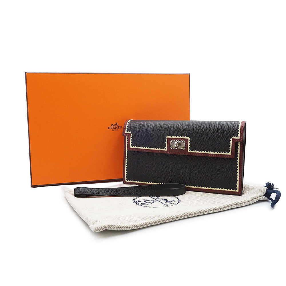 特徴的なフラップや洗練されたクロージャーが人気の財布『ケリー・ポケット』のロングタイプ。こちらは特別仕様のAPIC(アピック)。ギザギザのカッティングが印象的なデザインで、金具部分にまであしらわれたディテールからは、エルメスならではの遊び心と美意識が漂います。広いコンパートメントとコインケースにもなるファスナー式ポケットや4つのカードスロットなどを備え、ハンドストラップで安全に必需品を手元に備えることができます。 |