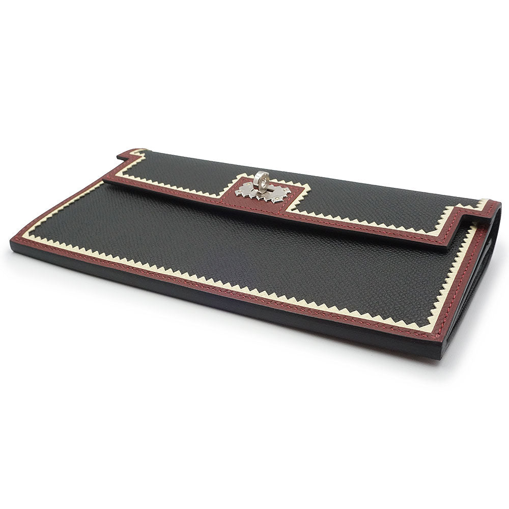 【新品・未使用品】エルメス HERMES ケリー ポケット ロング アピック 二つ折り長財布 ヴォーエプソン レザー ノワール ルージュアッシュ ジョーヌミルトン ブラック シルバー金具 K刻印 箱付