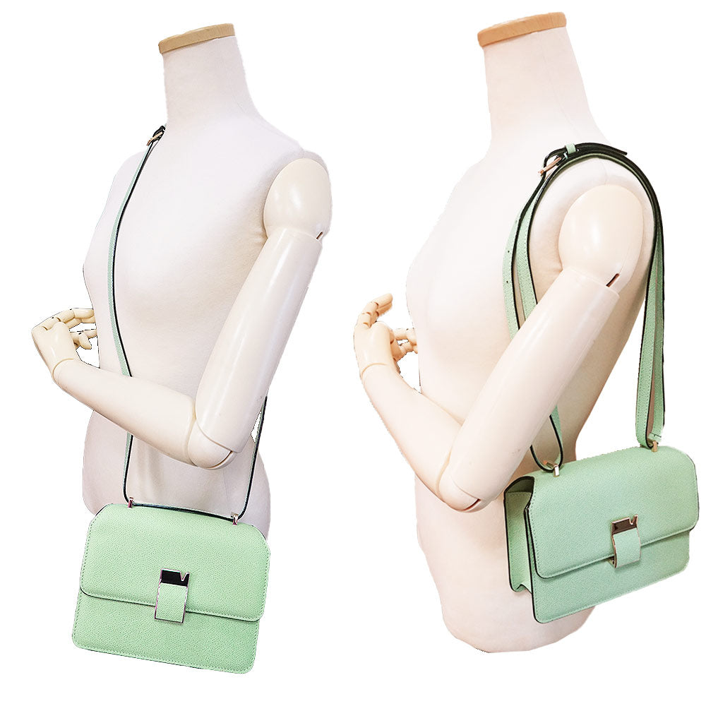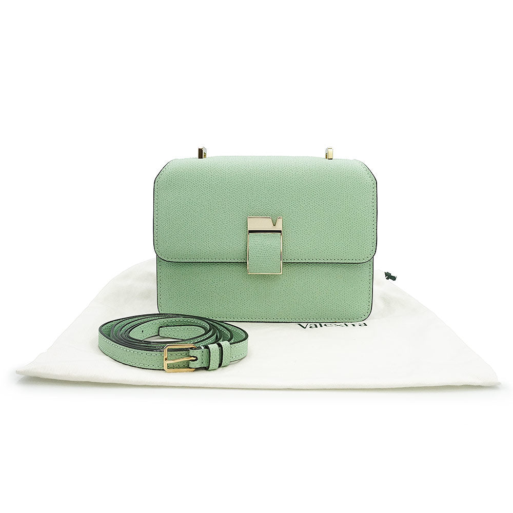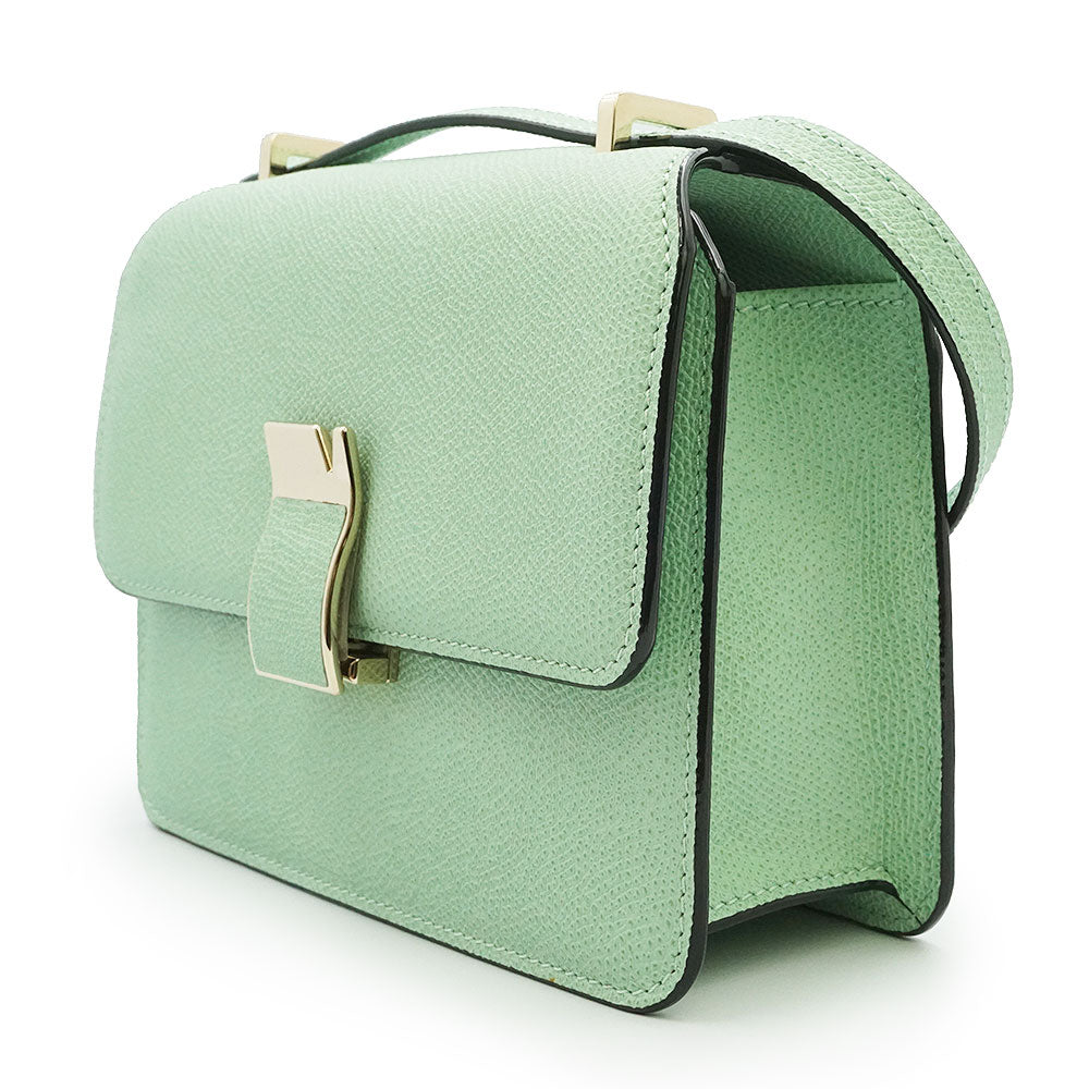 【未使用 展示品】ヴァレクストラ Valextra ノーロ スモール 2WAY ショルダーバッグ 斜め掛け ソフトカーフスキン レザー アクア ライトグリーン ライトゴールド金具 V5F65