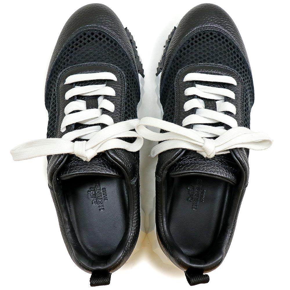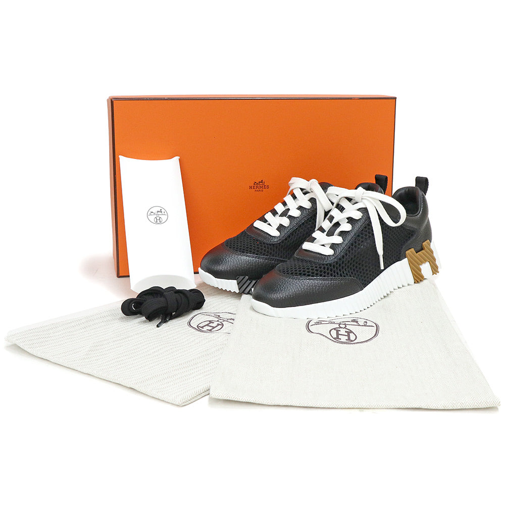 【未使用保管品】エルメス HERMES バウンシング スニーカー シューズ 靴 #36.5 23.5cm カーフスキン レザー メッシュ クロシェニット ブラック