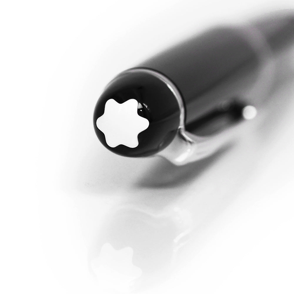モンブランより「マイスターシュテュック」万年筆。ボディとキャップはディープブラックプレシャスレジン製のエレガントな万年筆で、ライティング・カルチャーを超越した真のラグジュアリーアイコンとなりました。輝くシルバー仕上げのフィッティング、シンボルマーク、そして手仕上げのK14製のペン先が、洗練された美を象徴しています。