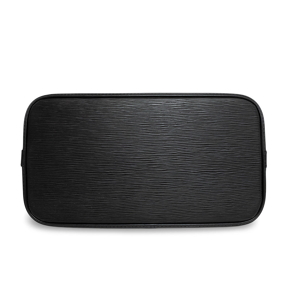 丸みを帯びたフォルムがフェミニンでスタイリッシュなバッグ「アルマPM」。シックなブラックカラーが、なめらかなエピ レザーとマッチしています。 |